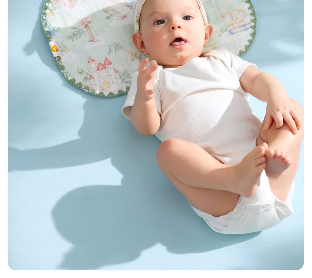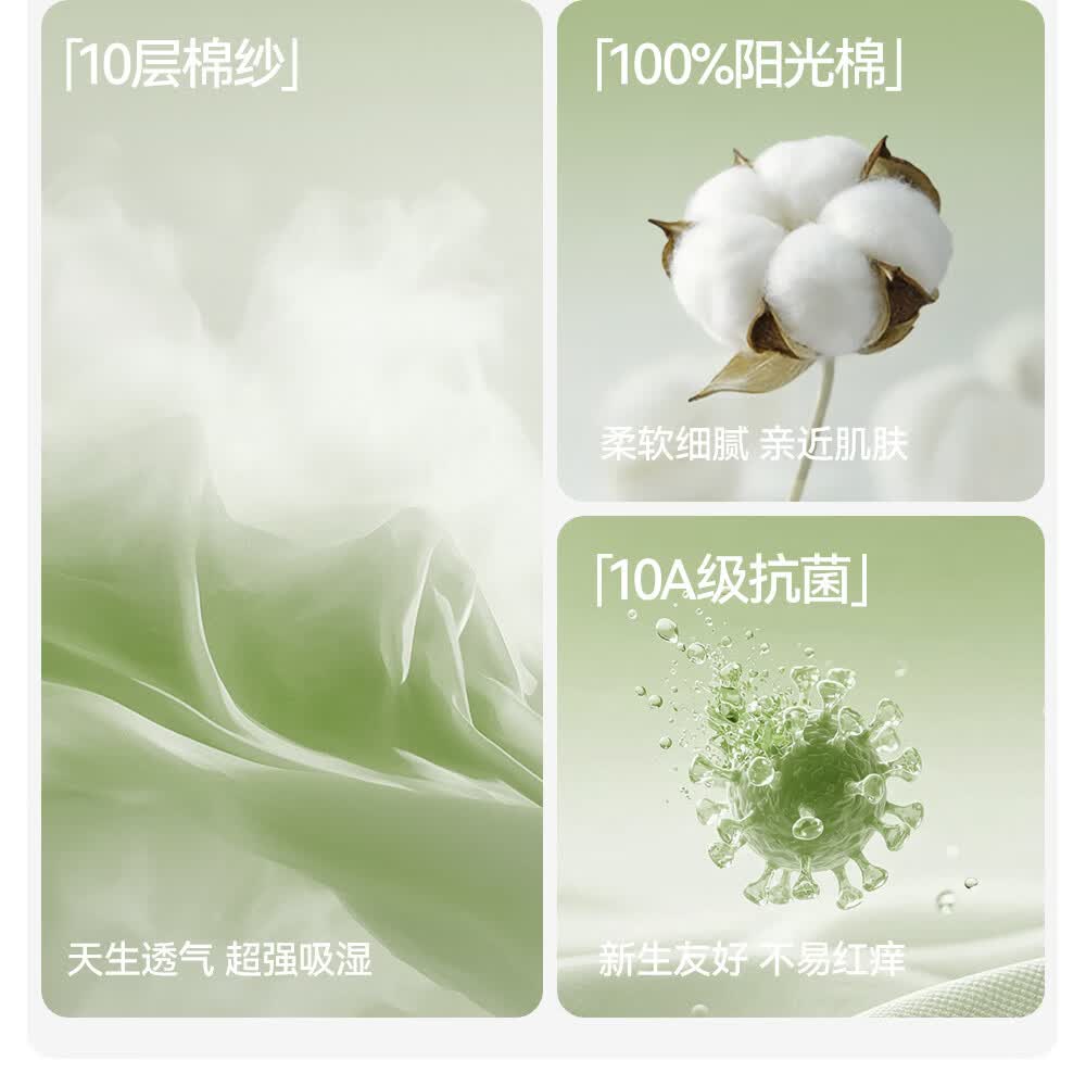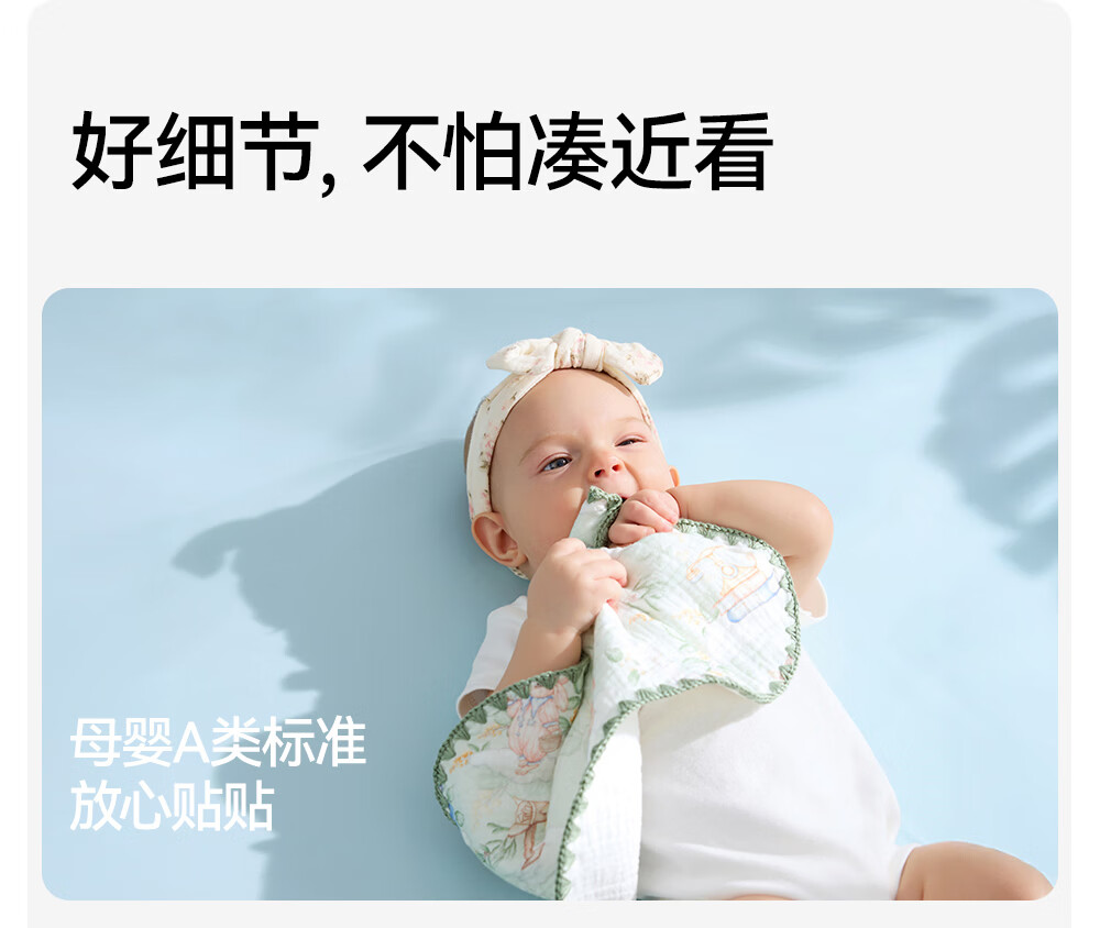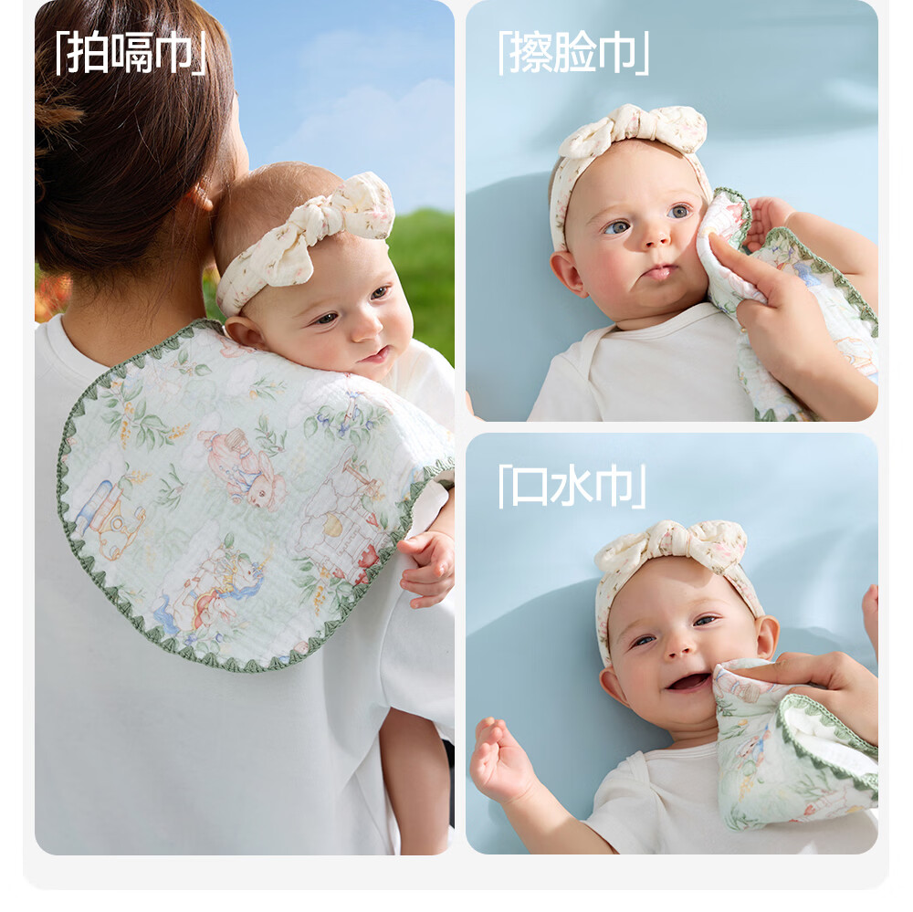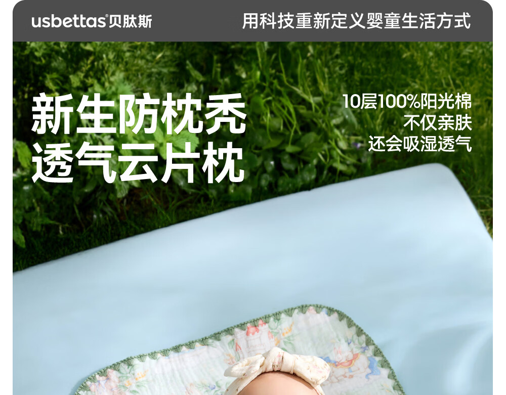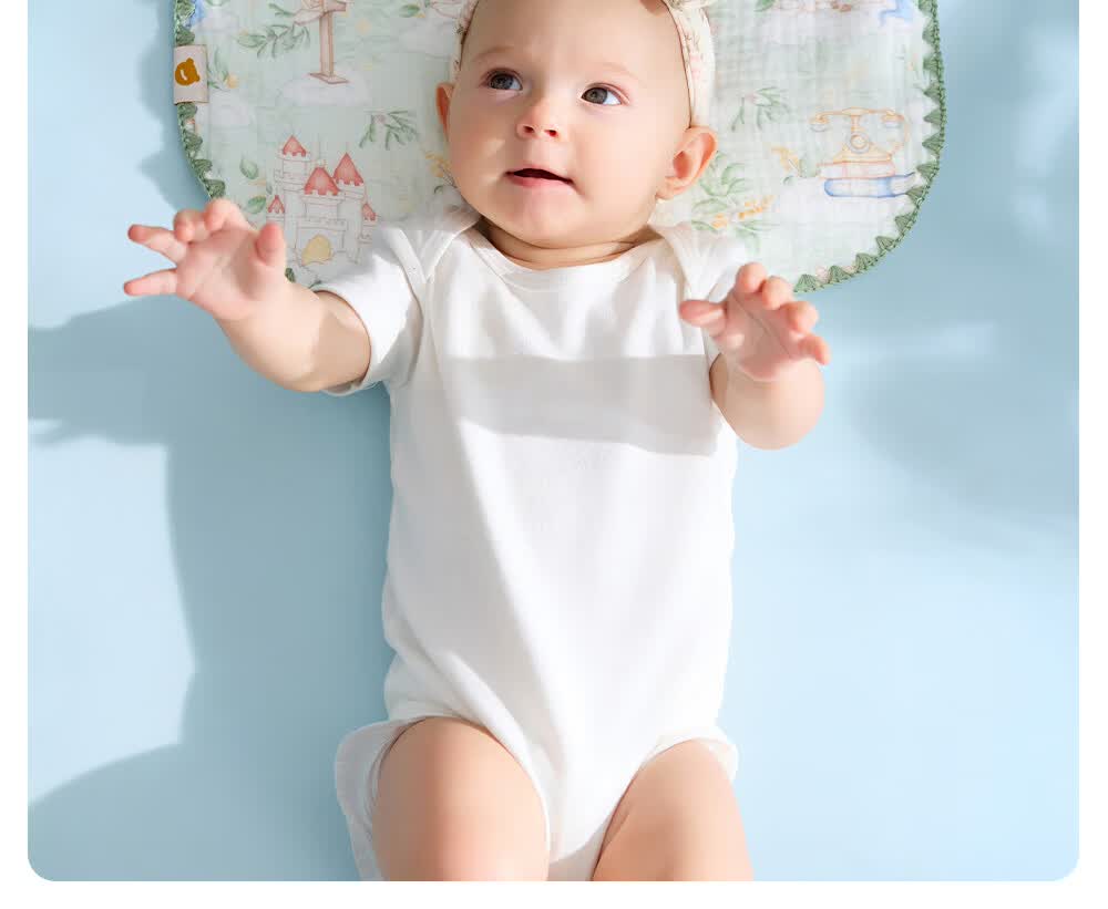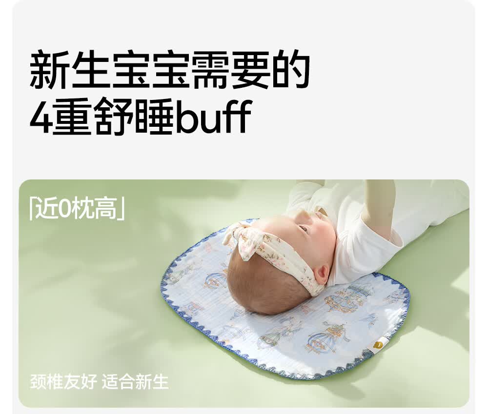 贝肽斯新生儿云片枕头婴儿春秋0到6个月宝宝吸汗透气纯棉纱布枕巾 爱心恐龙【10A抗菌,10层纱布】