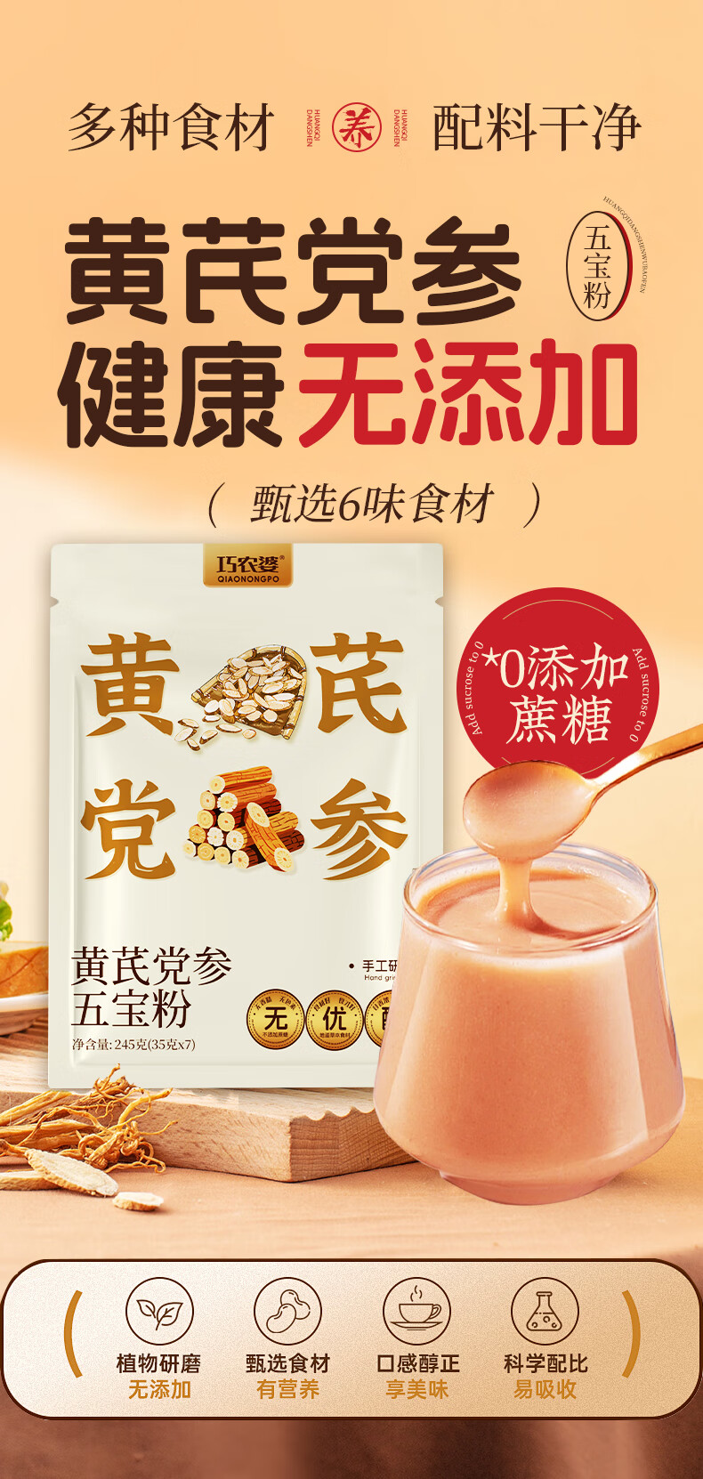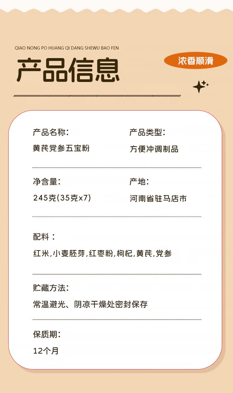 巧农婆黄芪党参五宝粉245g早餐营养代餐冲泡养胃护胃无添加速食代餐冲剂 【热销推荐】 245g*3袋