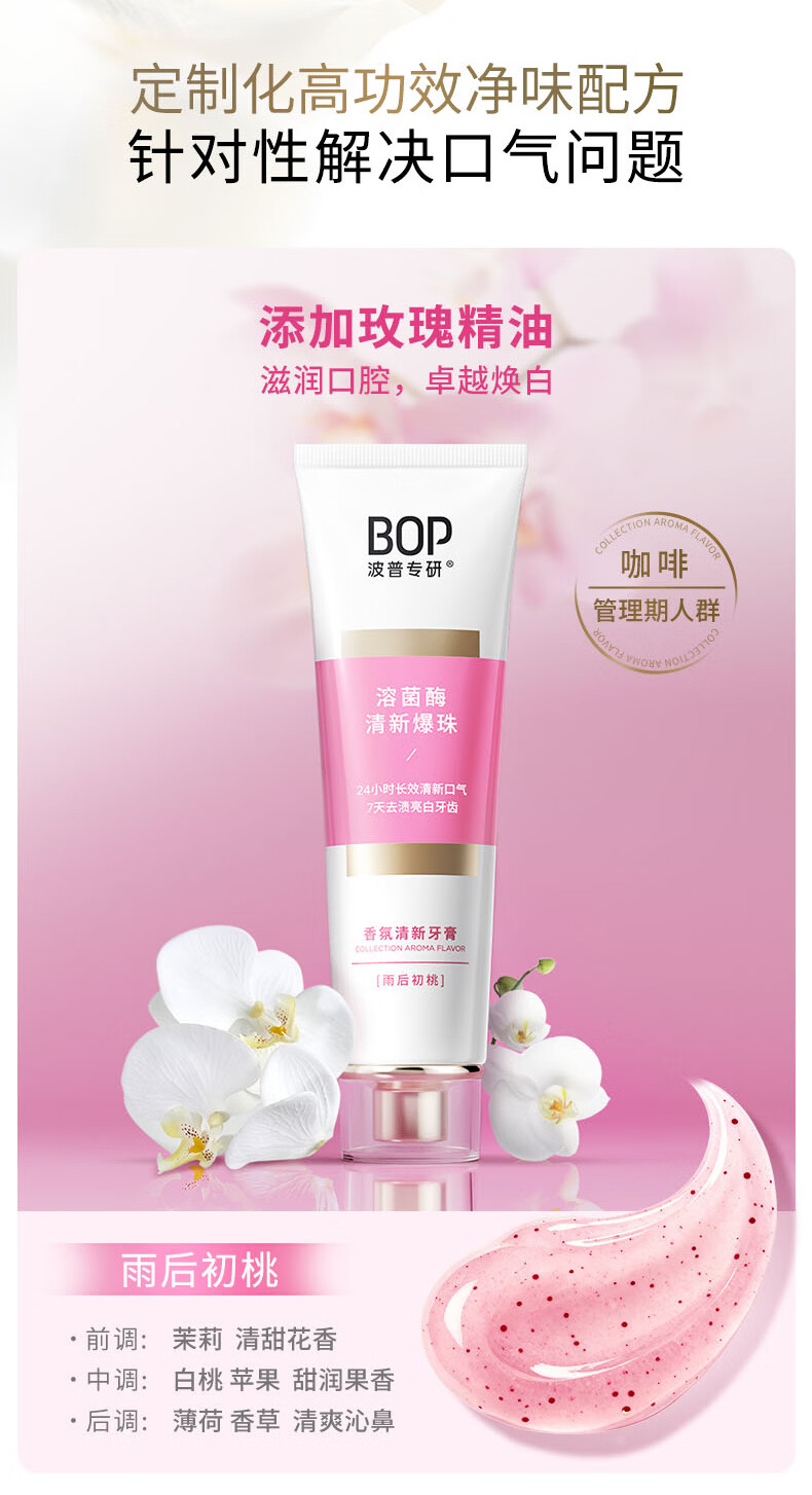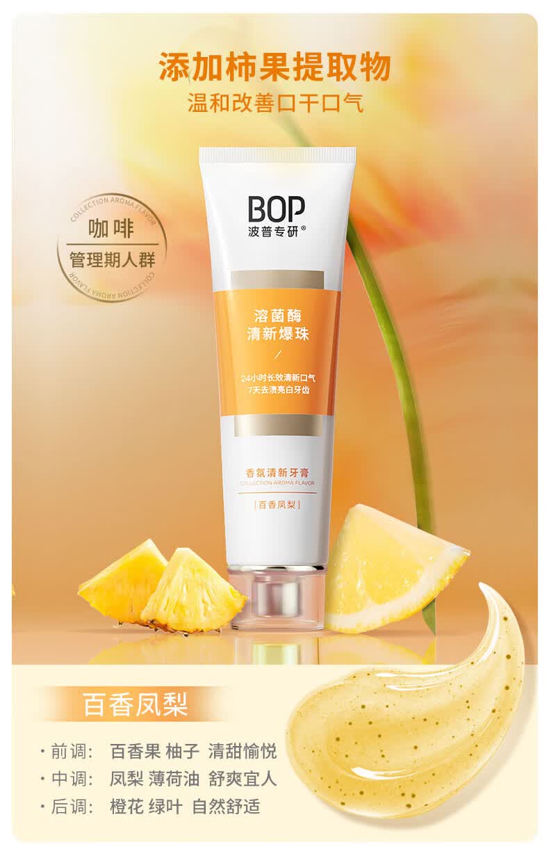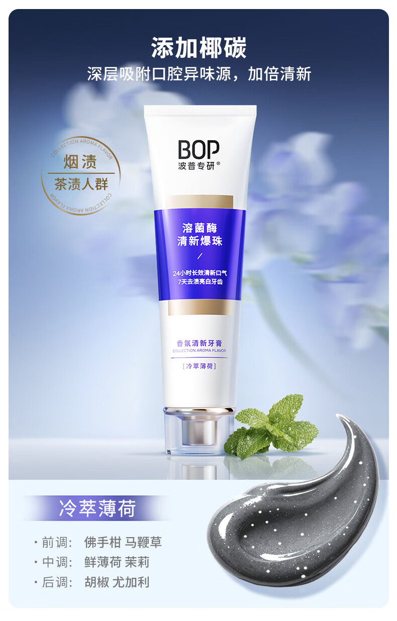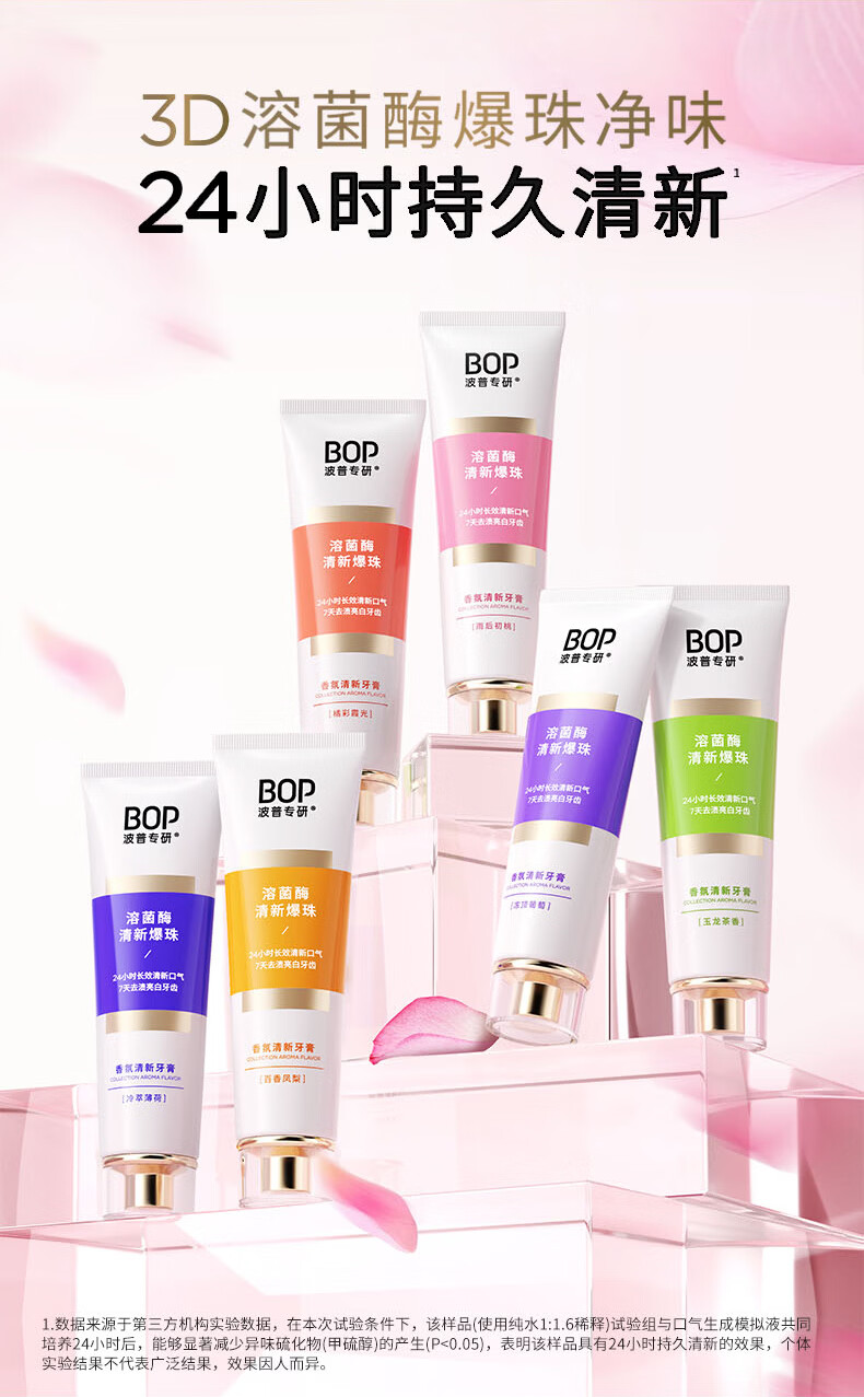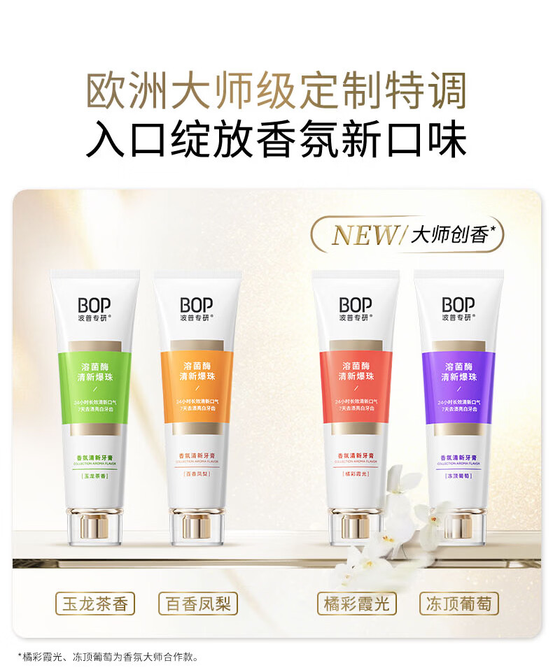 波普专研(bop)【24小时长效清新】香氛溶菌酶爆珠牙膏持久清新口气混合100g*3支