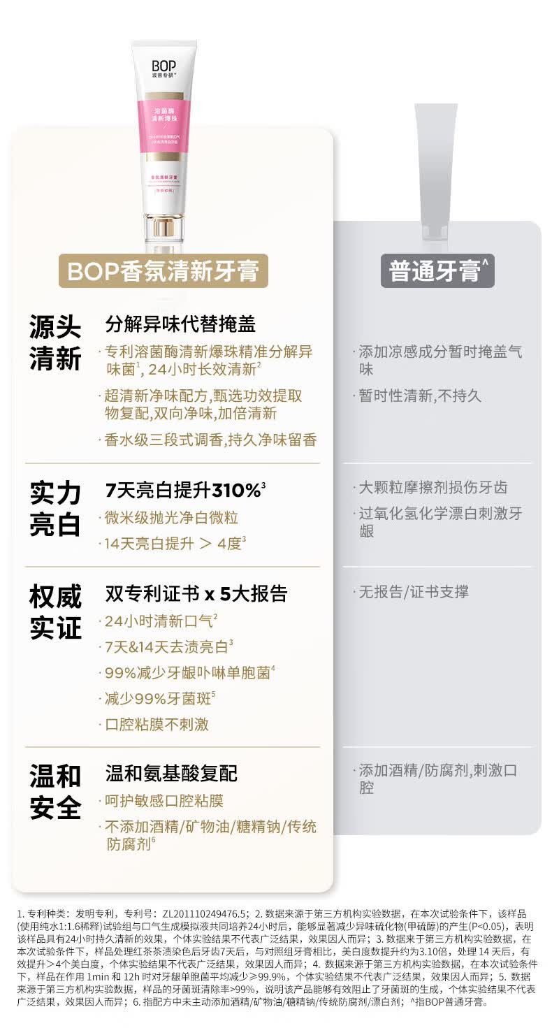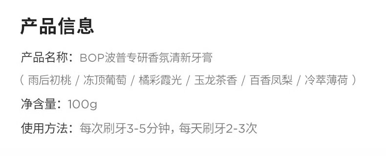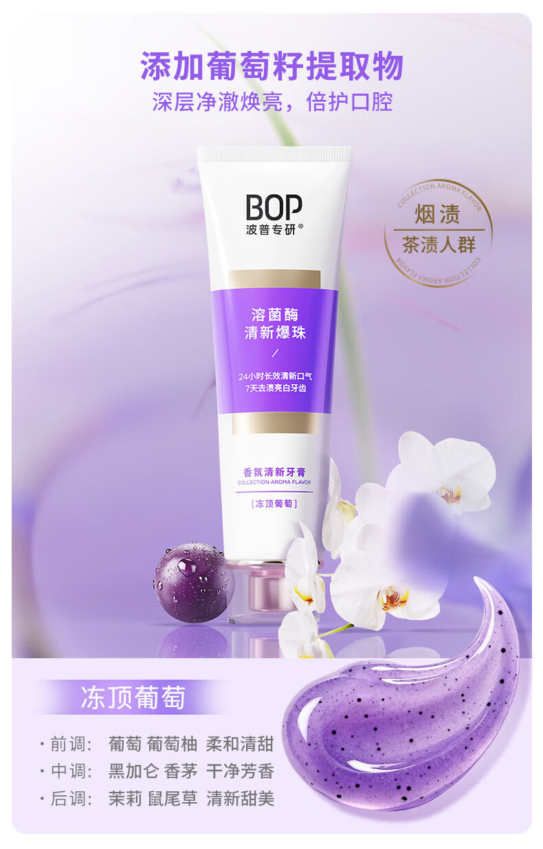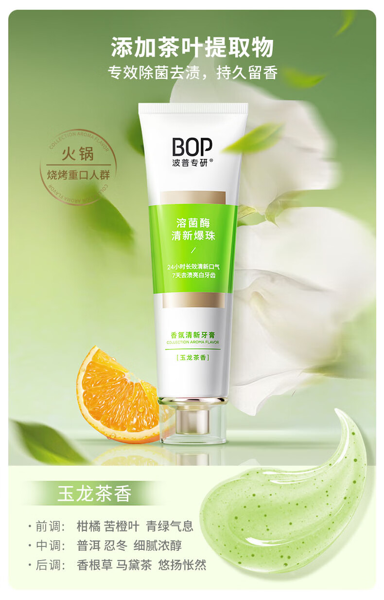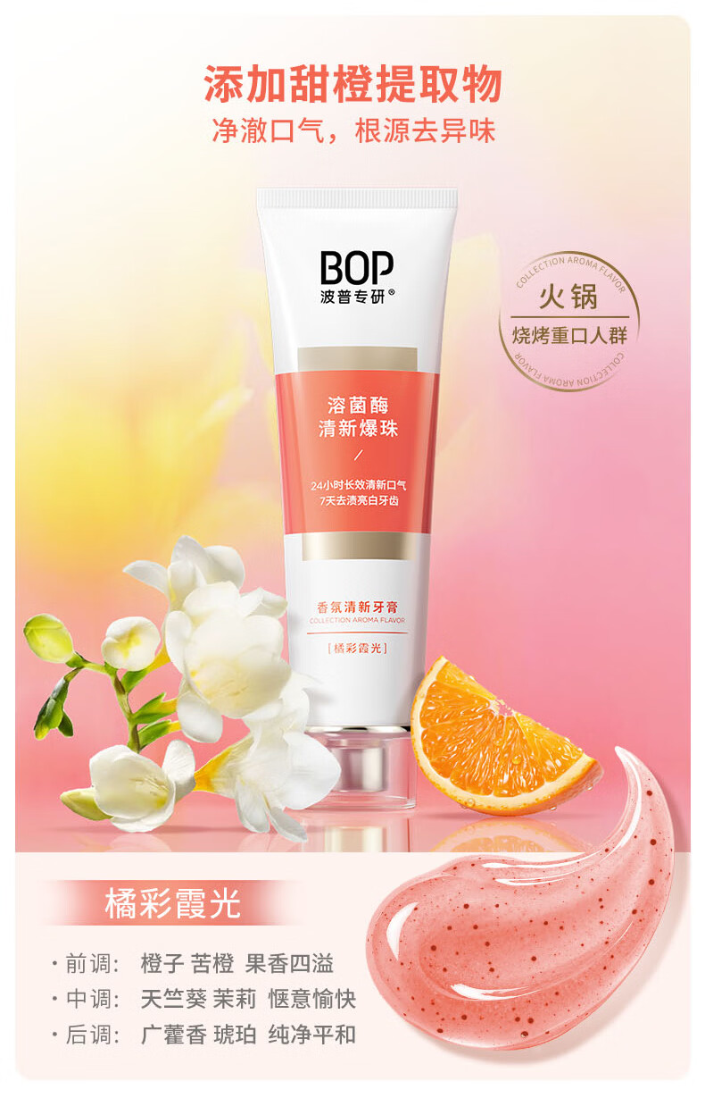 波普专研(bop)【24小时长效清新】香氛溶菌酶爆珠牙膏持久清新口气混合100g*3支
