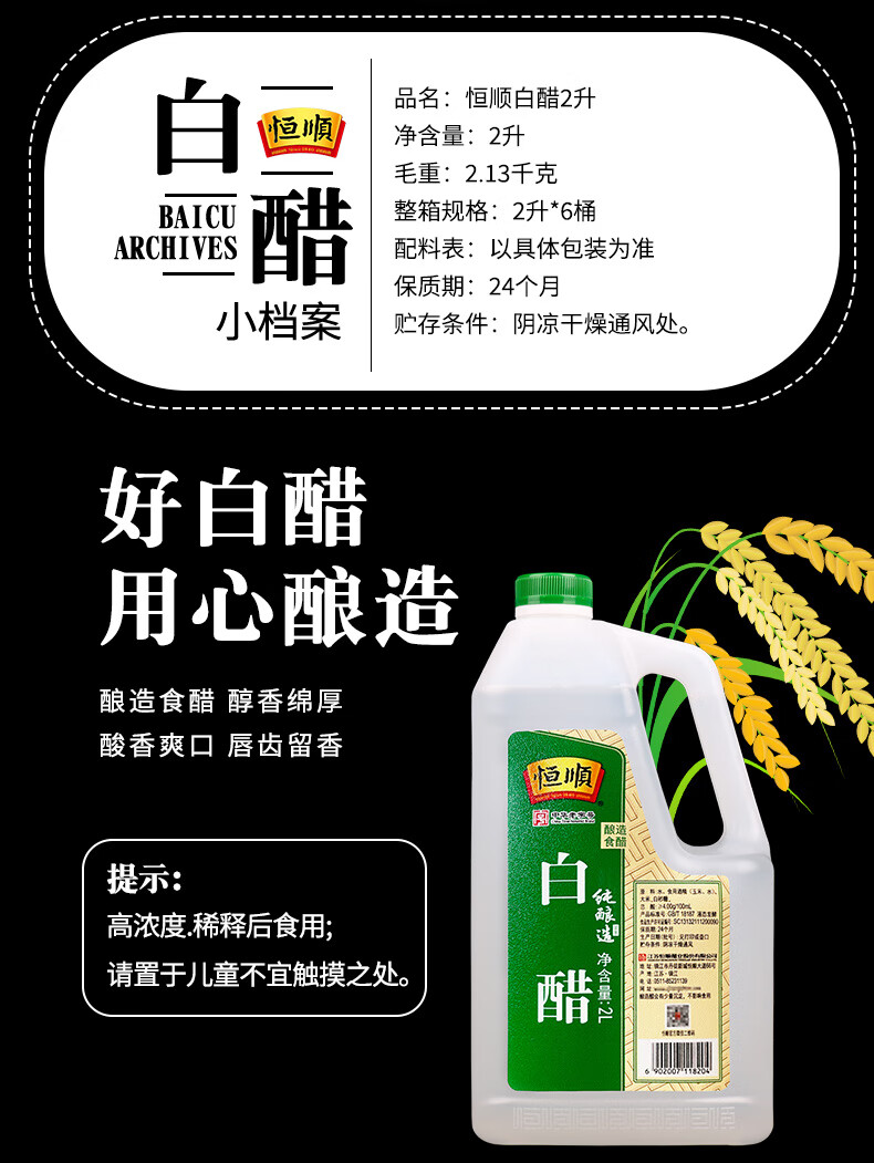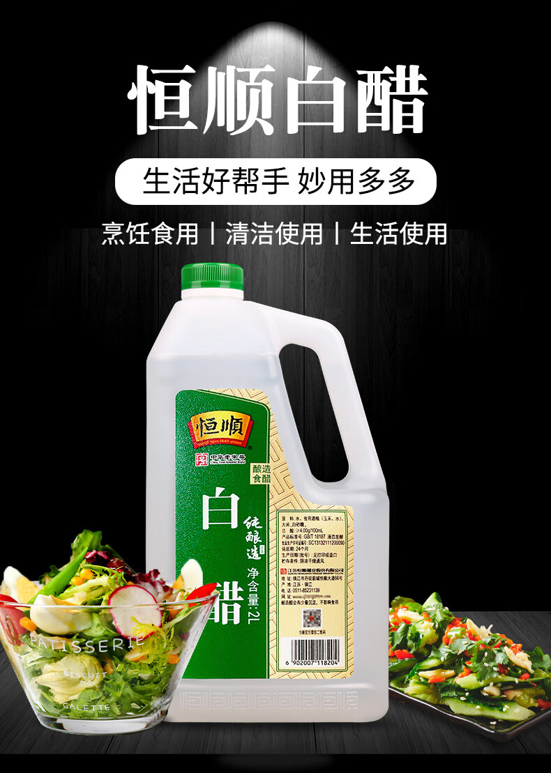 恒顺白醋 纯酿造 4度 2L 北固山白醋 清洁除垢多用途