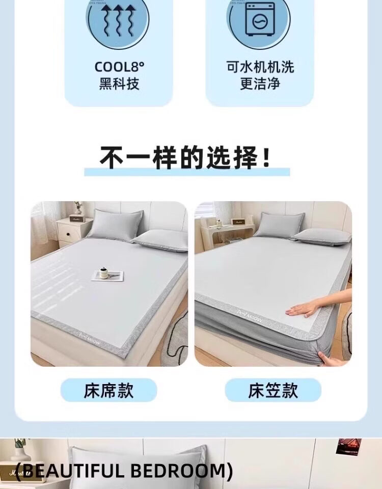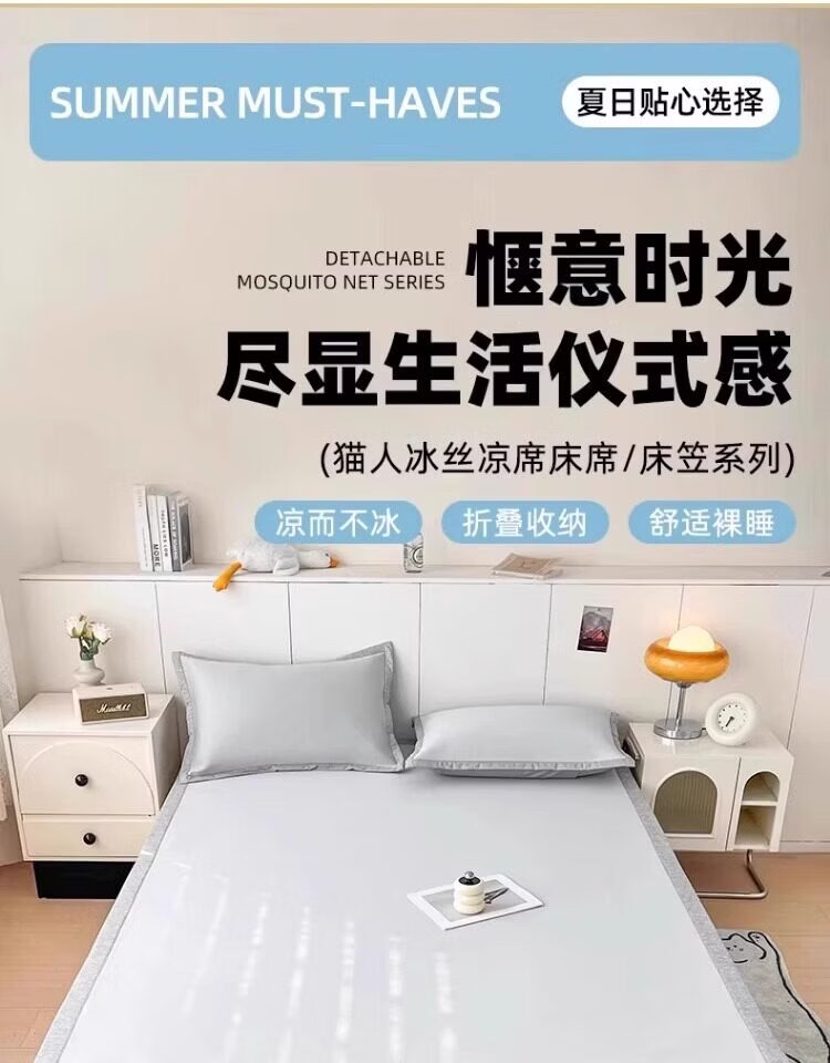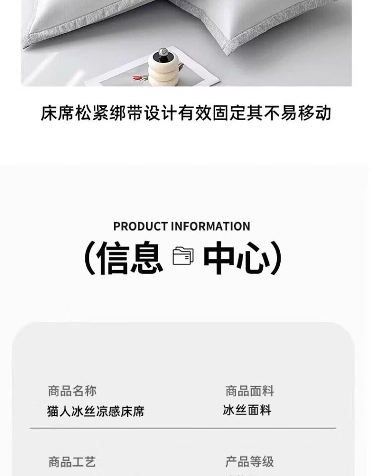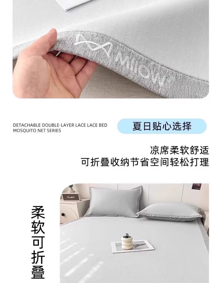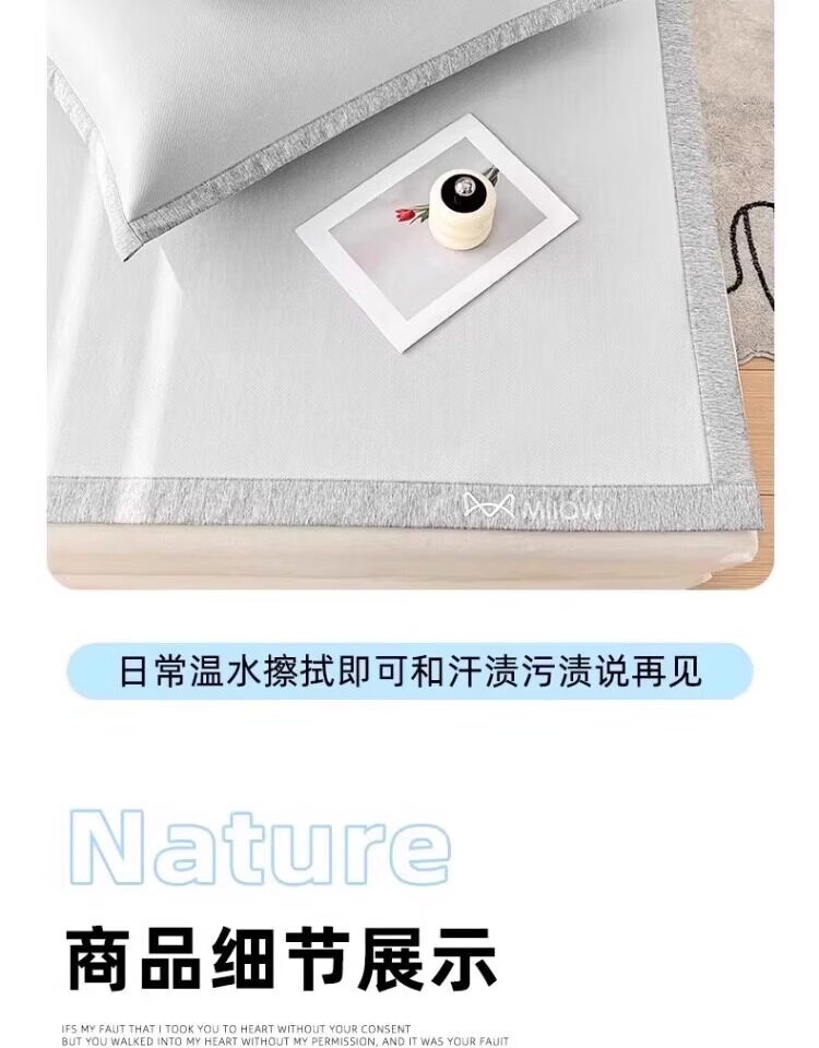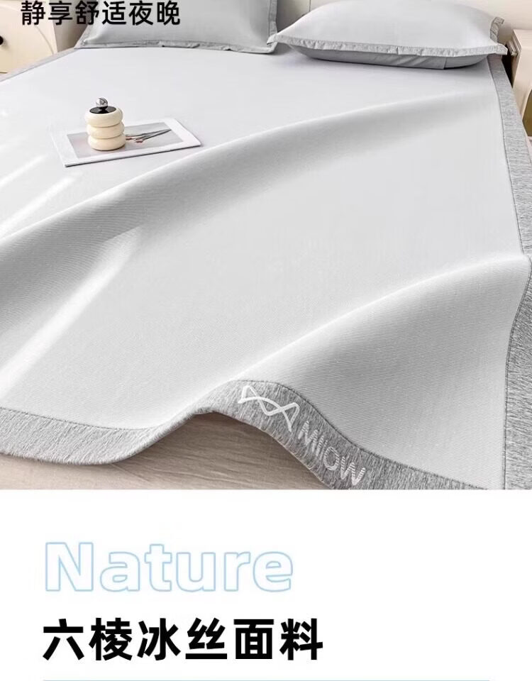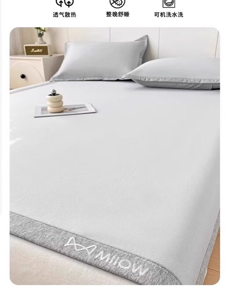 猫人(MiiOW)夏季冰丝凉席1.8x2米软席子家用床单床笠款三件套宿舍可机洗水洗 【床单款】雪花灰-配枕套【A类面料丨凉而不冰】 180cmx200cm