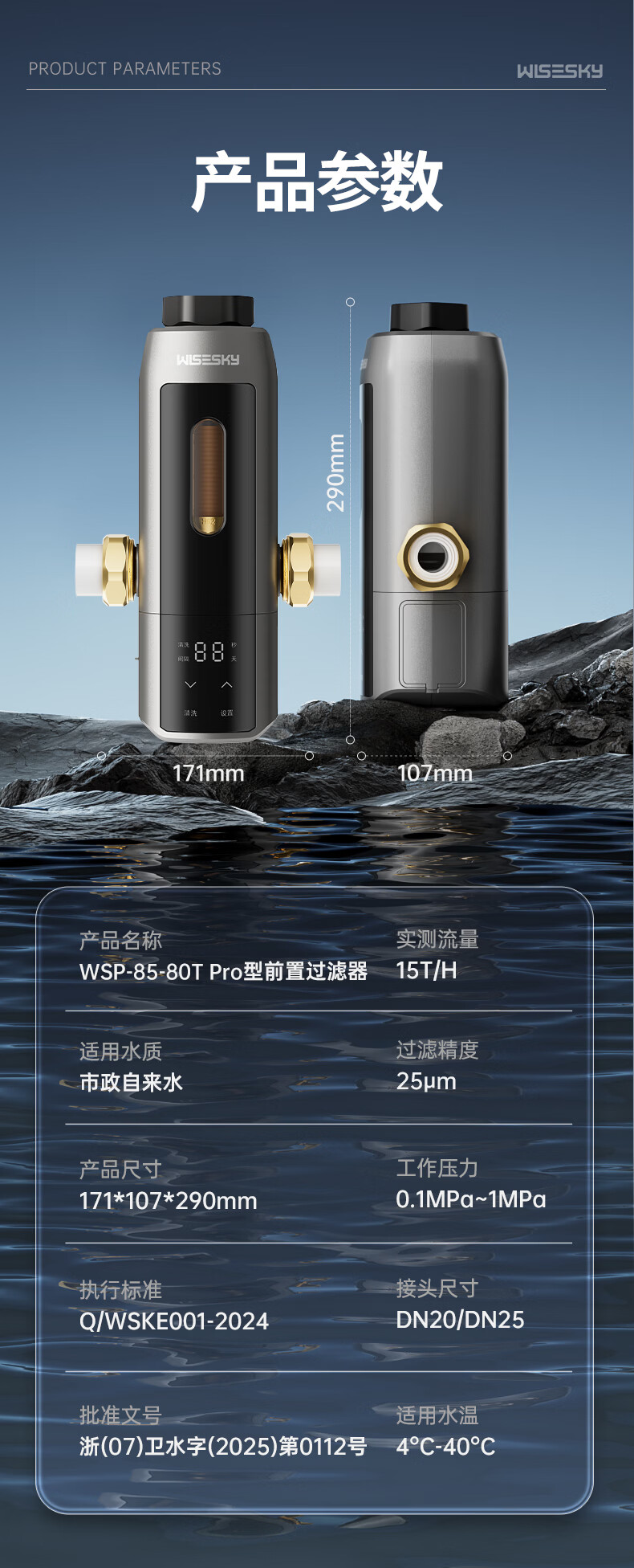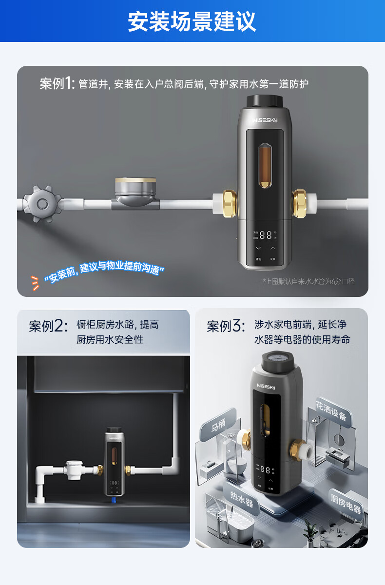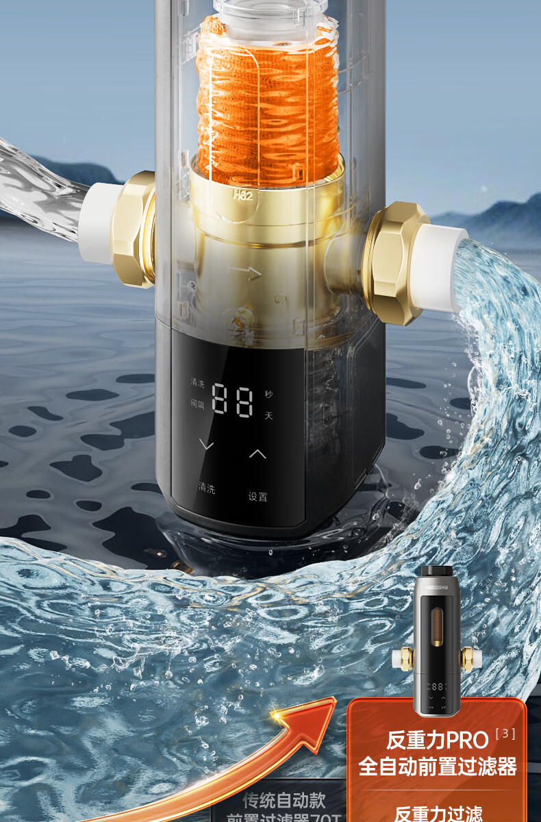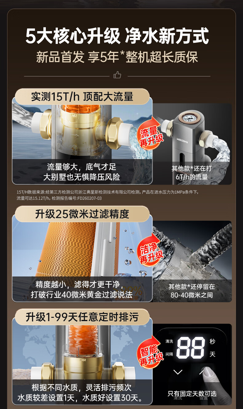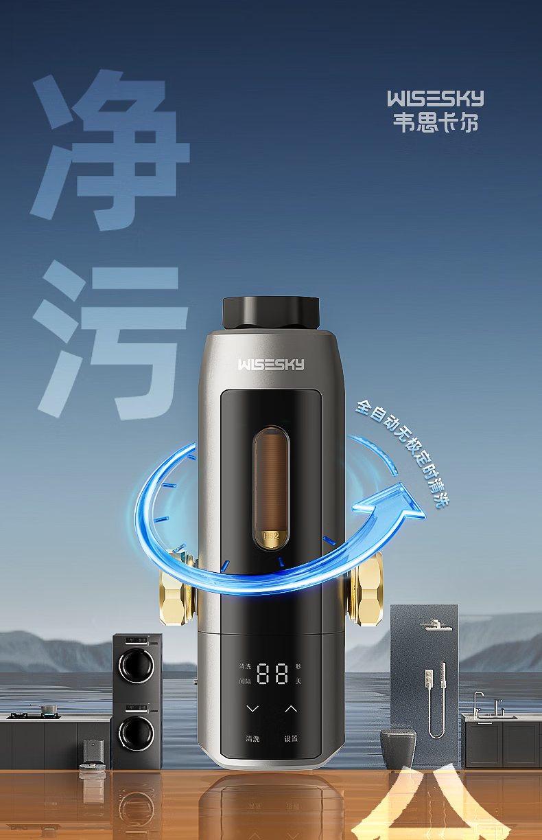 WISESKY韦思卡尔全自动款反重力前置过滤器15T大通量过滤25微米反冲洗家用上门包安装WSP-85-80T Pro 超15T/H大通量-25μm-全自动顶配