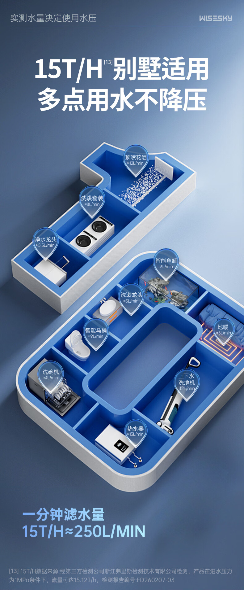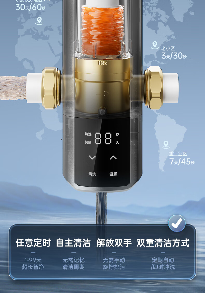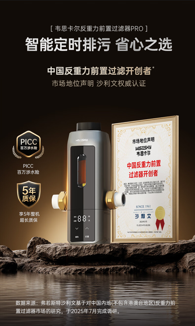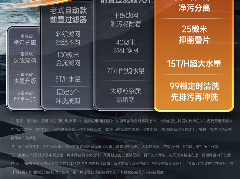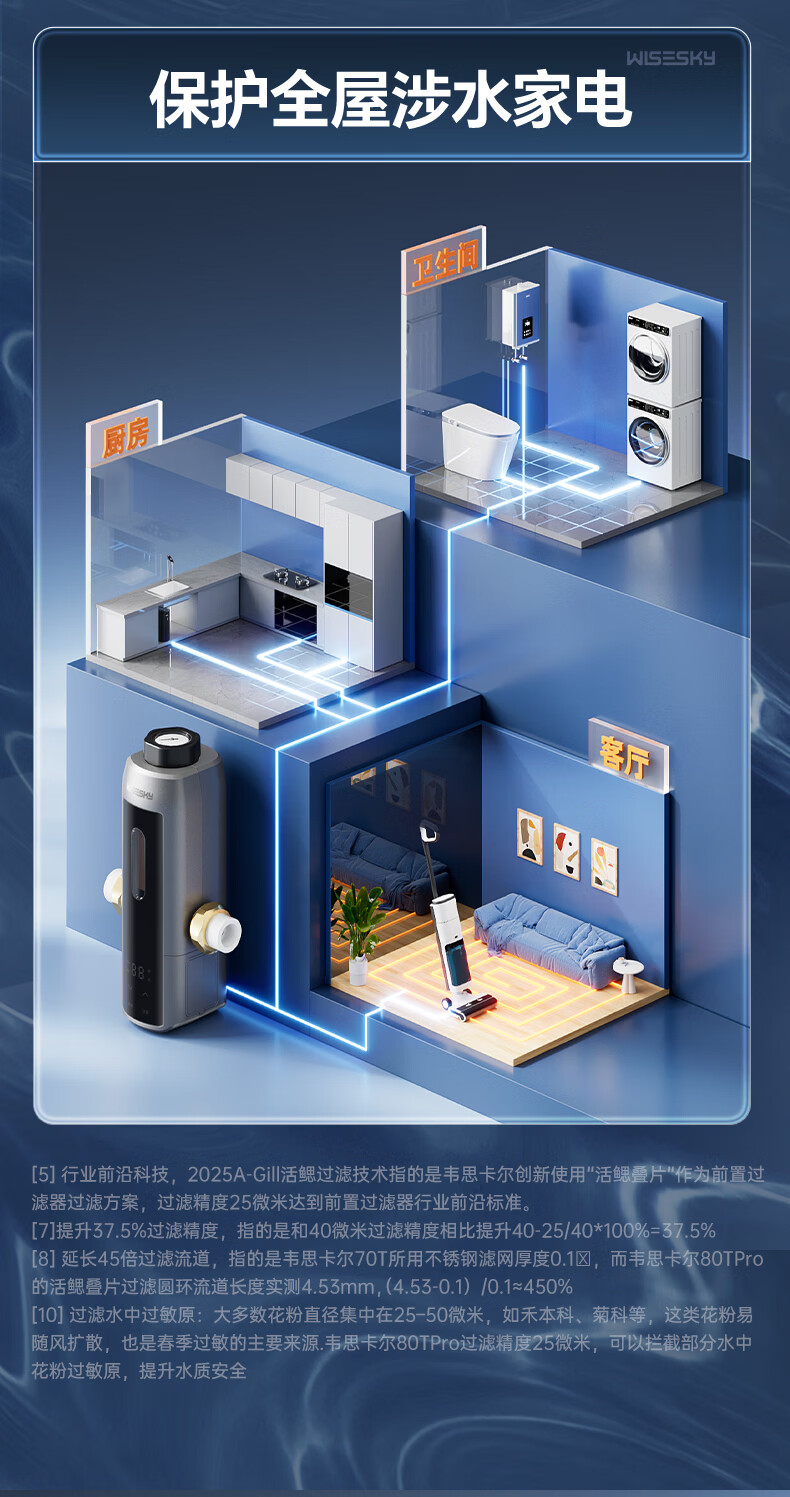 WISESKY韦思卡尔全自动款反重力前置过滤器15T大通量过滤25微米反冲洗家用上门包安装WSP-85-80T Pro 超15T/H大通量-25μm-全自动顶配
