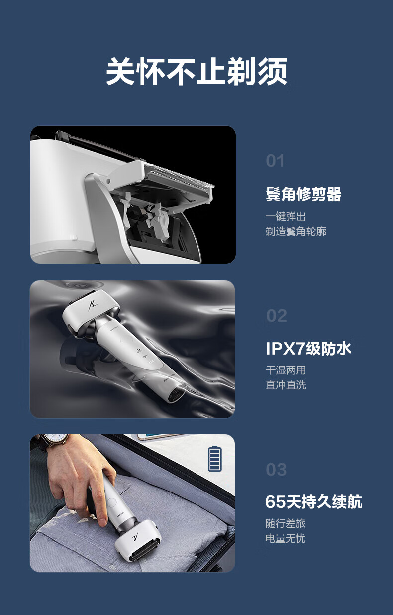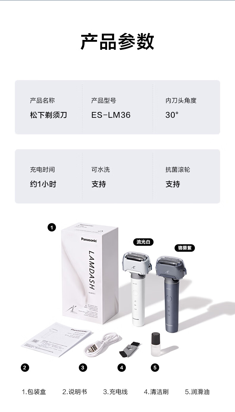 松下(Panasonic)全新小锤子3.0电动剃须刀往复式顺滑双滚轮亲肤便携款刮胡刀Type-c可水洗男士生日礼物LM36流光白