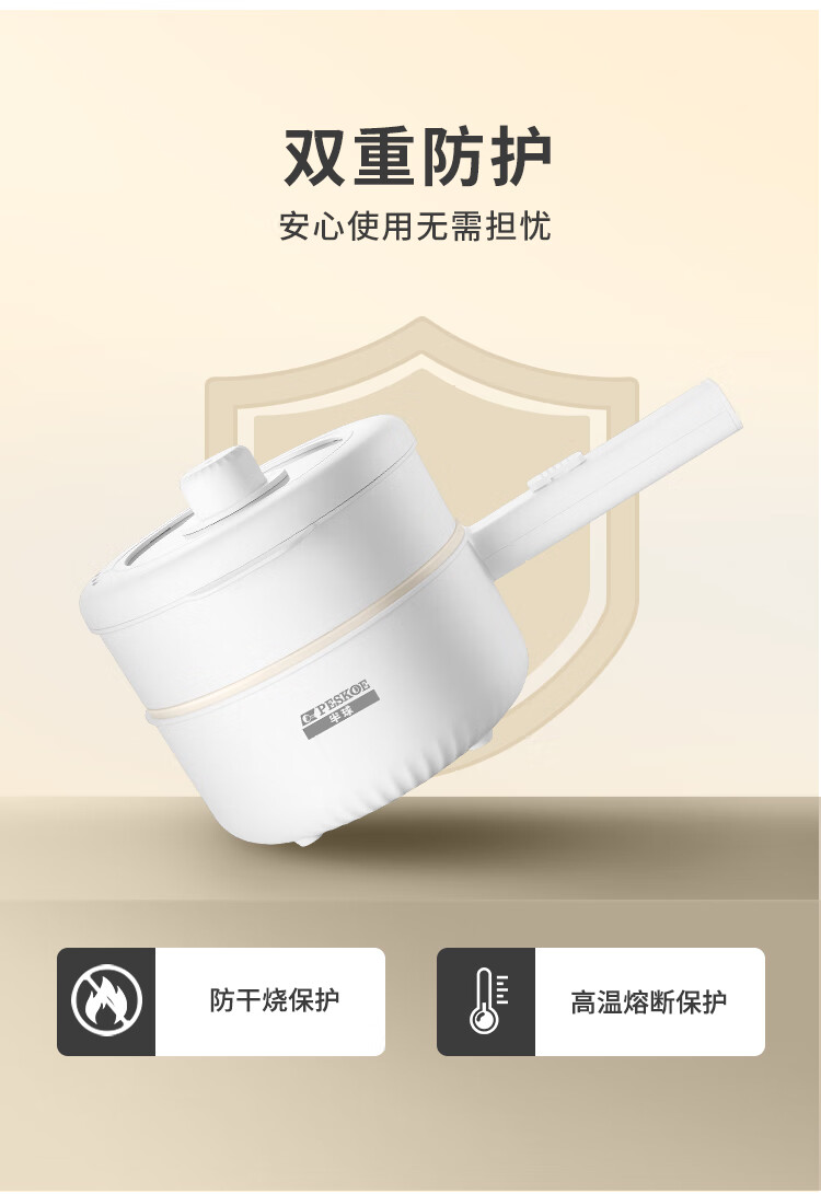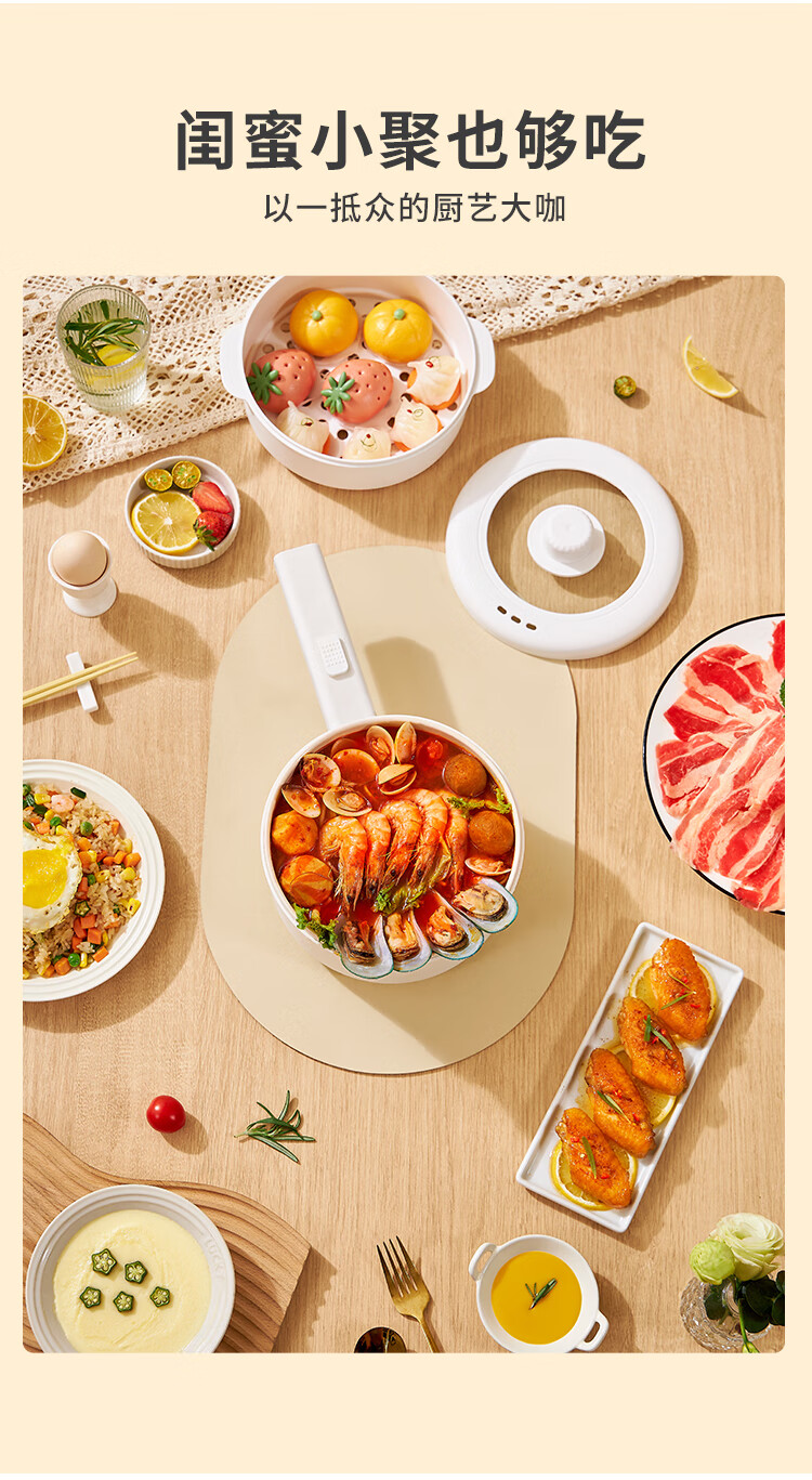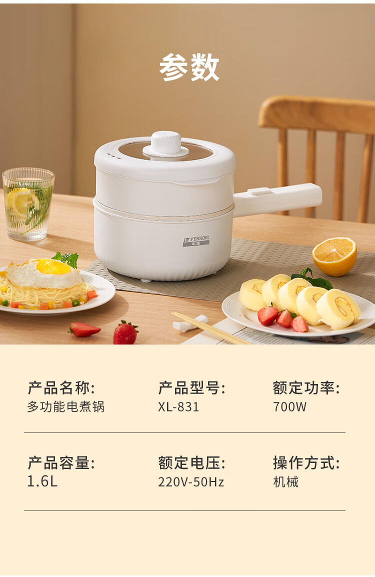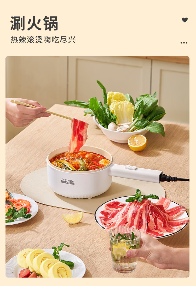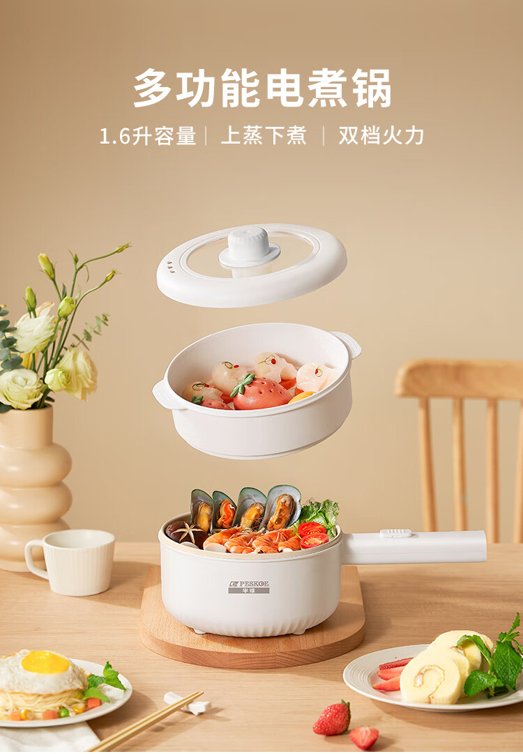 半球(PESKOE)电煮锅 电热锅 1.6L 电炒锅 小电锅 宿舍小锅多功能火锅煮面锅 XL831