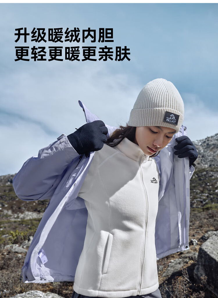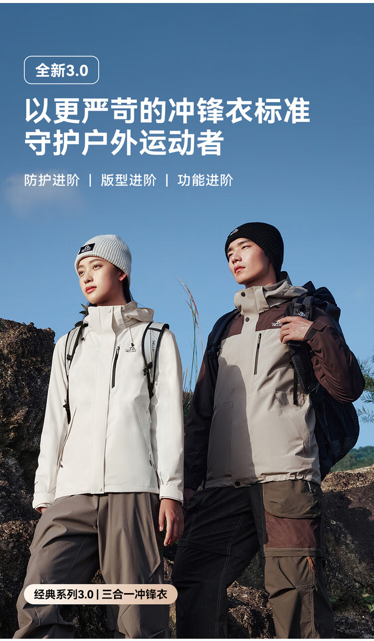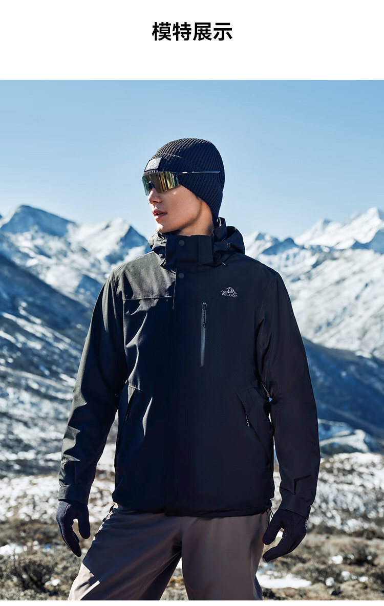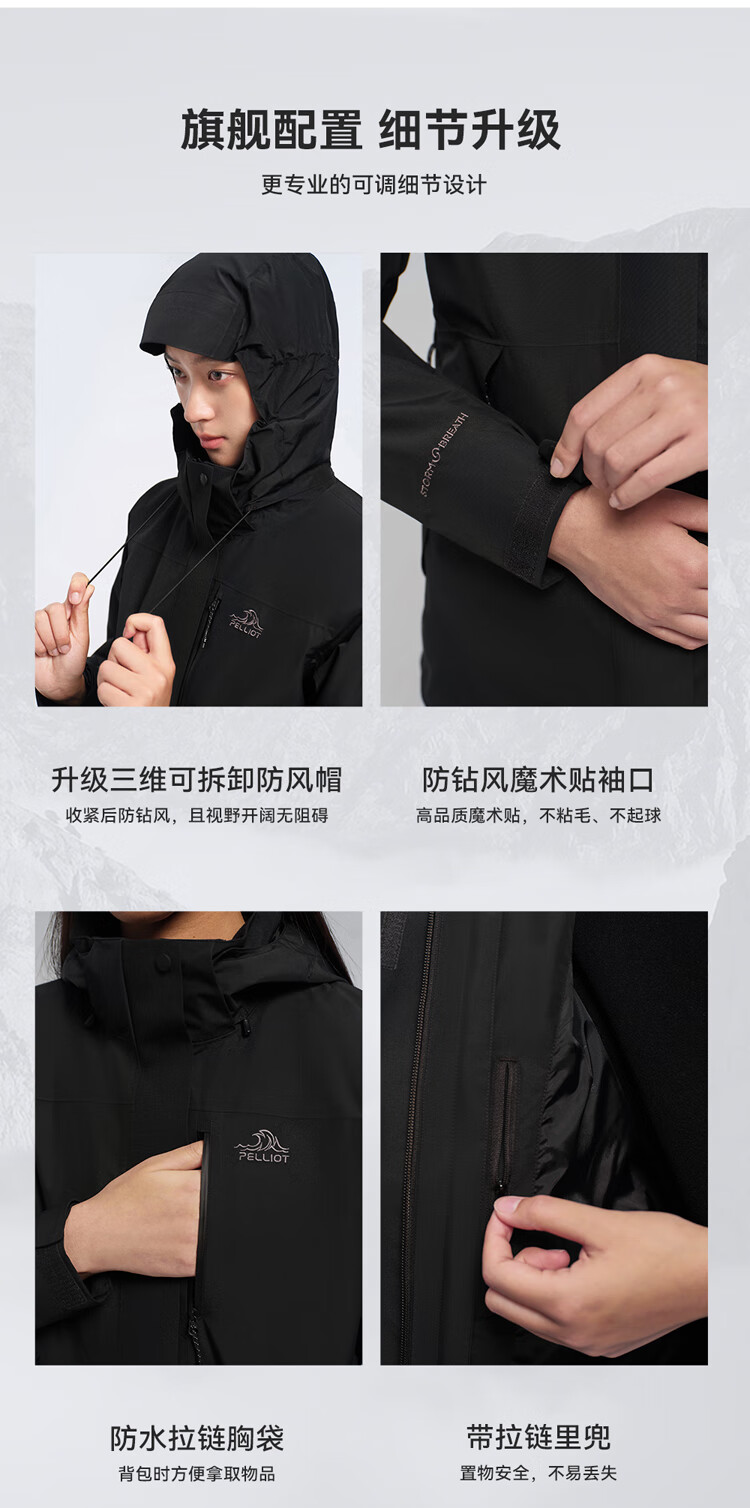 伯希和(Pelliot)【经典3.0山野】三合一冲锋衣男女新款春秋防风防水登山保暖外套 【简约百搭】男漫暮黑 | 配置升级 M