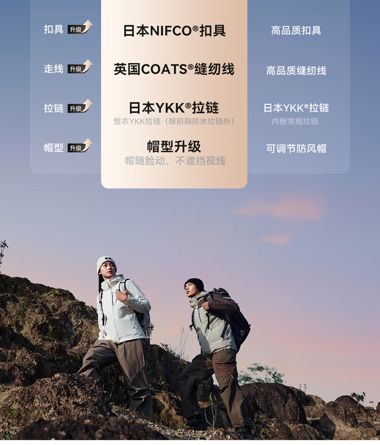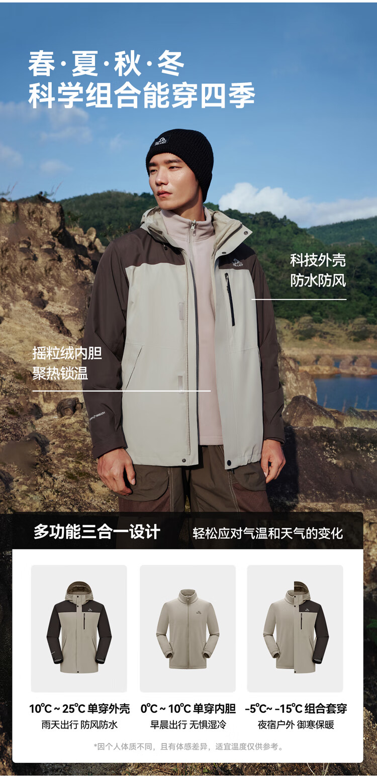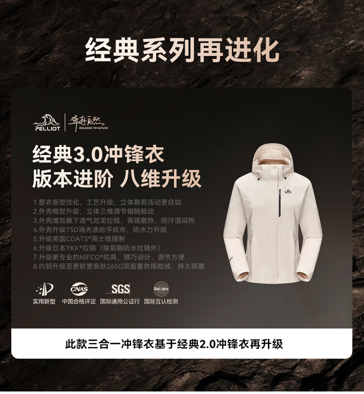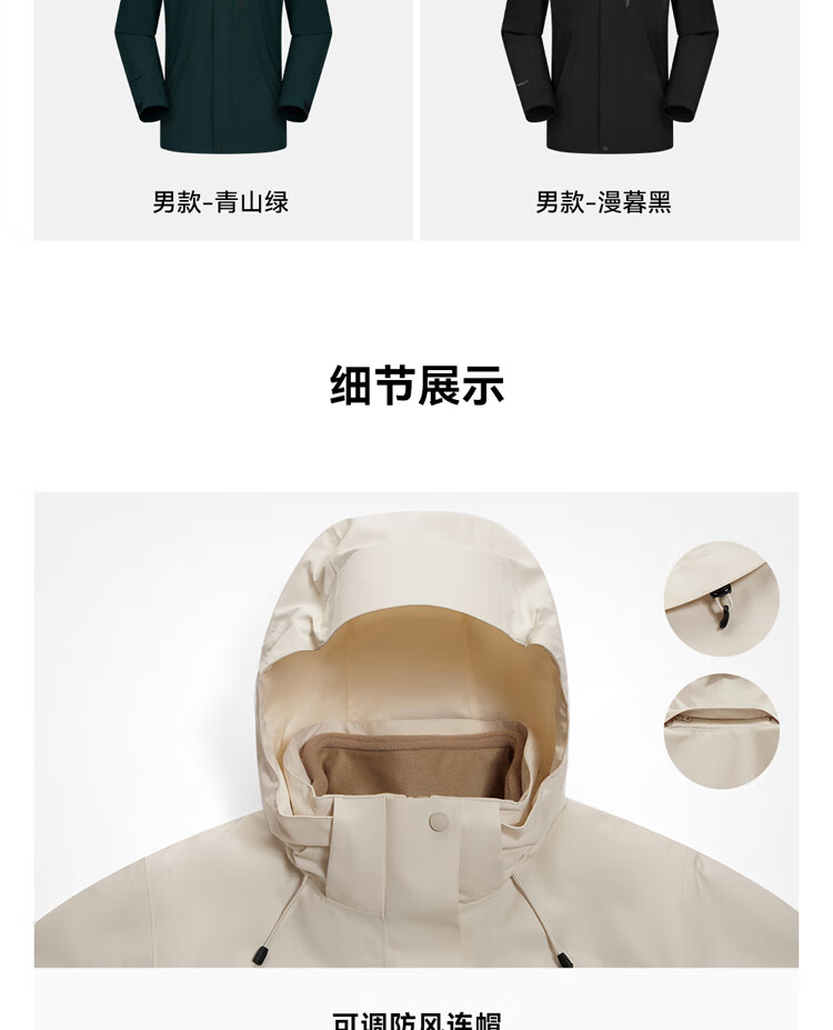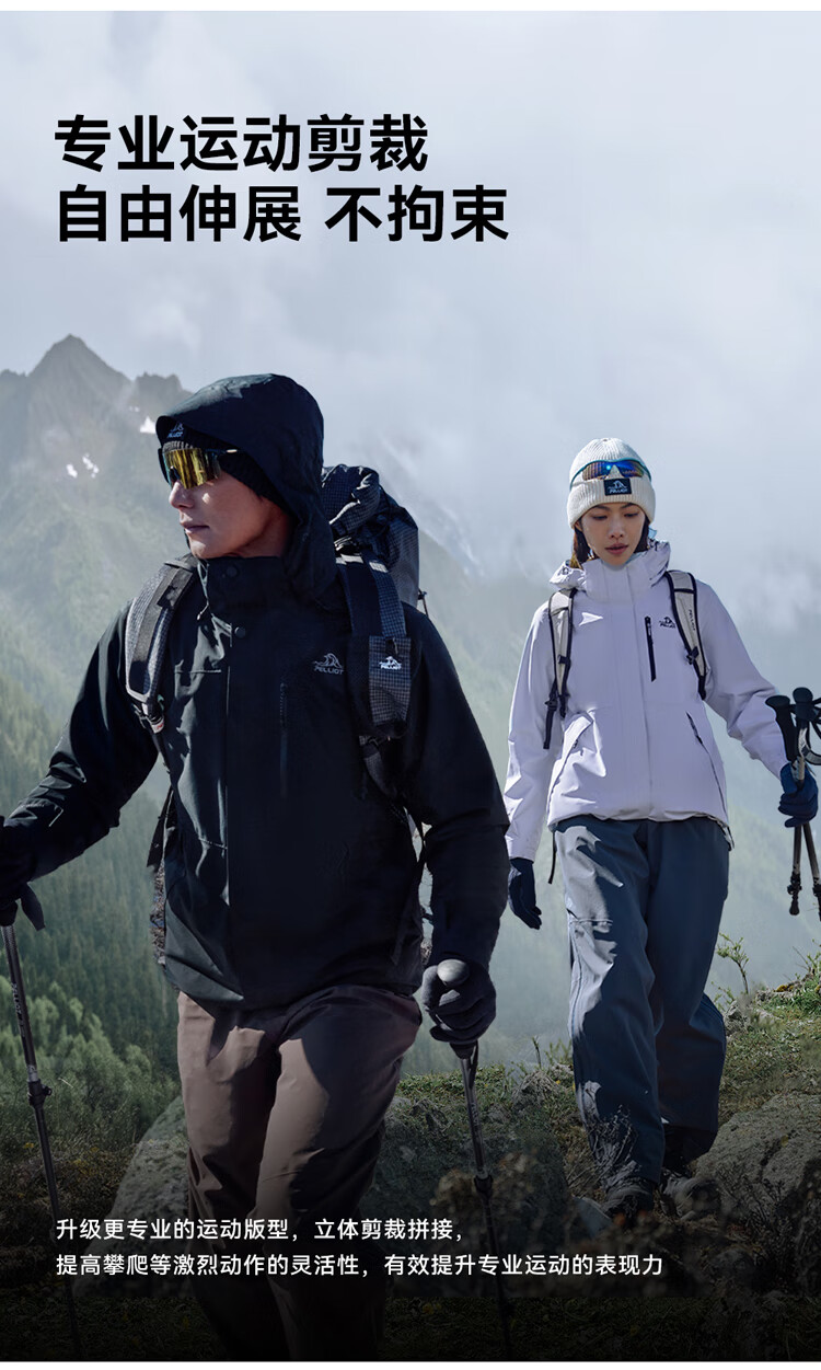 伯希和(Pelliot)【经典3.0山野】三合一冲锋衣男女新款春秋防风防水登山保暖外套 【简约百搭】男漫暮黑 | 配置升级 M