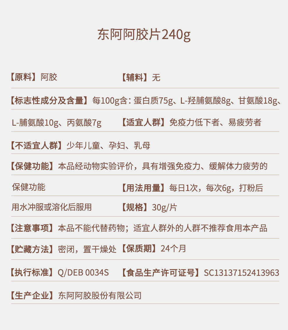 东阿阿胶阿胶片240g红标阿胶提高免疫力送长辈礼物营养品保健品礼品滋补品