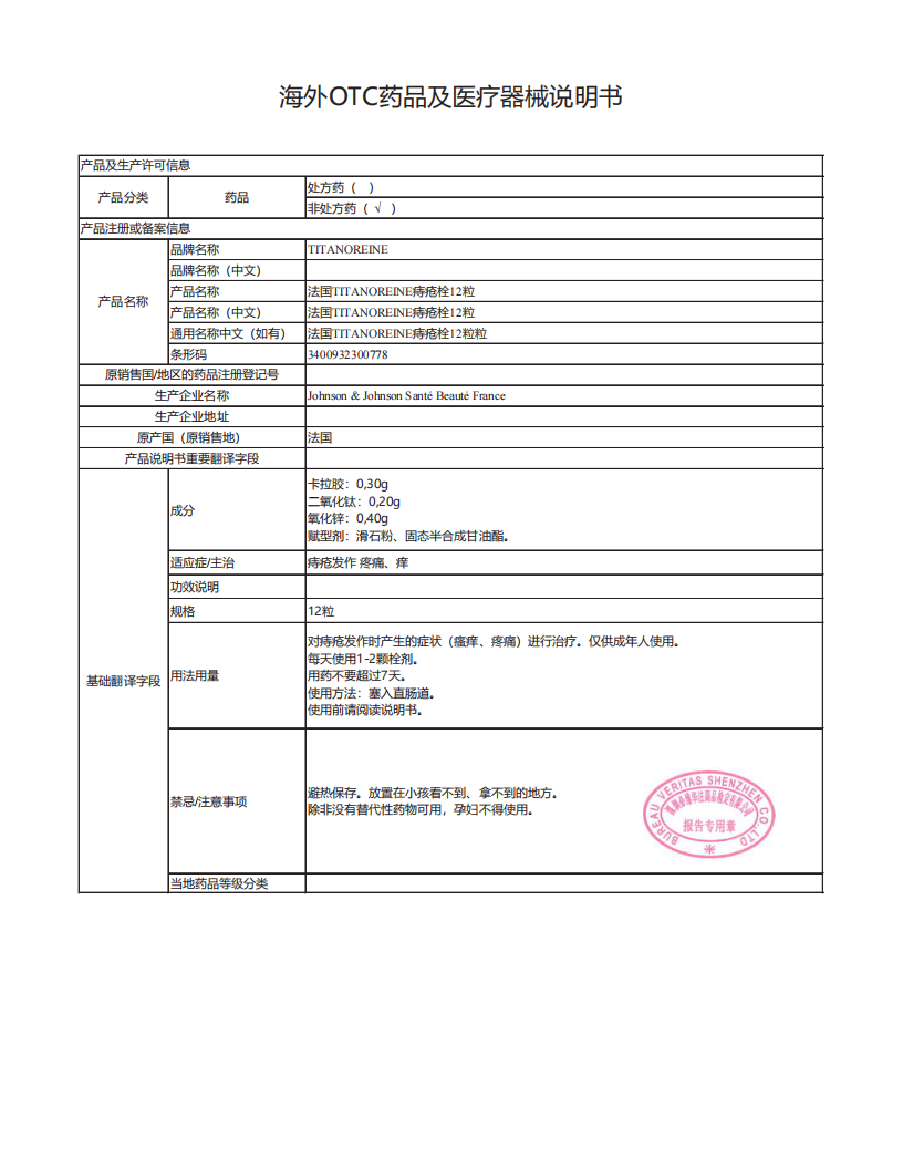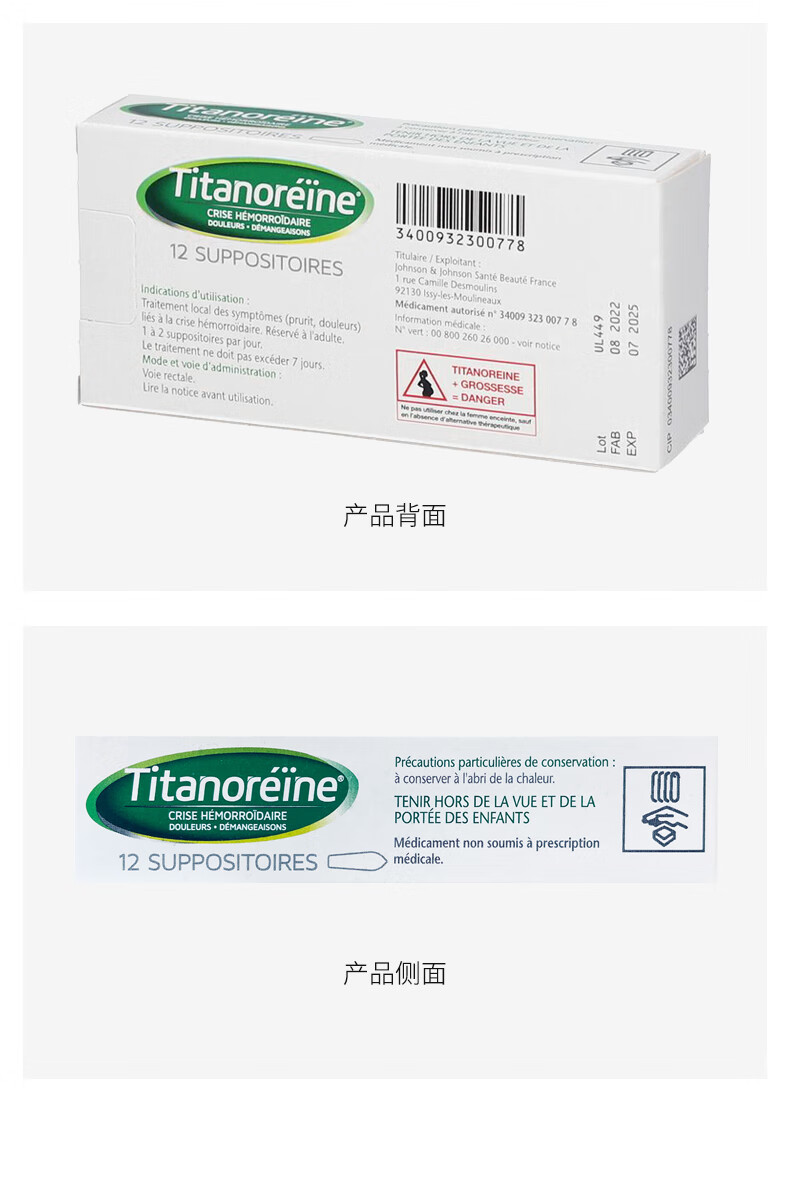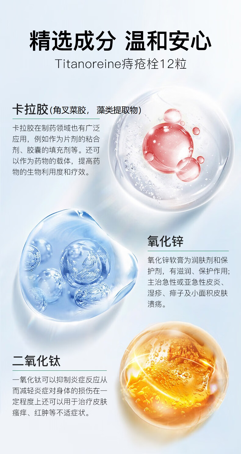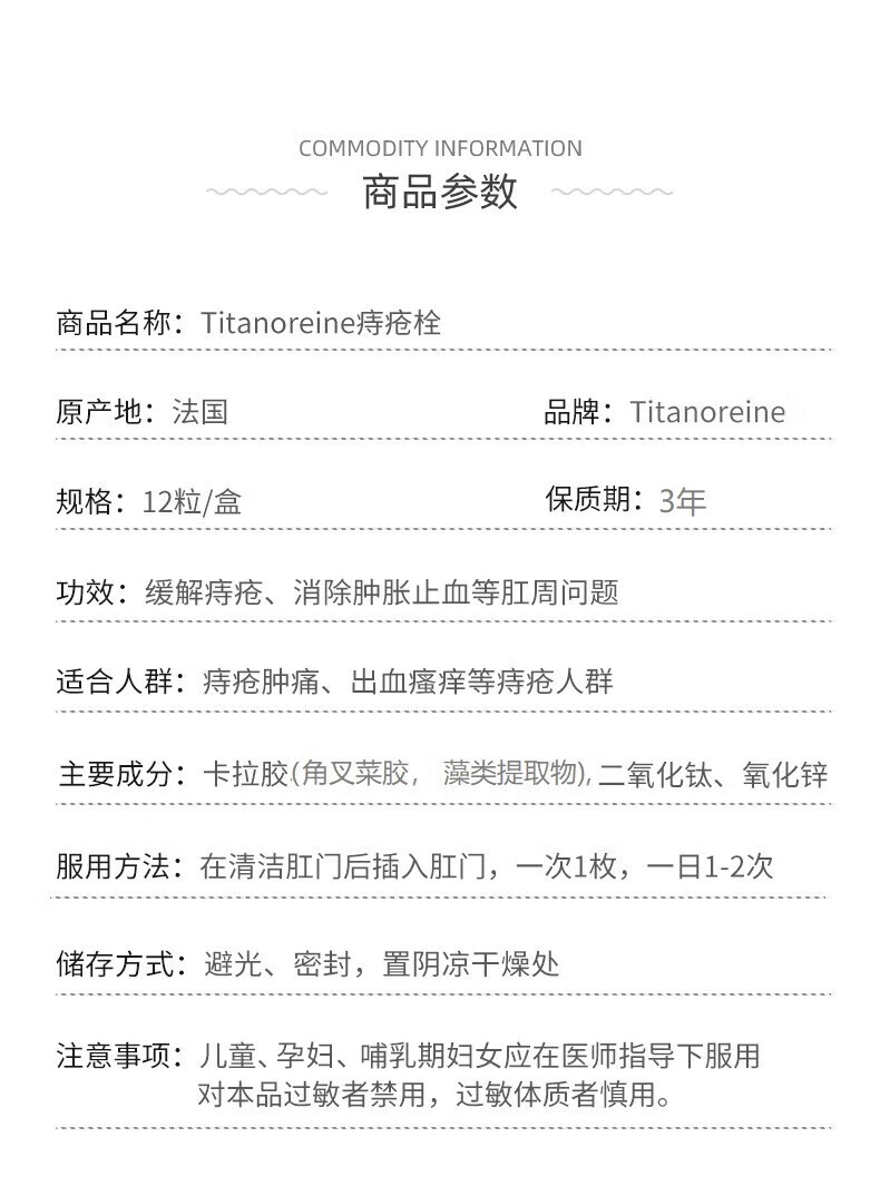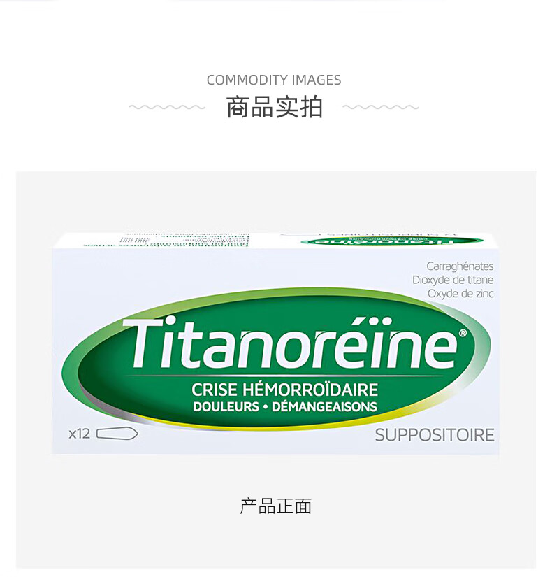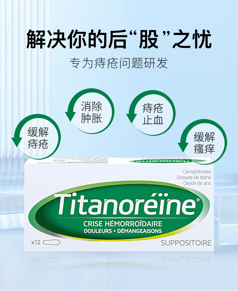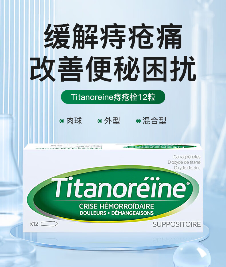 Titanoreine太宁 复方角菜酸酯栓痔疮栓12粒 肉球消除 内痔外痔混合痔专用药便血瘙痒 法国原装进口京东自营
