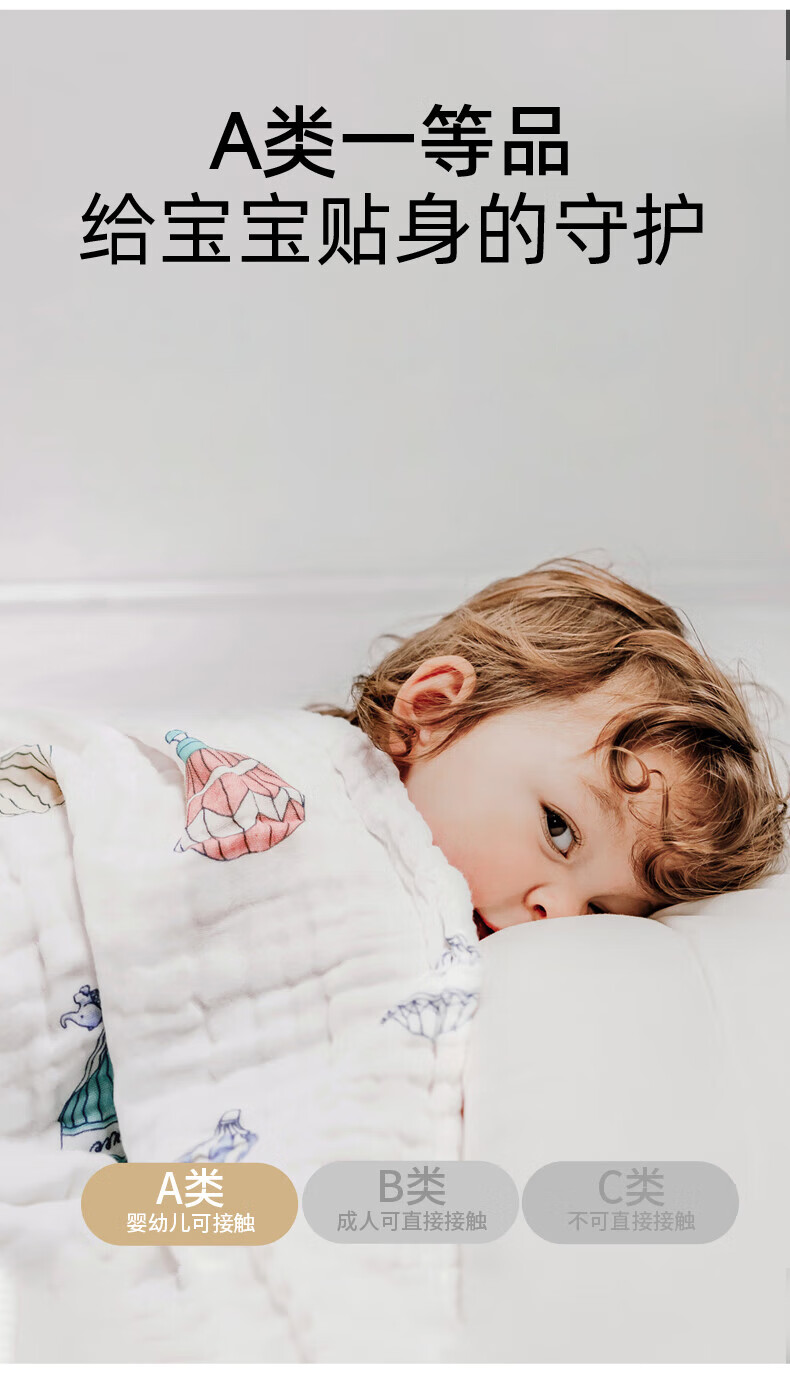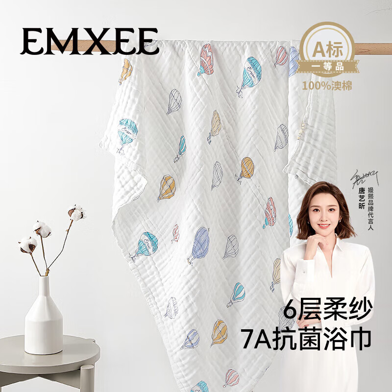 嫚熙(EMXEE)婴儿纱布浴巾a类纯棉儿童浴巾新生儿浴巾洗澡巾 70*70cm 4层
