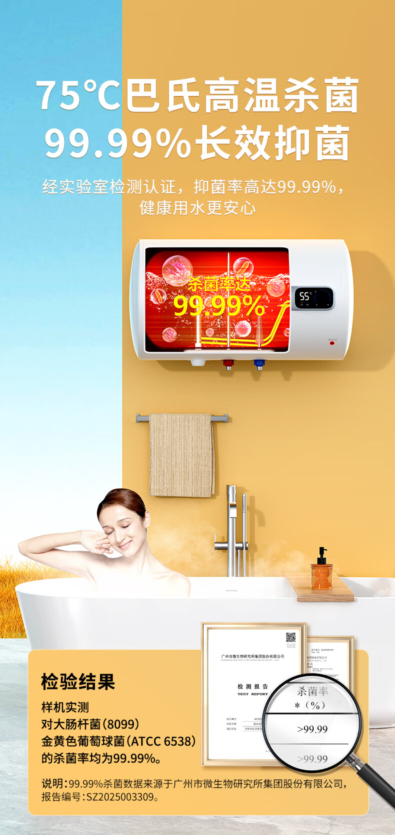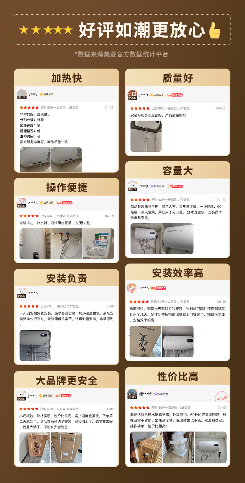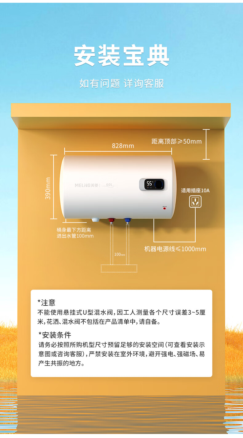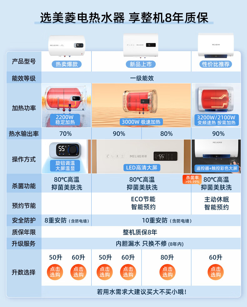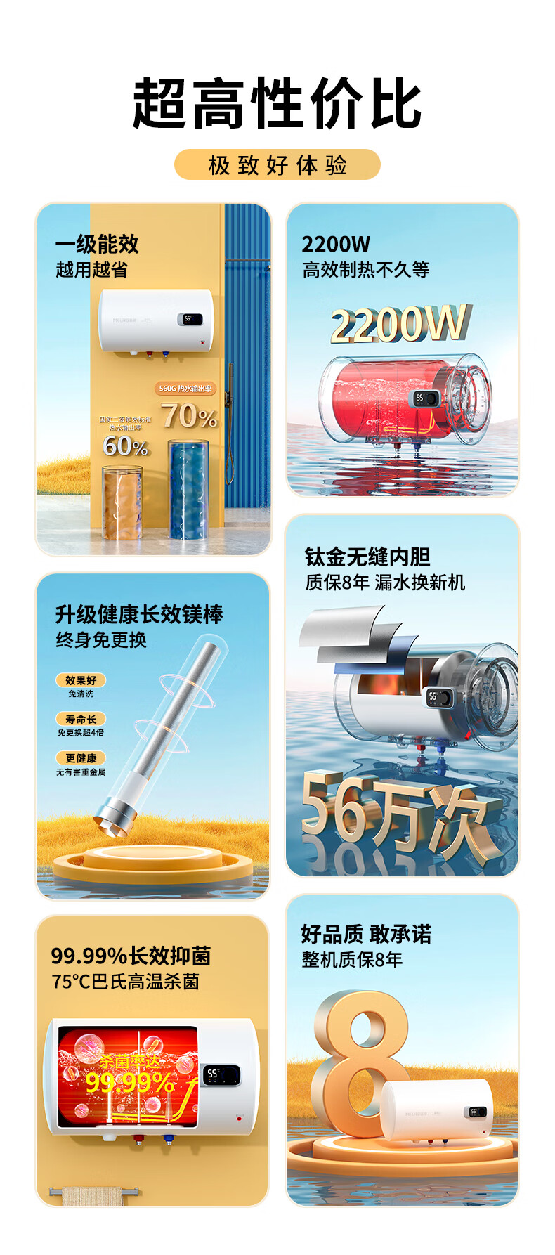 美菱电热水器60升免更换镁棒政府补贴15%一级能效家用节能储水式热水器2200W速热电脑数显质保8年560G