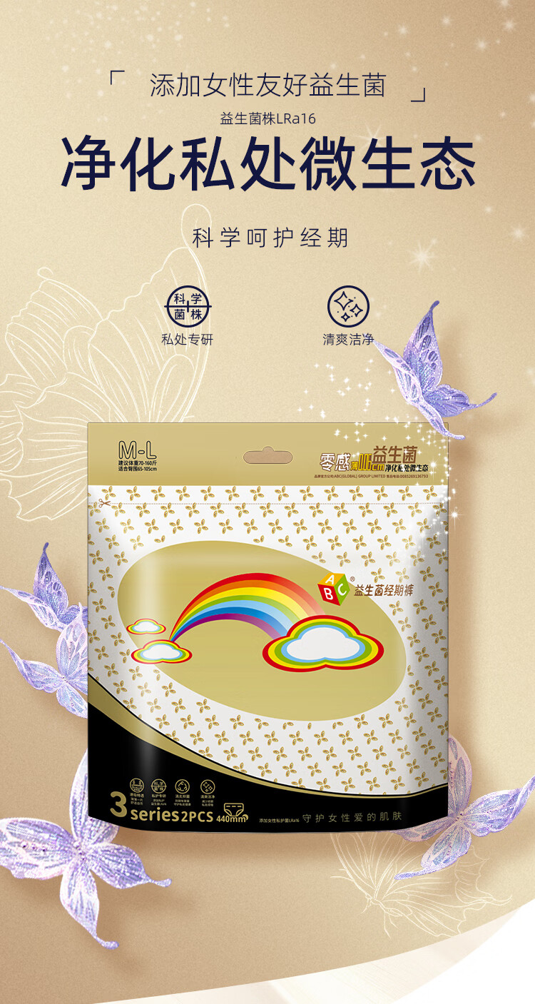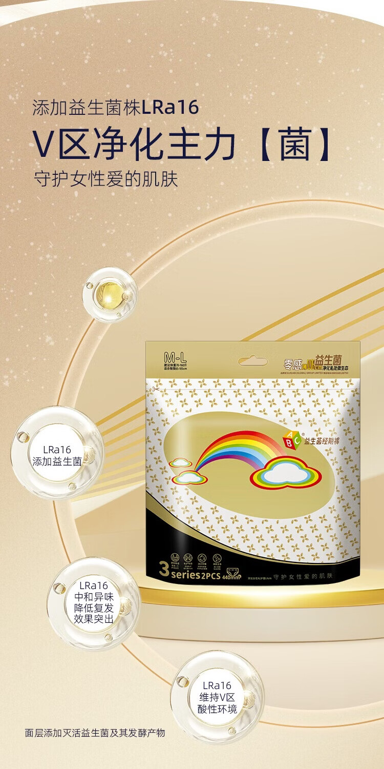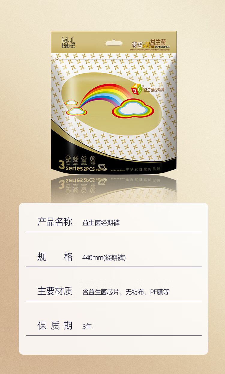 S彩虹图品牌液体卫生巾益生菌安心裤超薄一次性内裤安睡裤卫生巾 F码-均码 6条 70-160斤