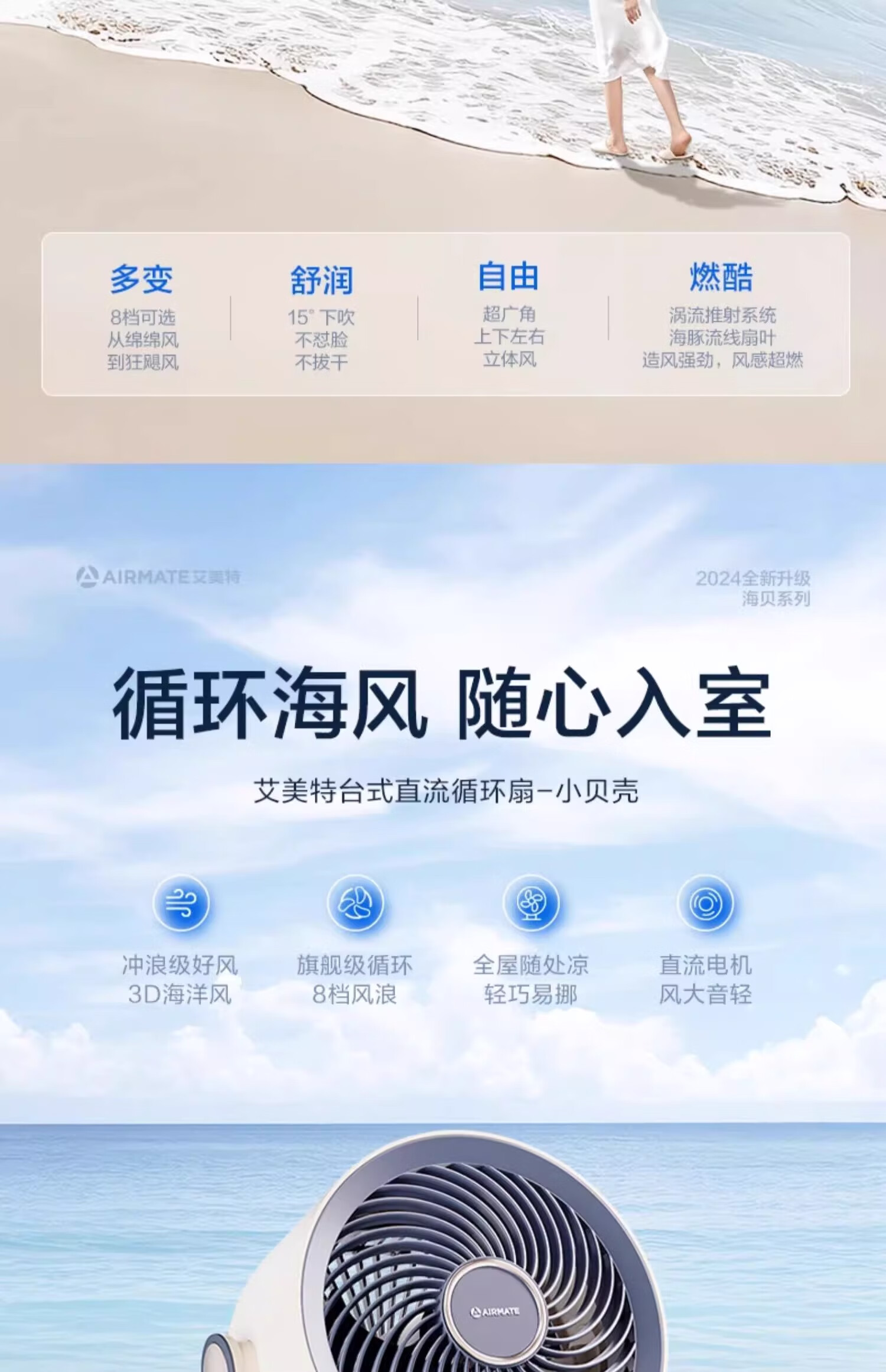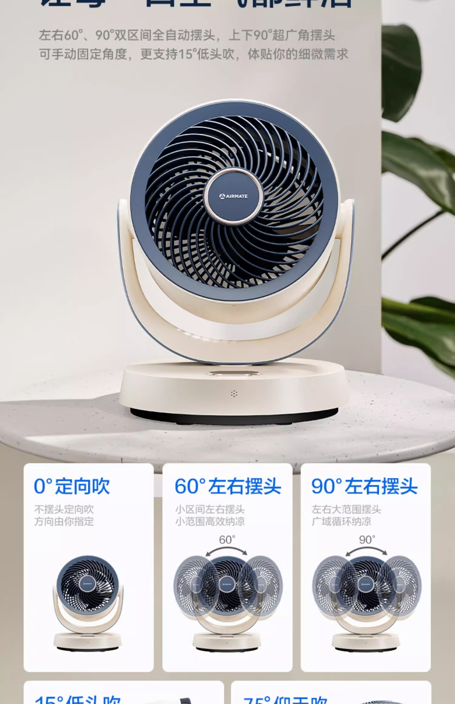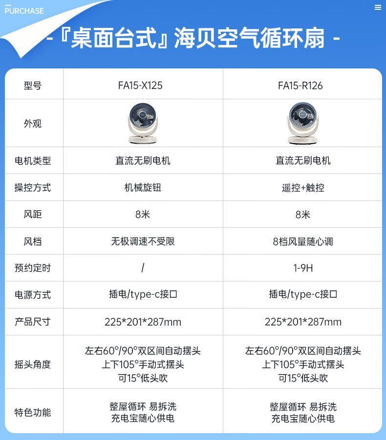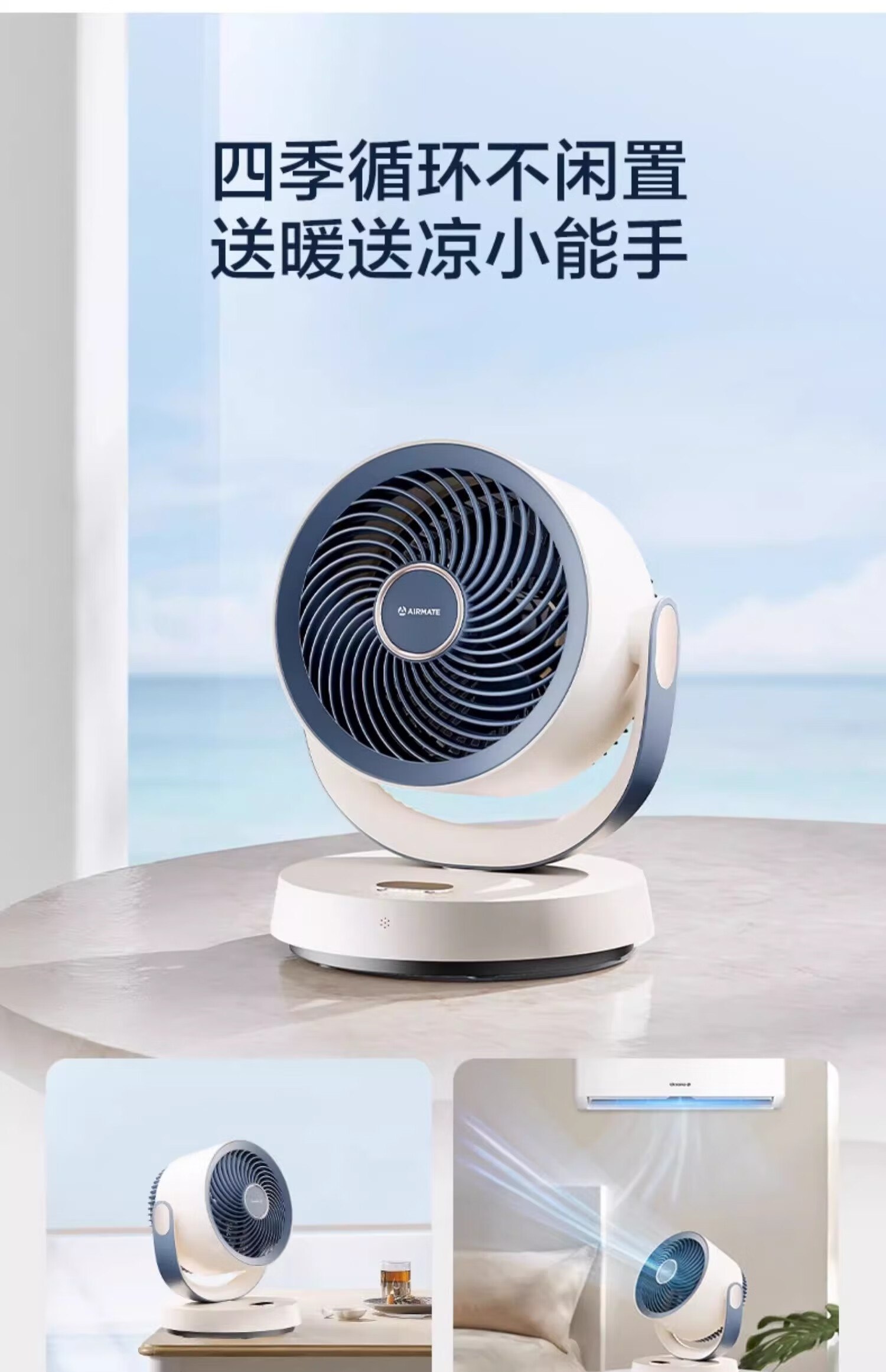 艾美特(AIRMATE)【热销爆款】】空气循环扇桌面电风扇台式家用办公室宿舍床上小直流节能享轻音插电充户外露营风扇 旋钮款无极调速丨可接充电宝丨8档直流降噪