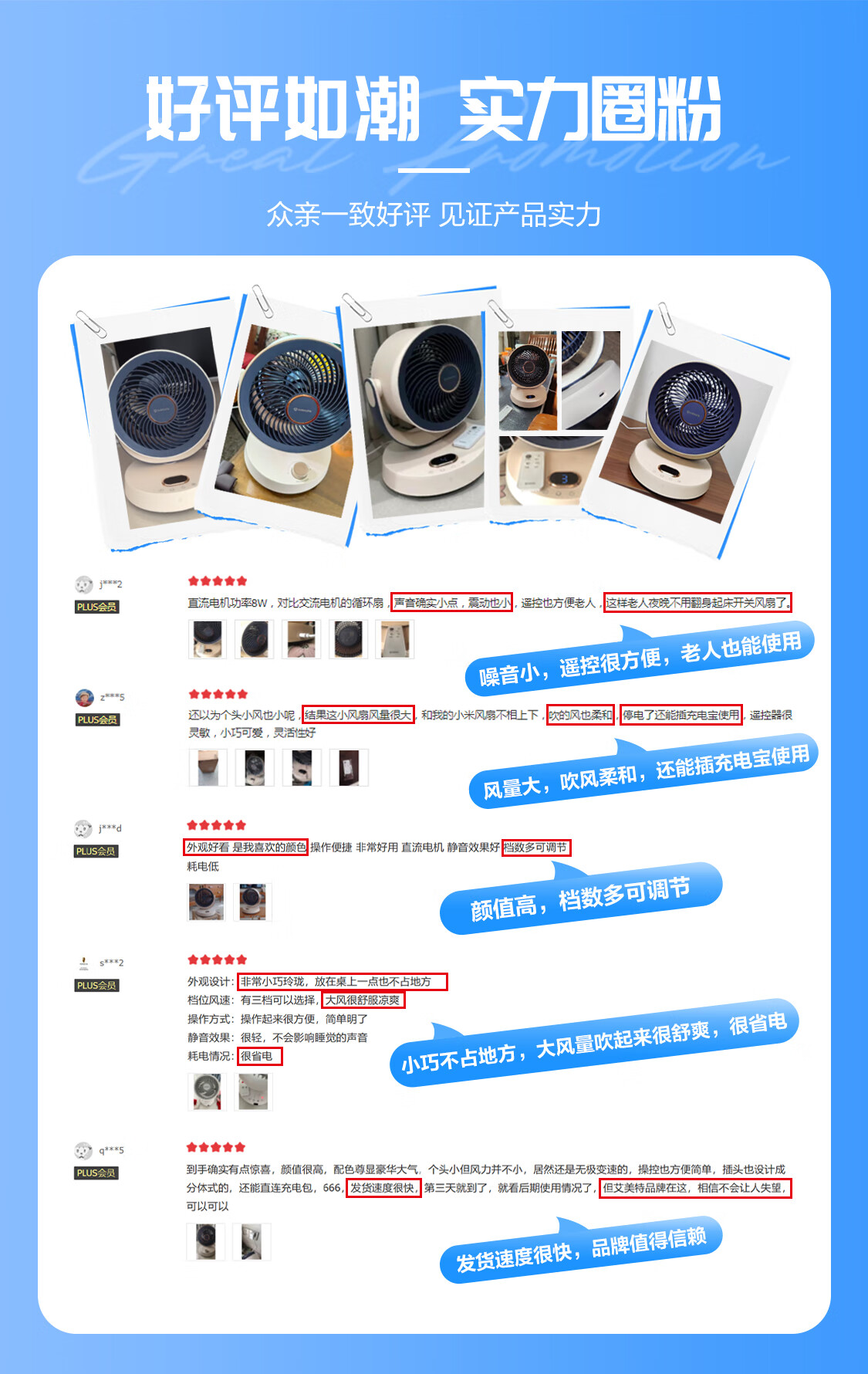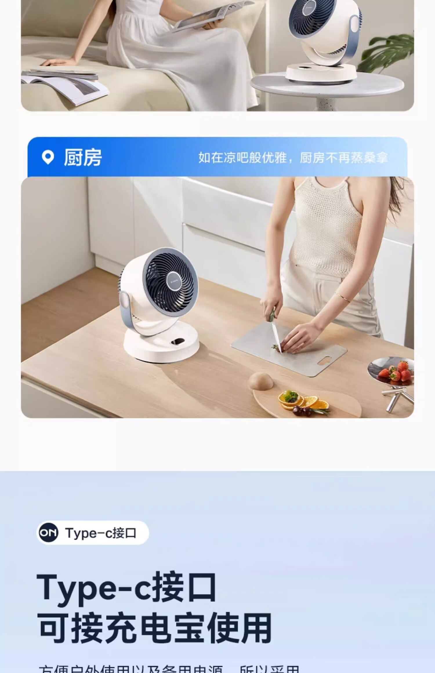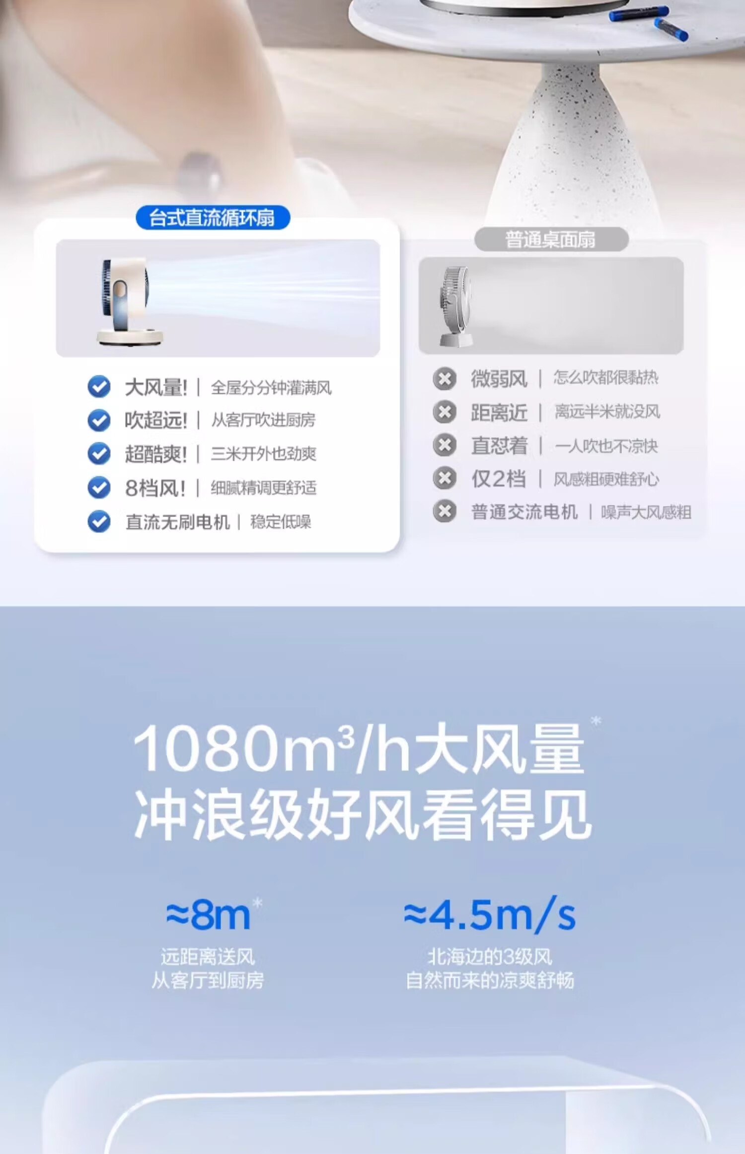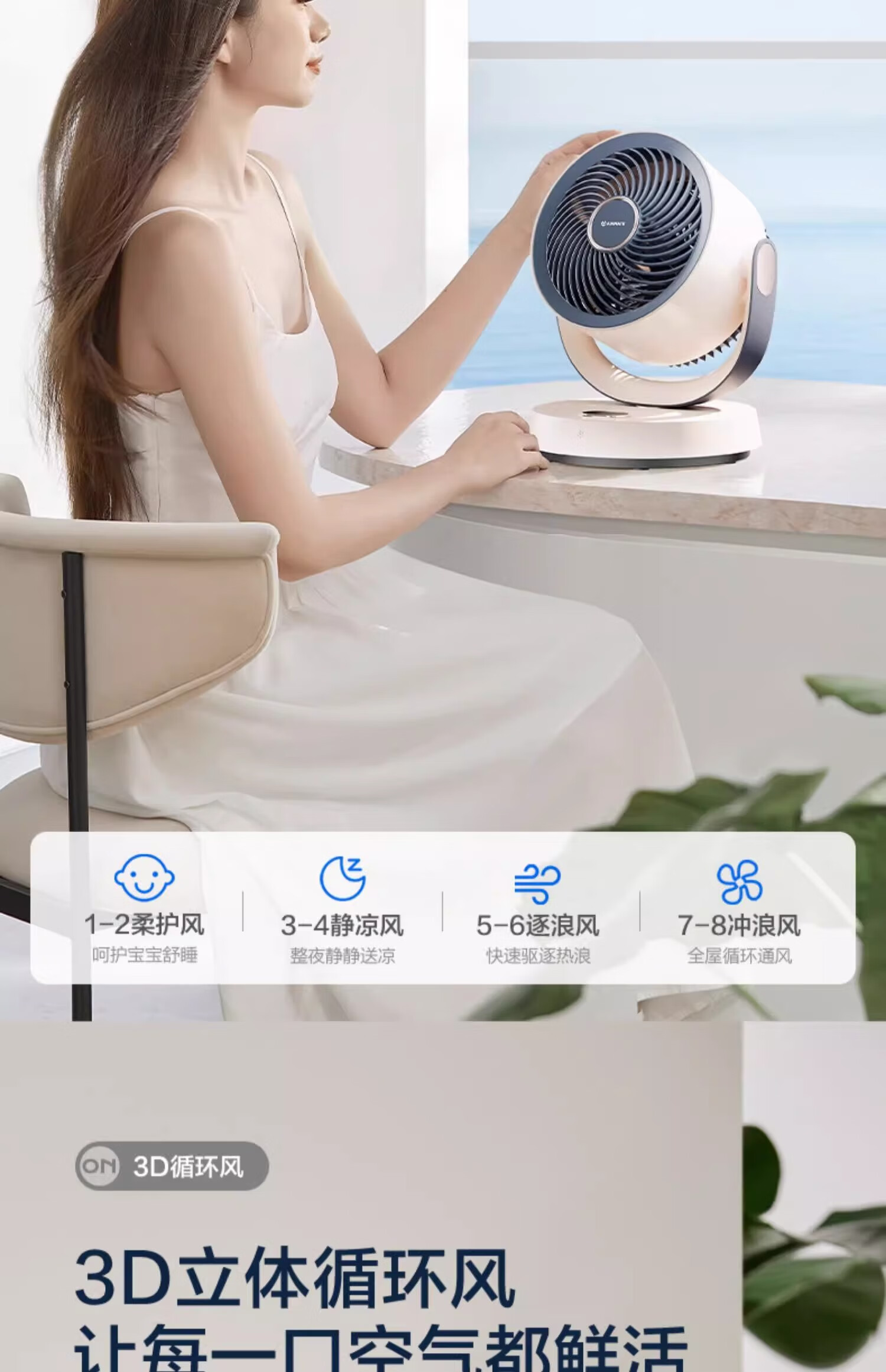 艾美特(AIRMATE)【热销爆款】】空气循环扇桌面电风扇台式家用办公室宿舍床上小直流节能享轻音插电充户外露营风扇 旋钮款无极调速丨可接充电宝丨8档直流降噪