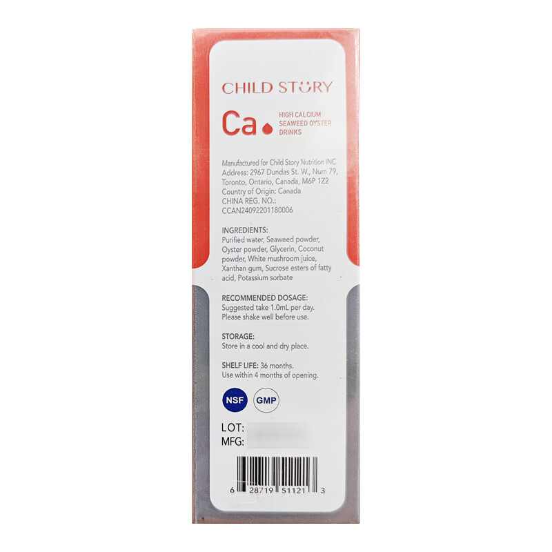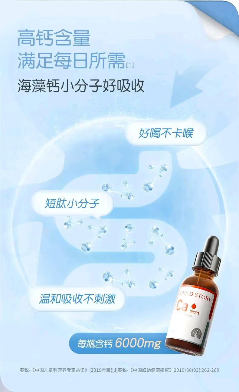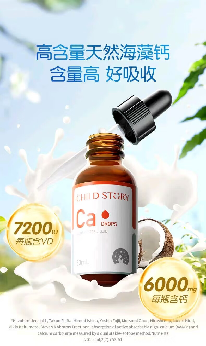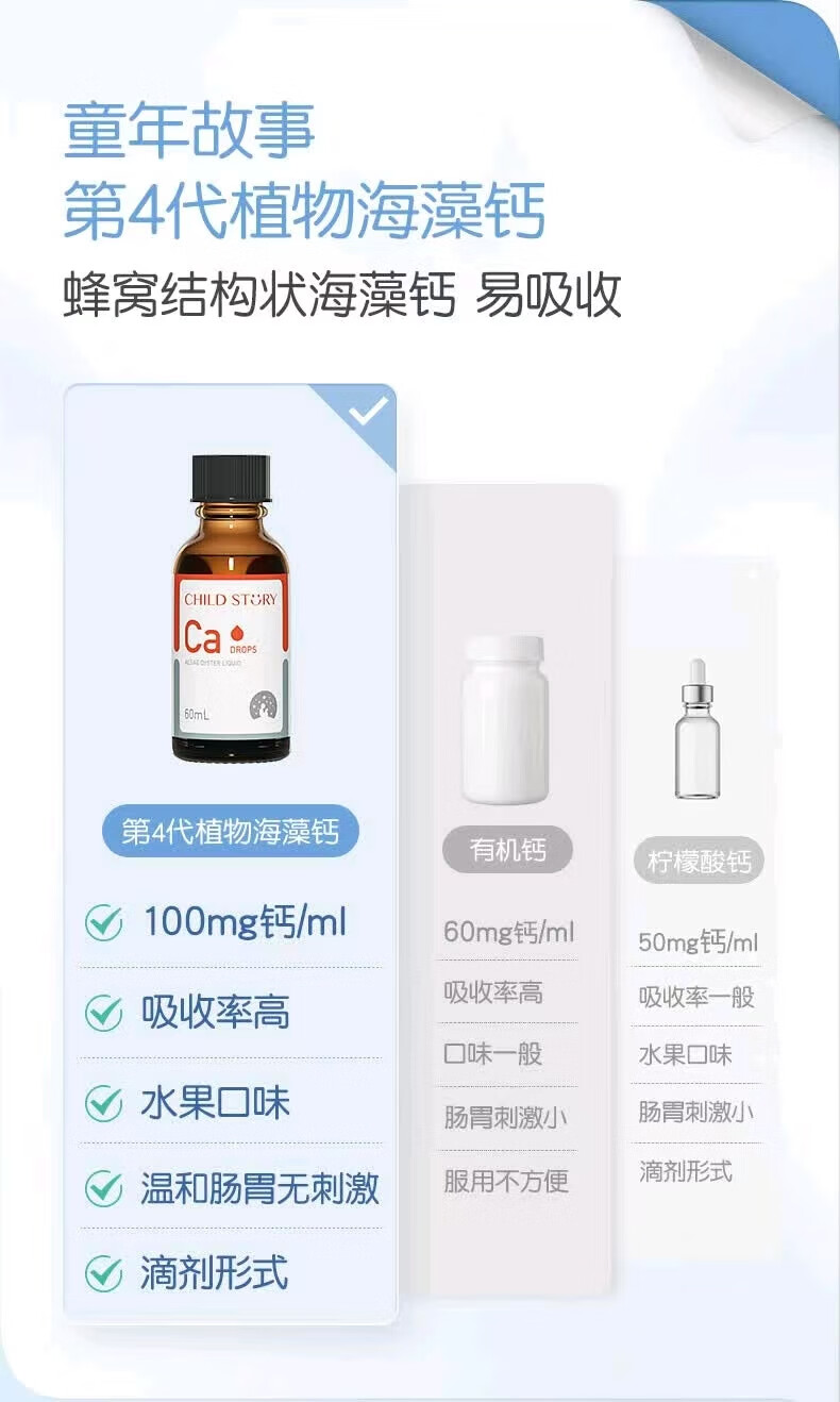 童年故事海藻牡蛎饮料60ml/瓶 宝宝钙儿童液体海藻牡蛎钙滴剂加拿大进口 1盒装【顺丰包邮】 海藻钙60ml/瓶-每毫升含100mg钙