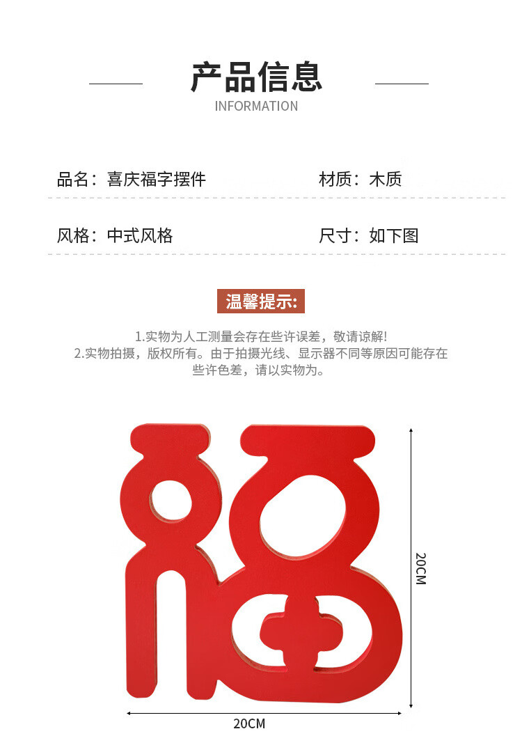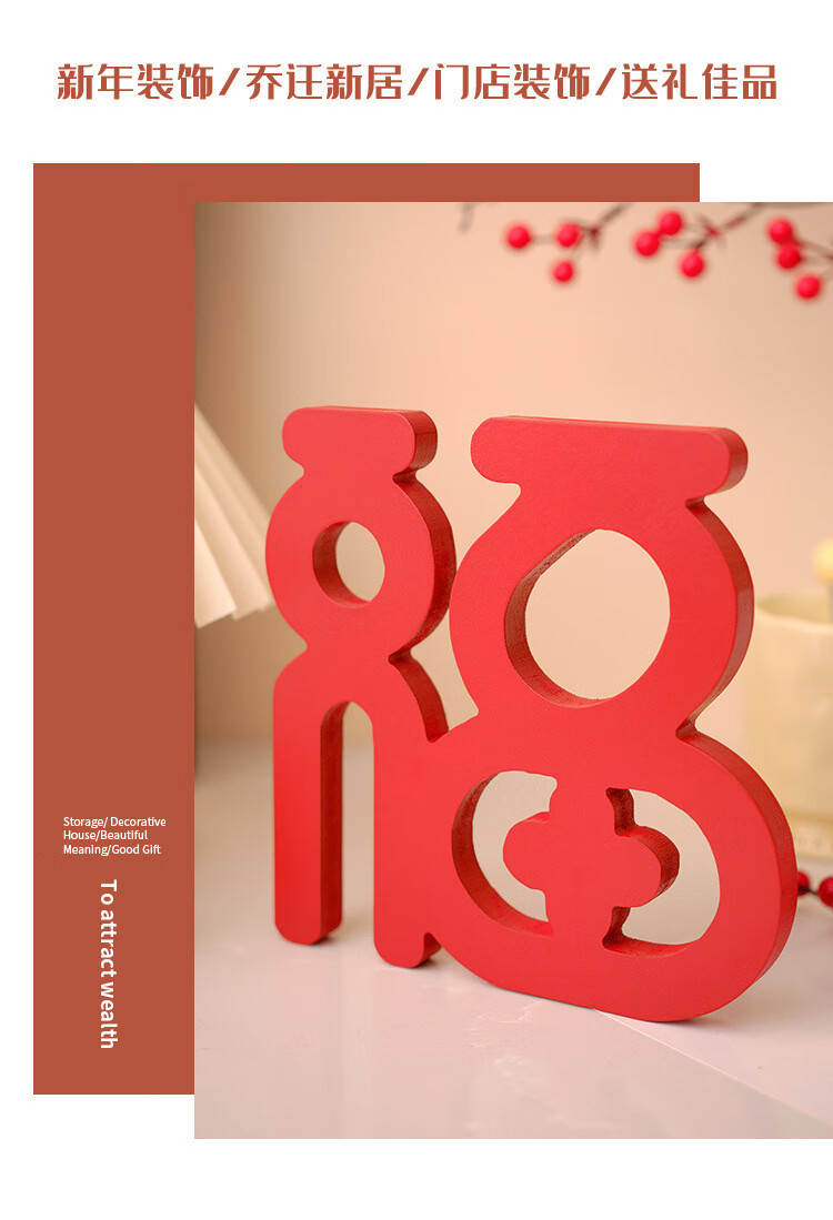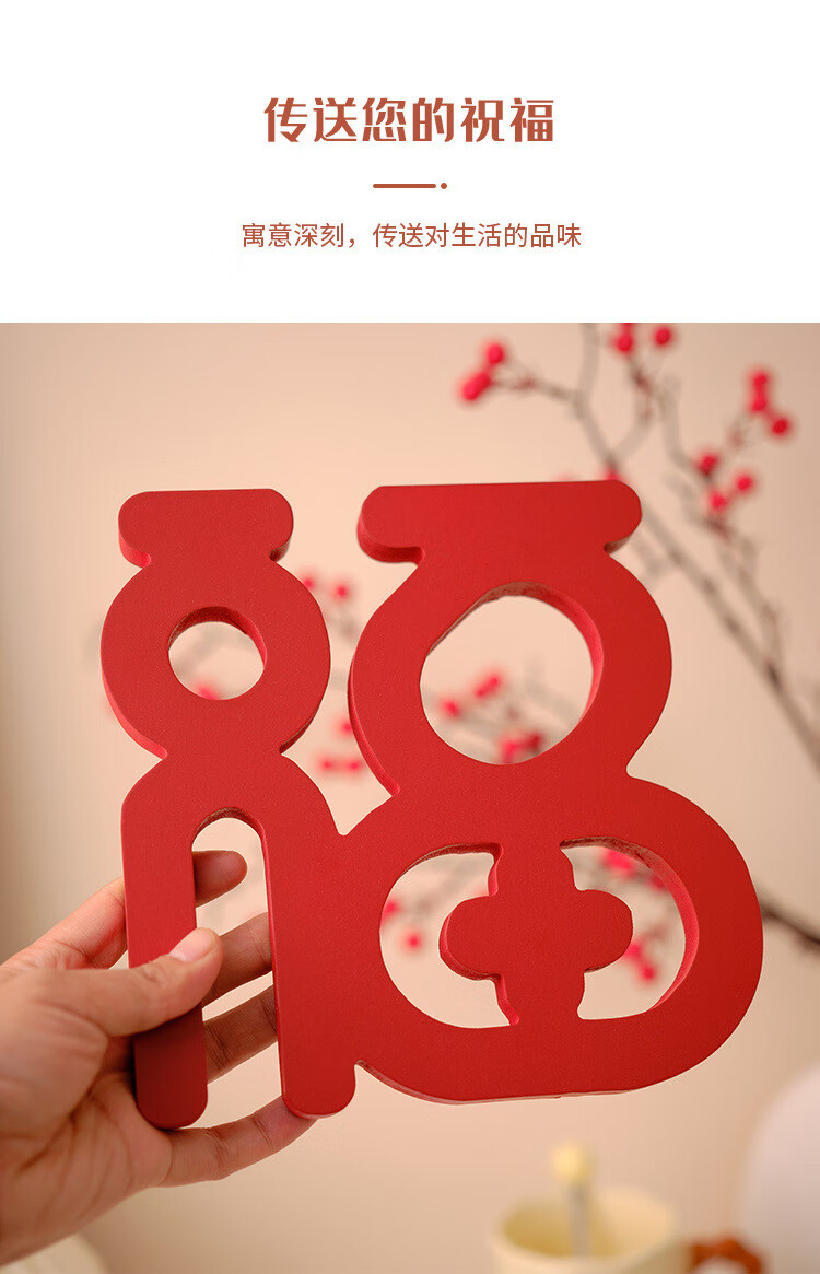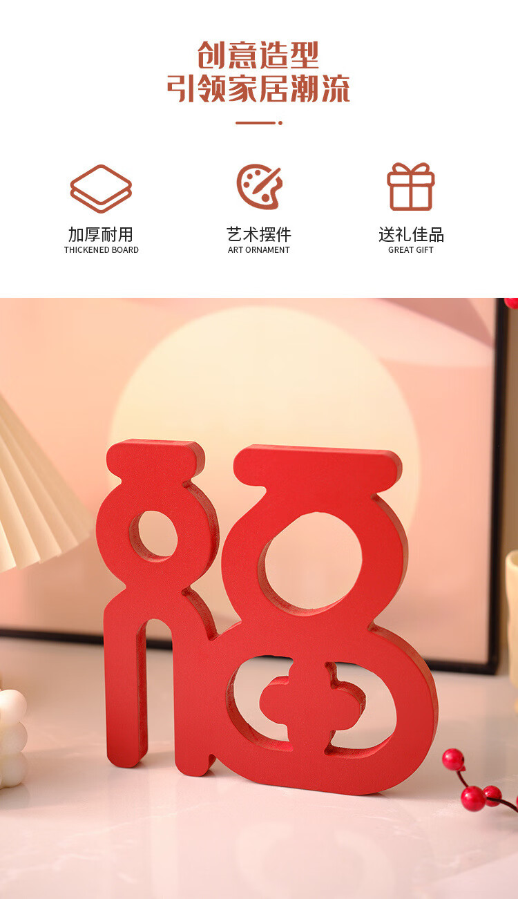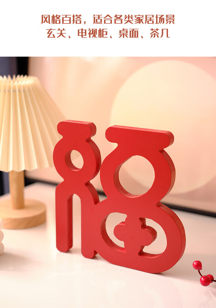 【精选直发】新年桌面电视柜摆件家居饰品客厅装饰乔迁新居礼品红 鸿福当头福字摆件两个