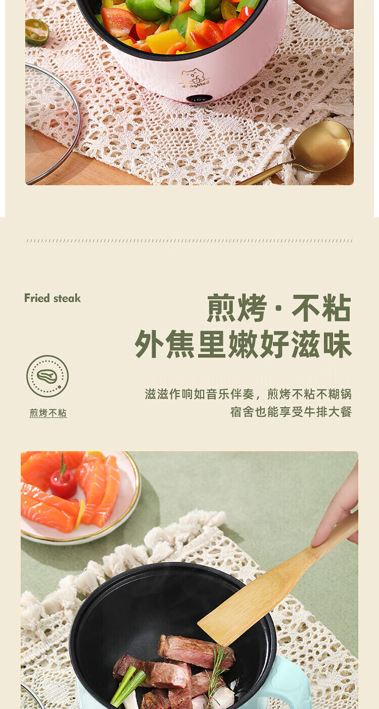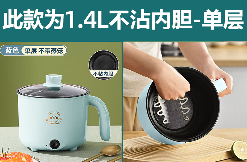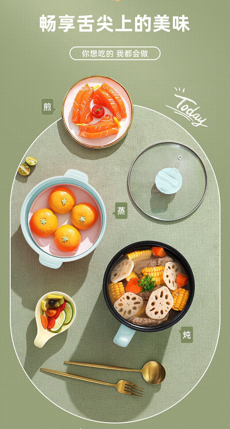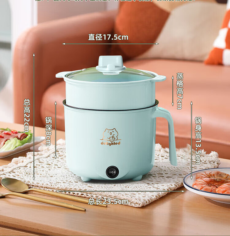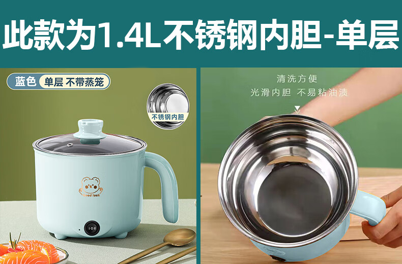 全自动蒸煮一体小电煮锅宿舍学生锅家用电炒锅电饭煲电热火锅 【万单】不锈钢内胆没蒸笼【0.65m电源线】