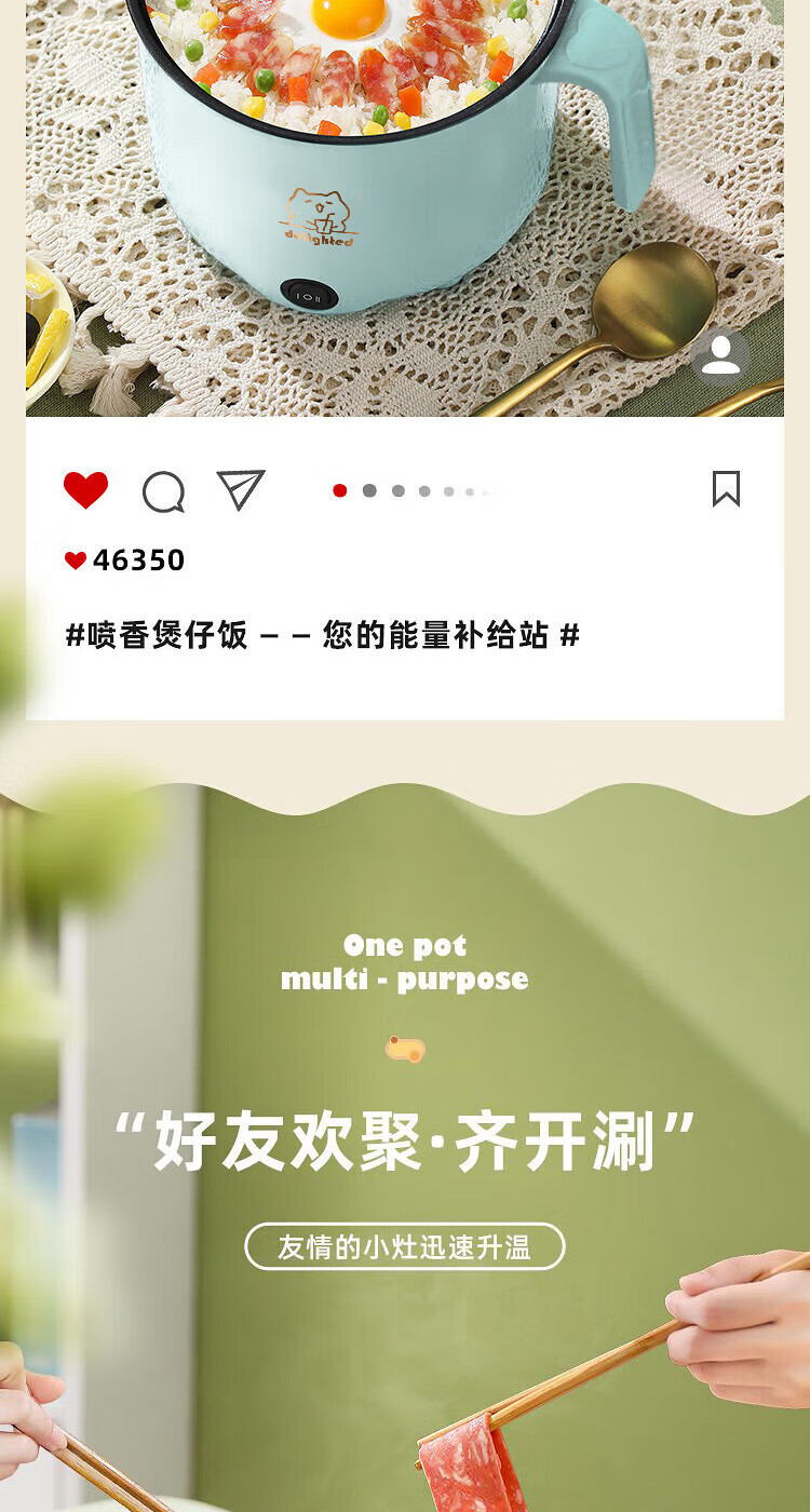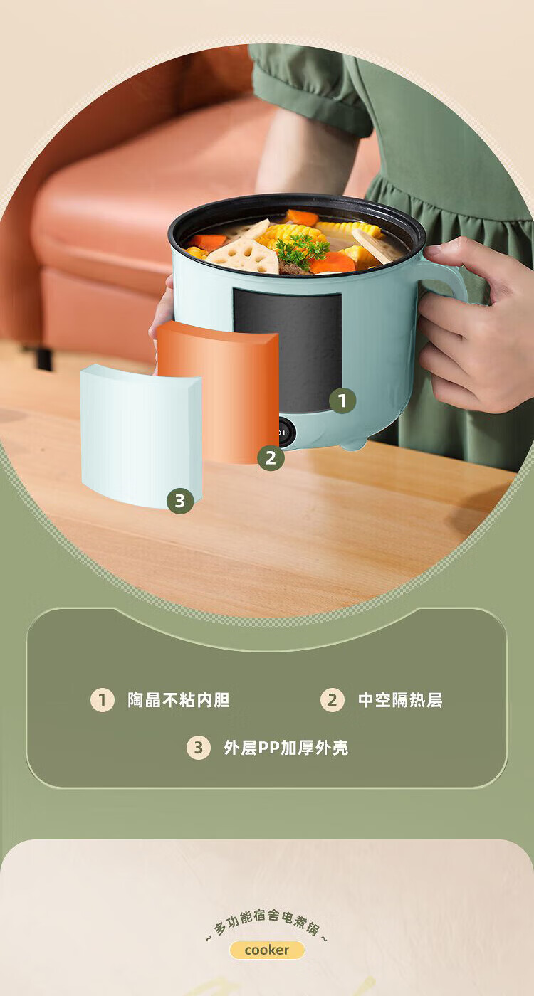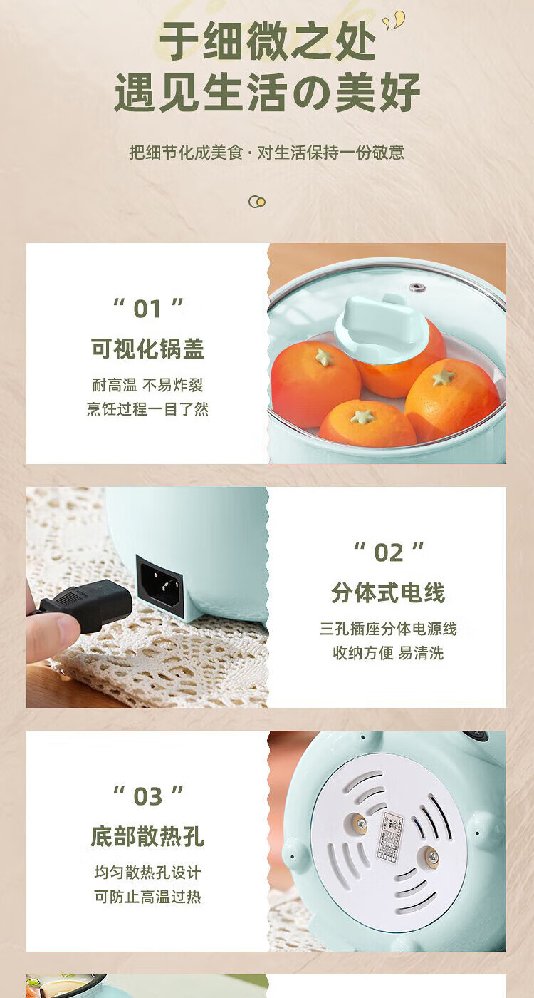 全自动蒸煮一体小电煮锅宿舍学生锅家用电炒锅电饭煲电热火锅 【万单】不锈钢内胆没蒸笼【0.65m电源线】