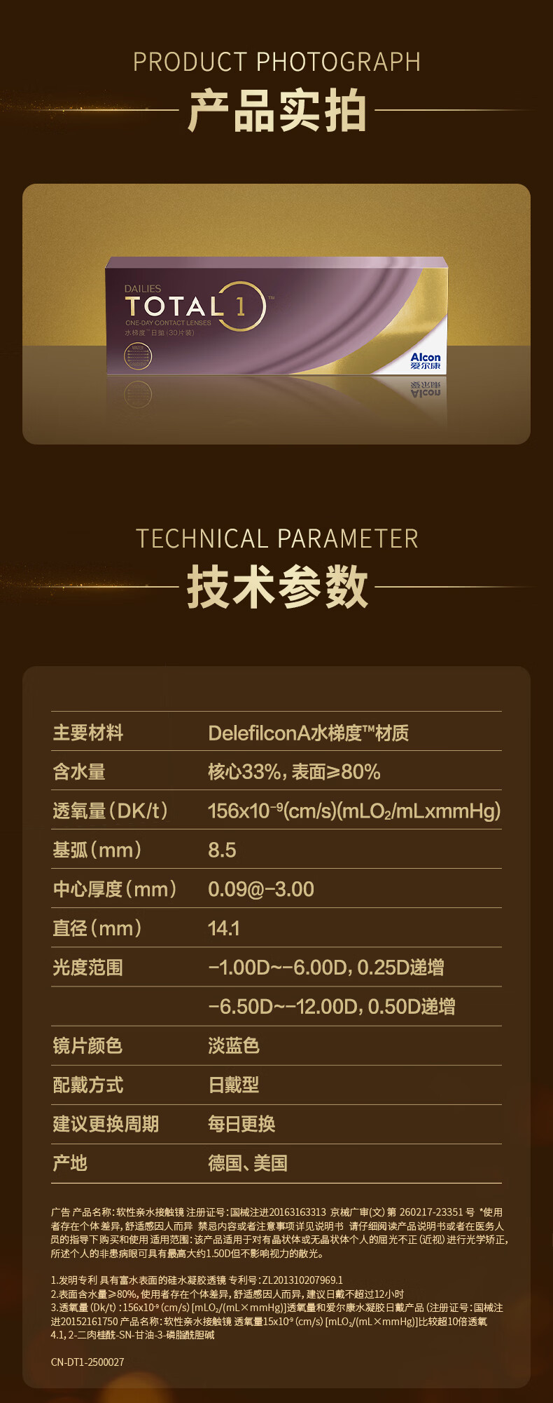 爱尔康(Alcon)视康水梯度天天抛近视隐形眼镜水润保湿透明日抛30片装 水梯度天天抛30片 1050度