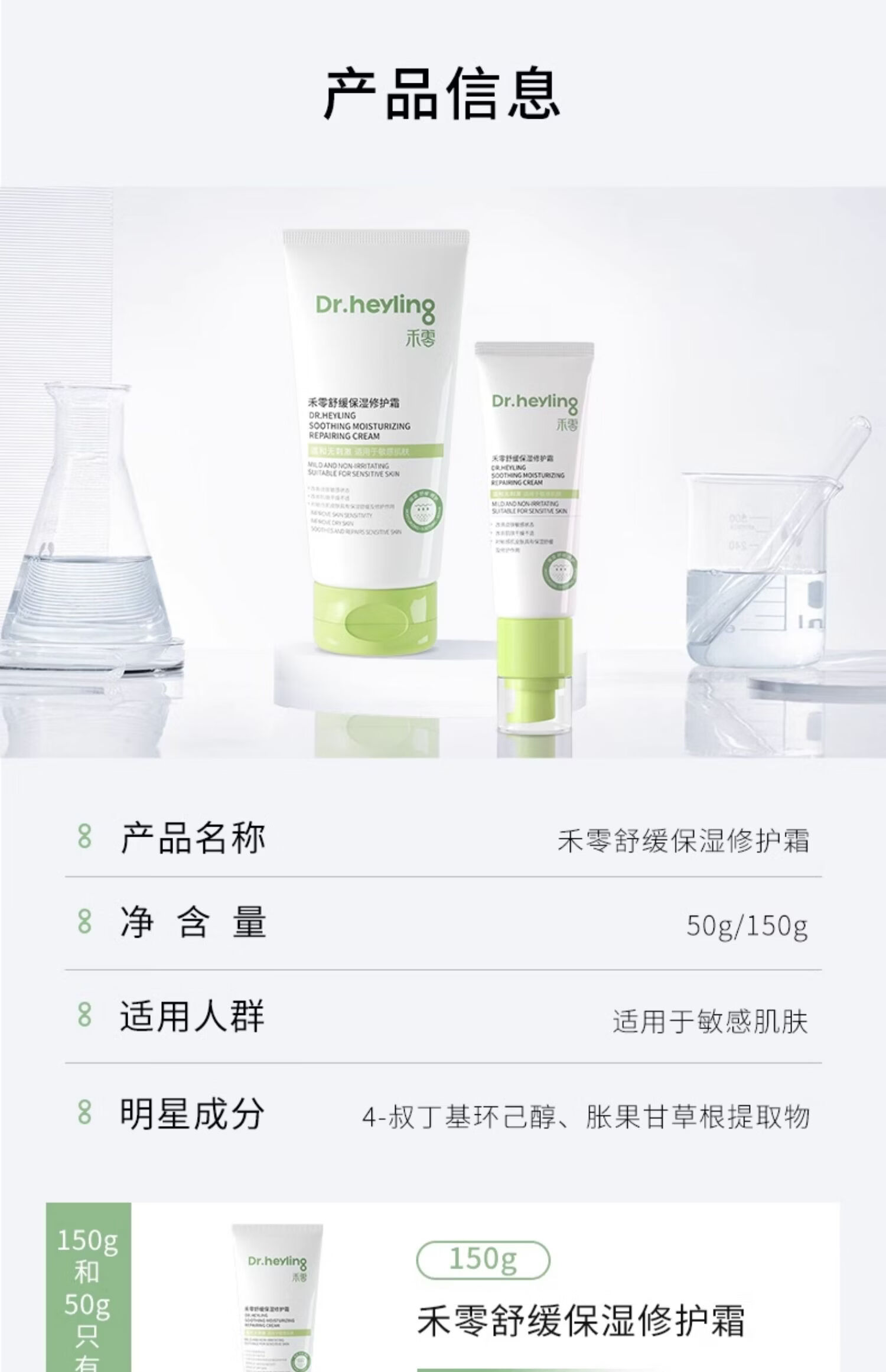 禾零【小金盾版】禾零舒缓修护保湿霜长效保湿缓解泛红干痒敏感肌适用 150g