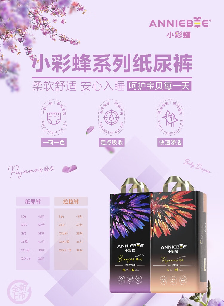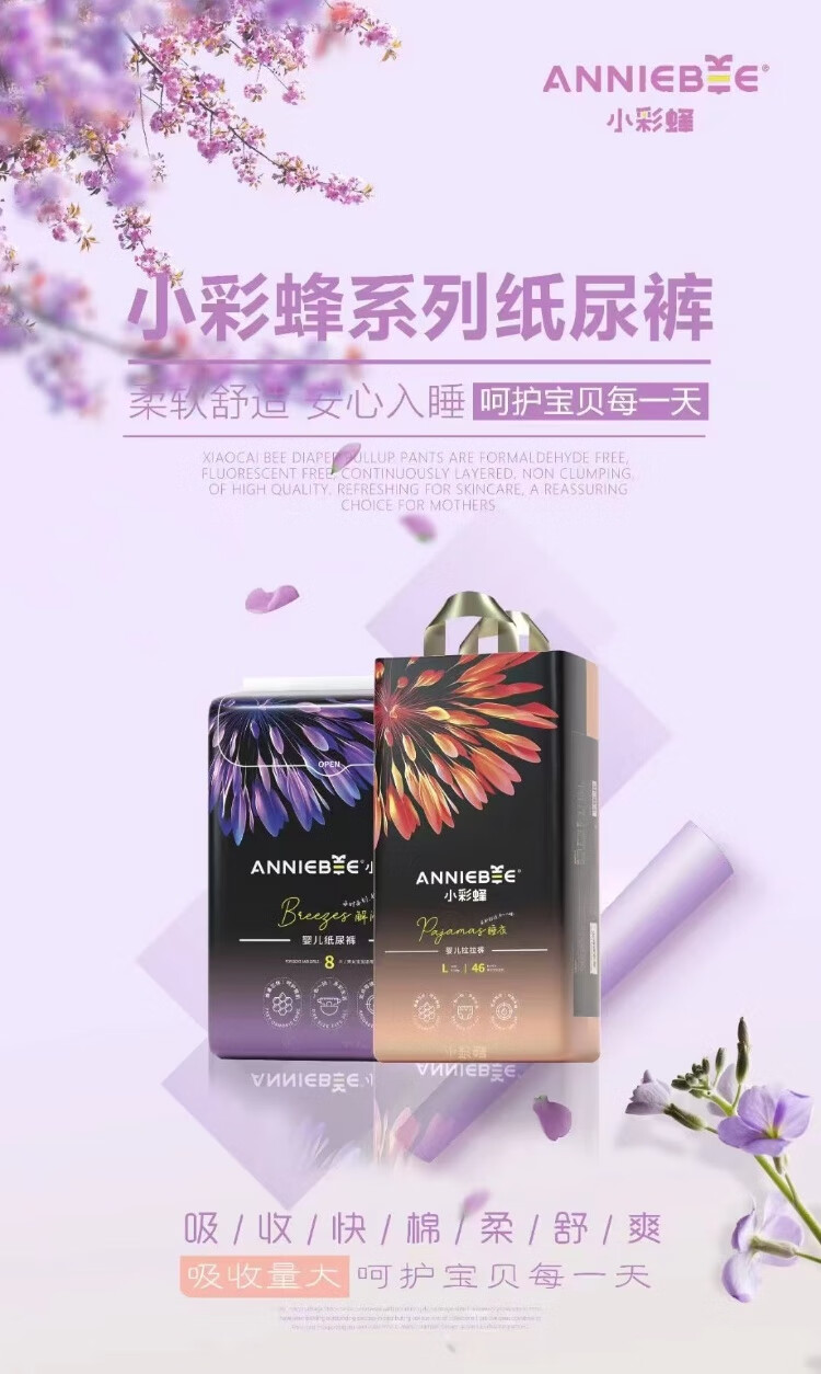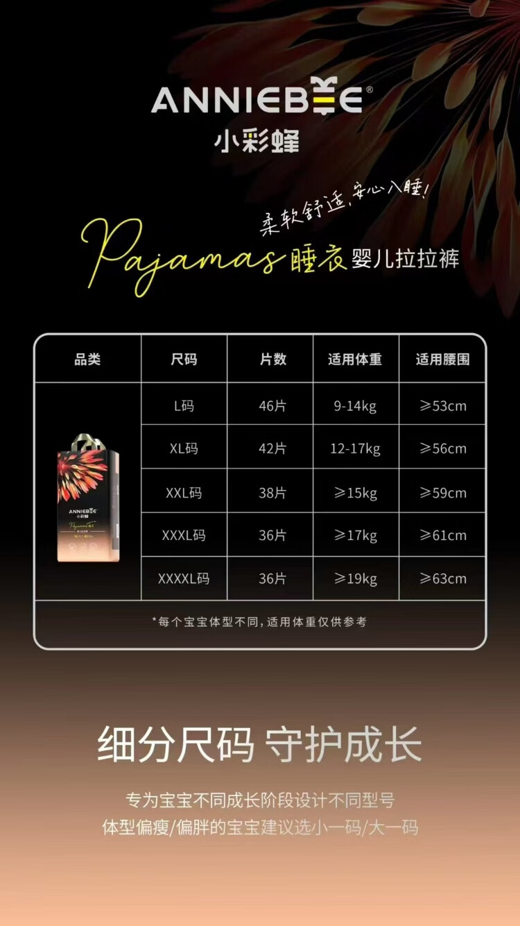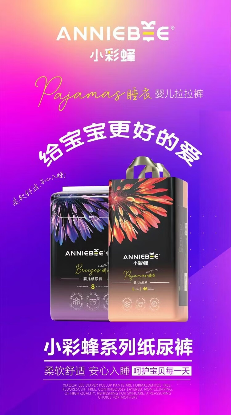 布本布小彩蜂纸尿裤拉拉裤满版印花时尚裤极薄柔软透气干爽一夜一片正品 小彩蜂拉拉裤XXXXL码36片 两包