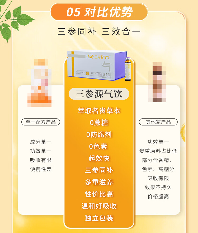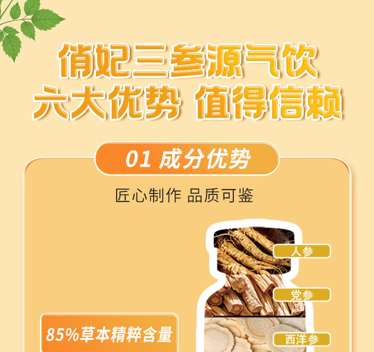 俏妃三参源气饮人参党参西洋参口服液补气血送朋友营养品滋补礼盒补品 20ml*21瓶