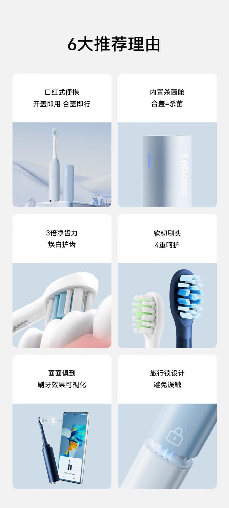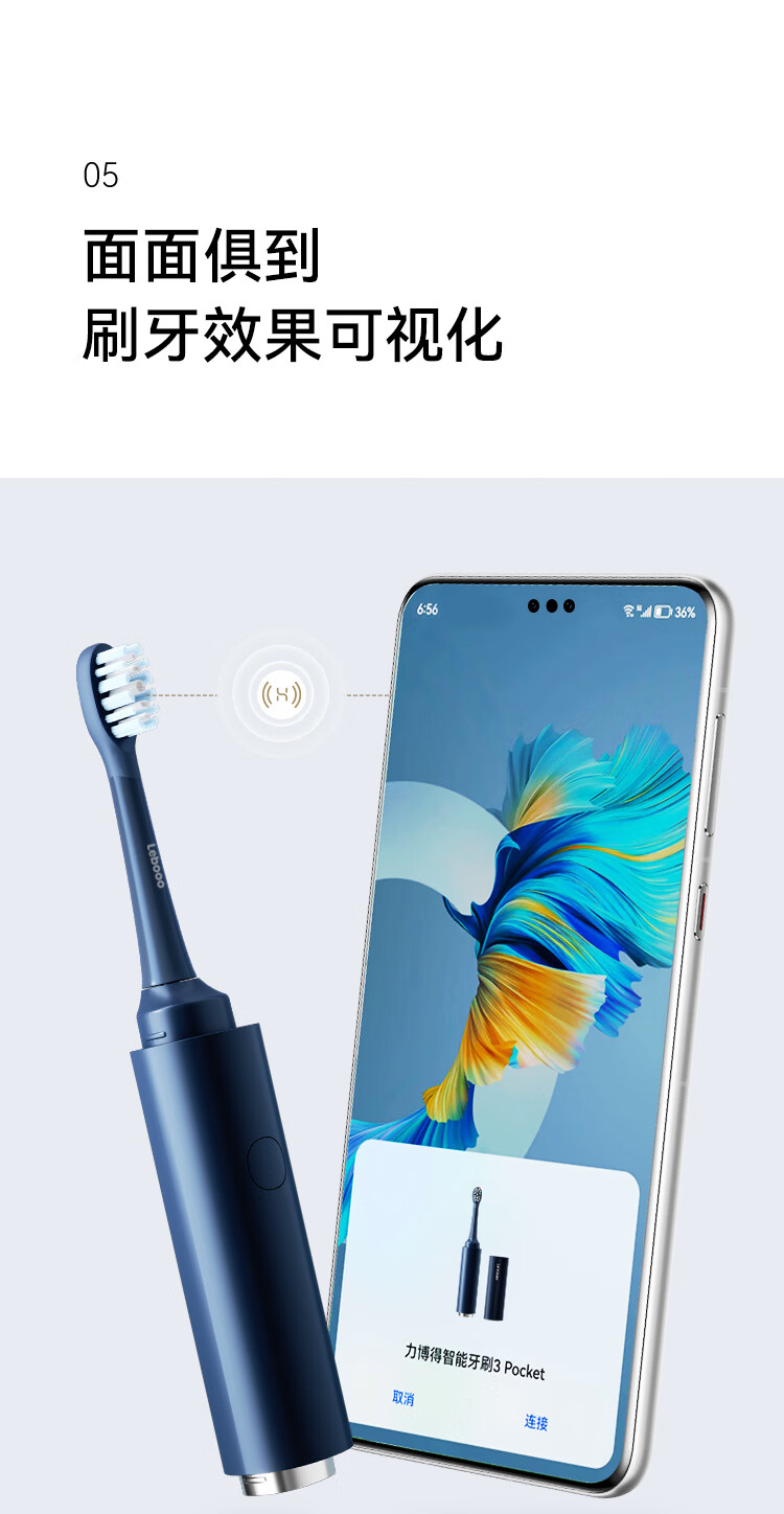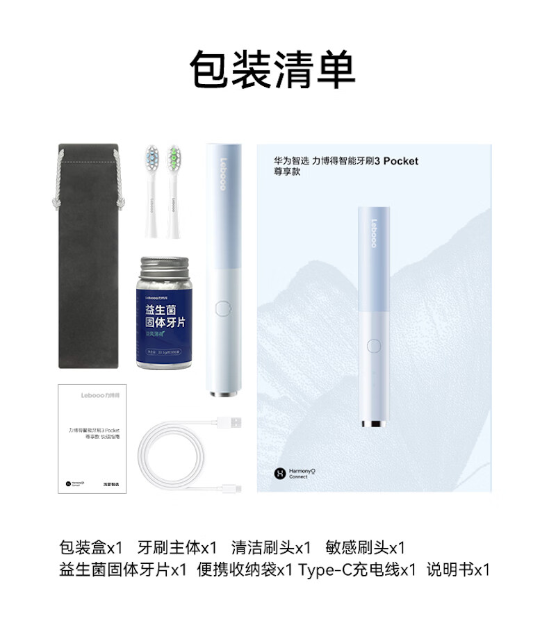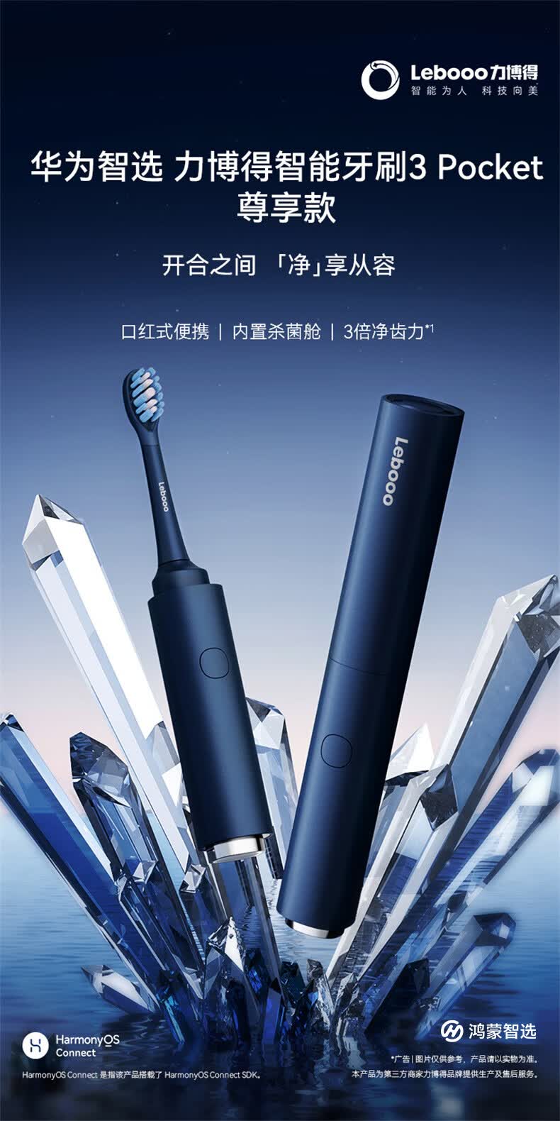 鸿蒙智选力博得智能牙刷3Pocket尊享款 电动牙刷成人便携口红牙刷消毒杀菌生日礼物蓝 支持华为智慧生活