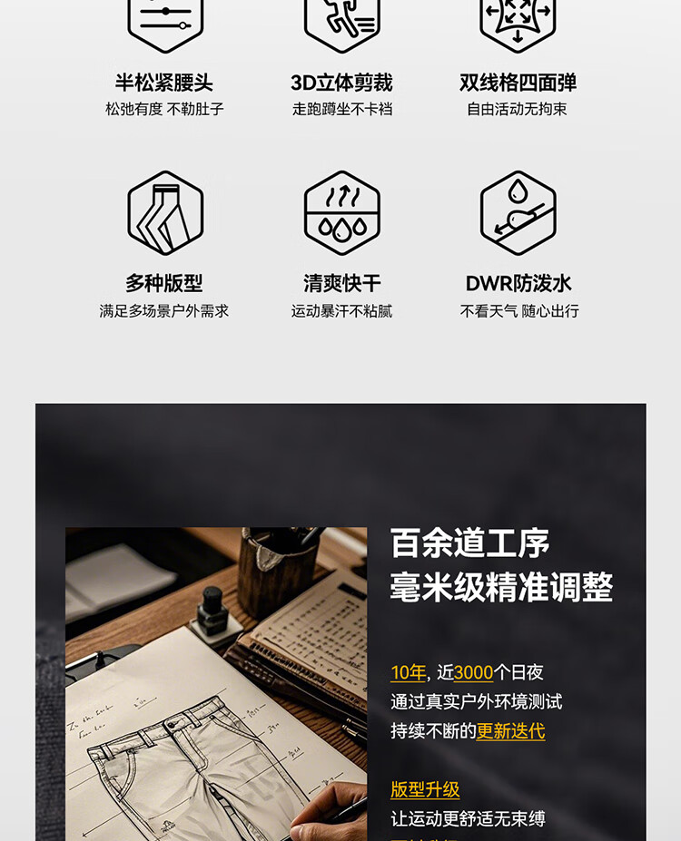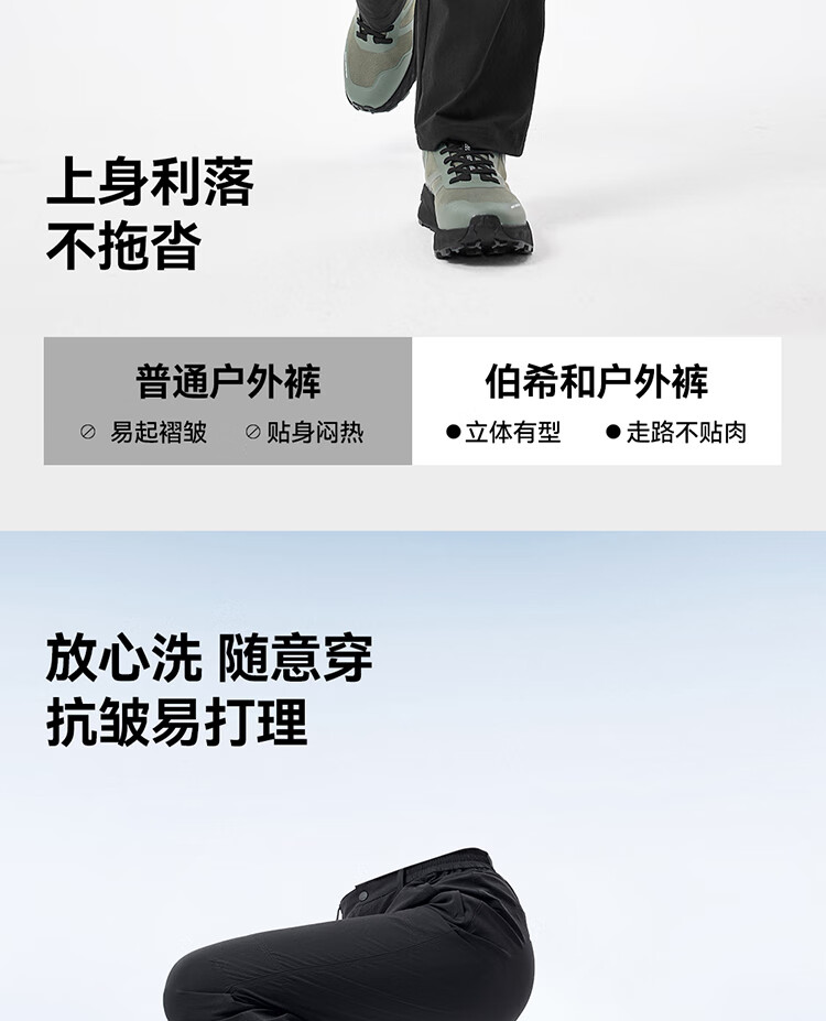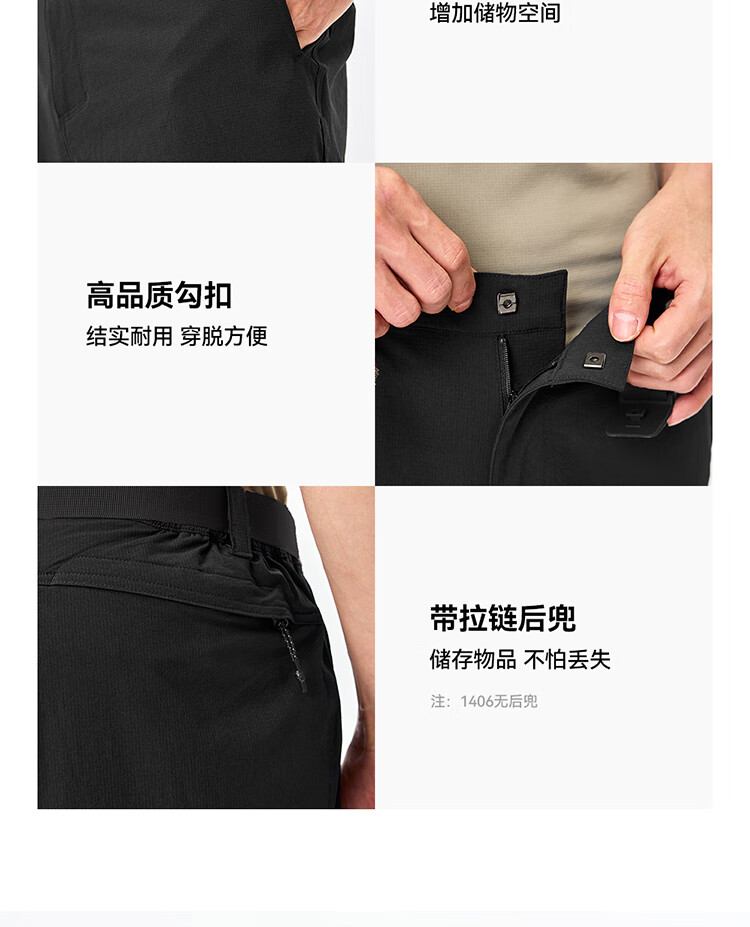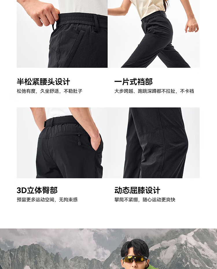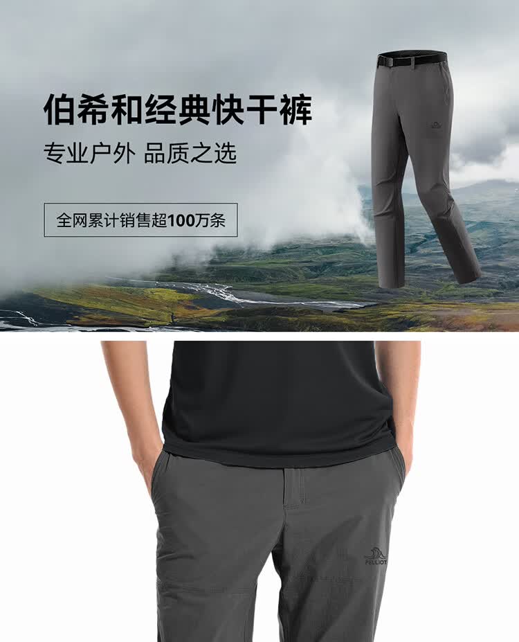伯希和(Pelliot)户外快干裤男士夏季运动休闲透气徒步登山长裤子116214065黑L