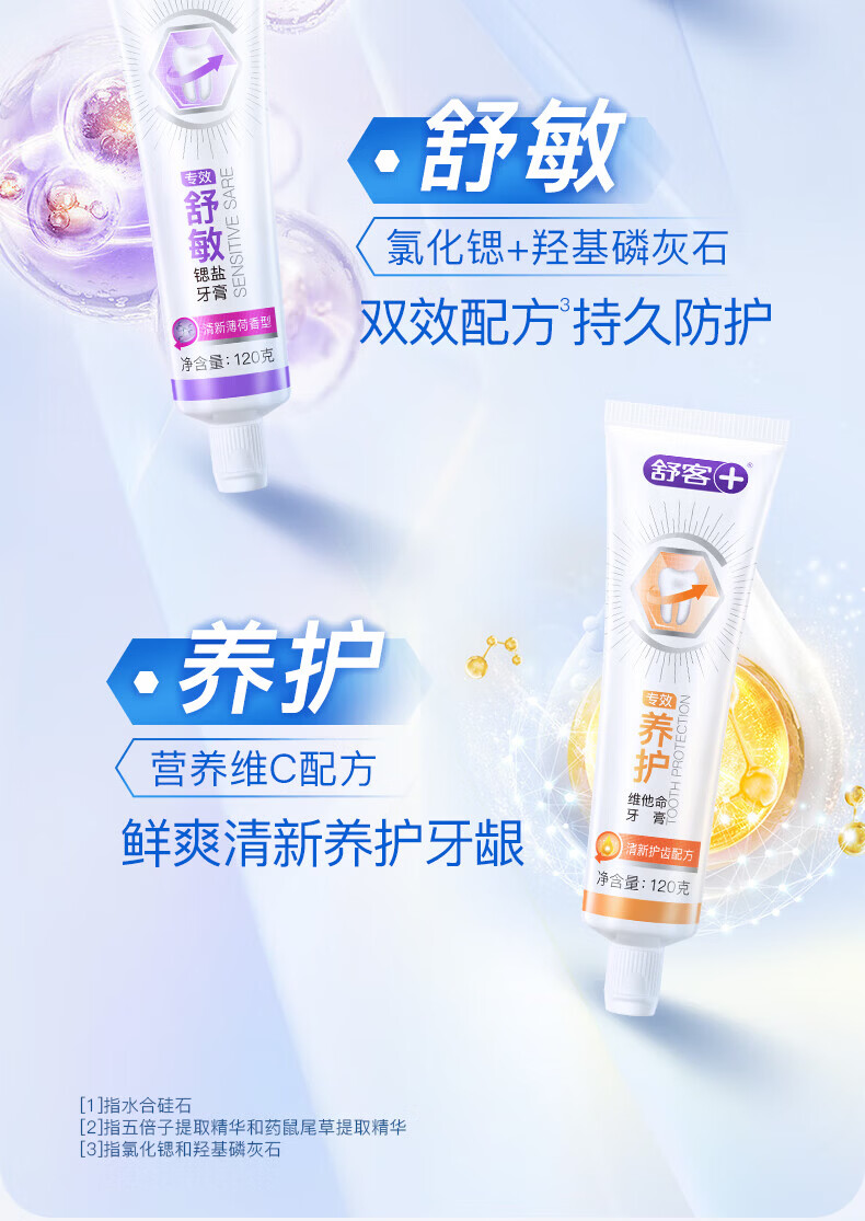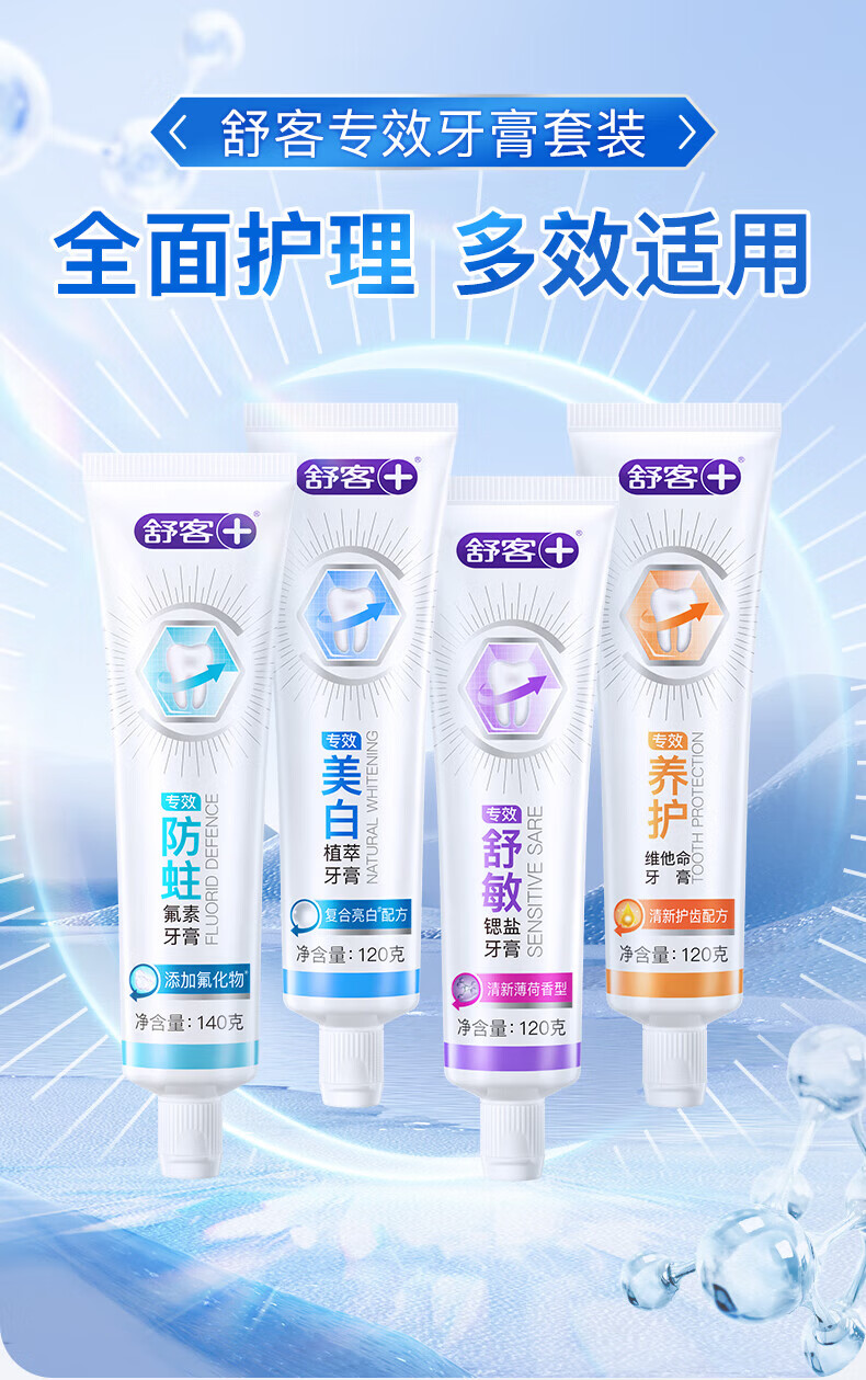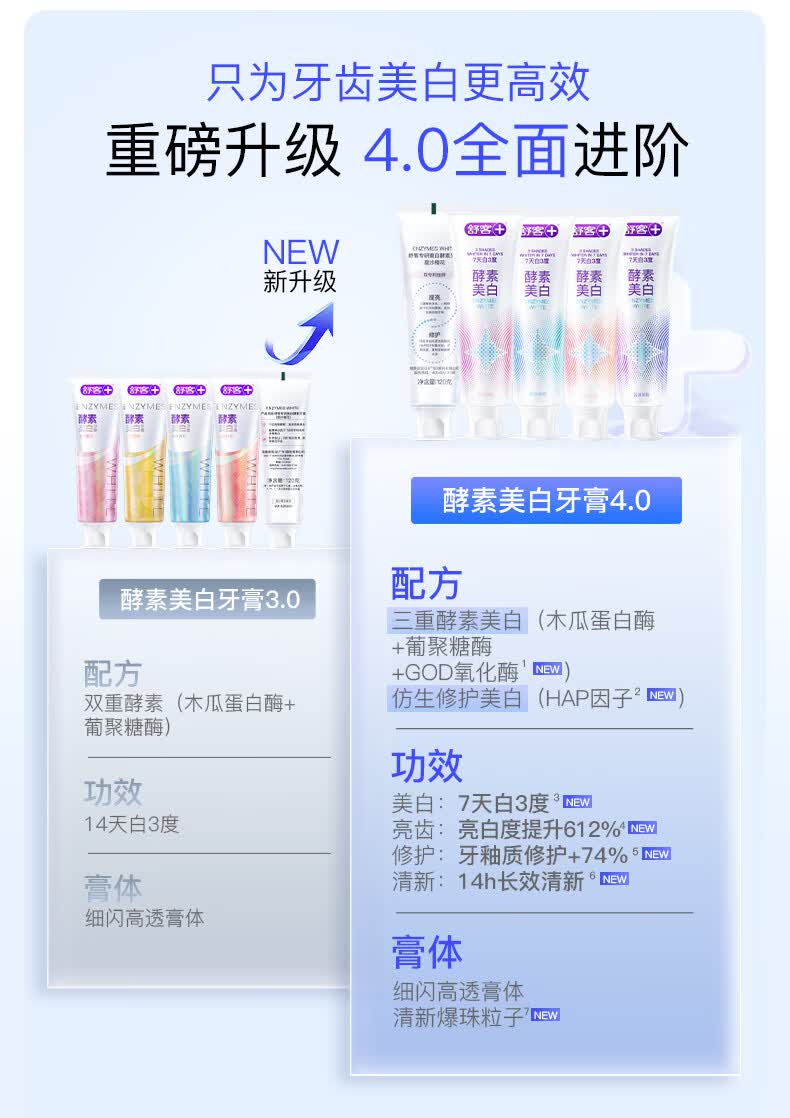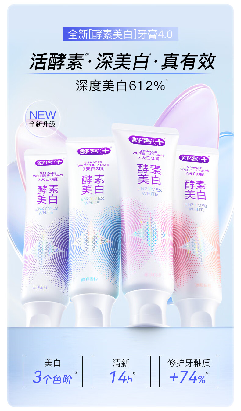 舒客爆款酵素牙膏去黄亮白清新口气护龈舒敏多种功效家庭装 多功效爆款酵素牙膏组合600g