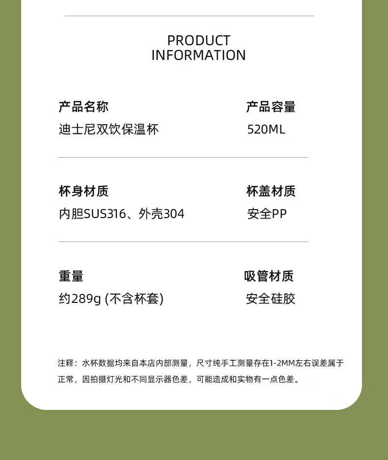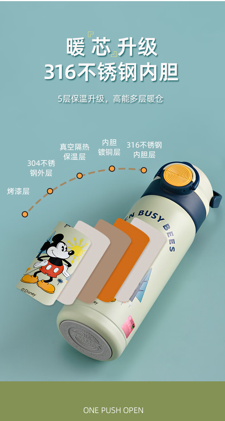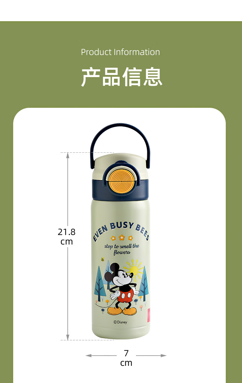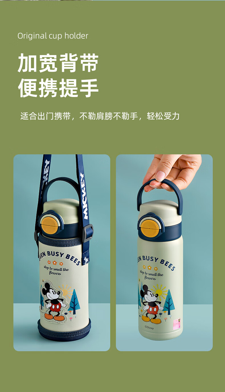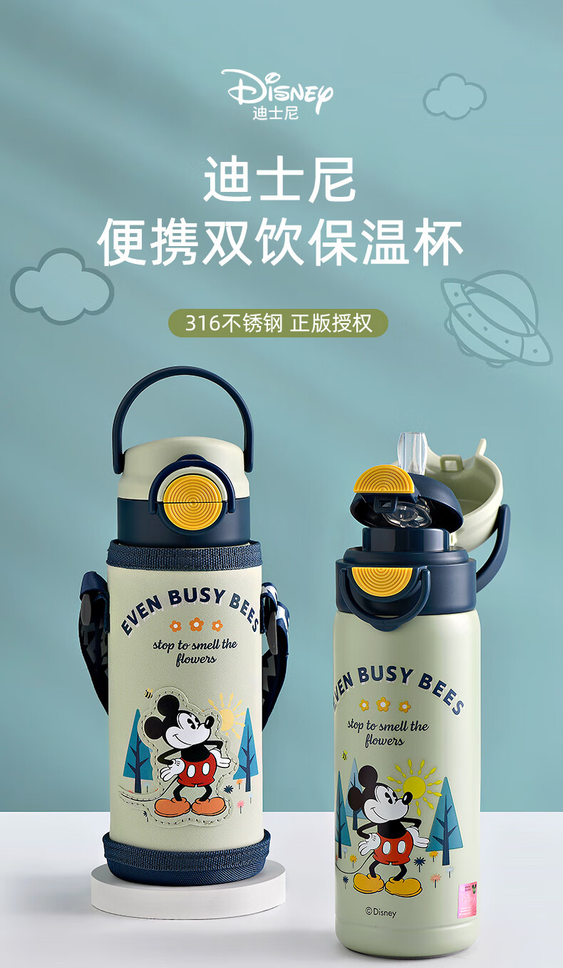 迪士尼水杯316不锈钢保温杯保冷杯520ML杯子双饮儿童水杯 6658米奇