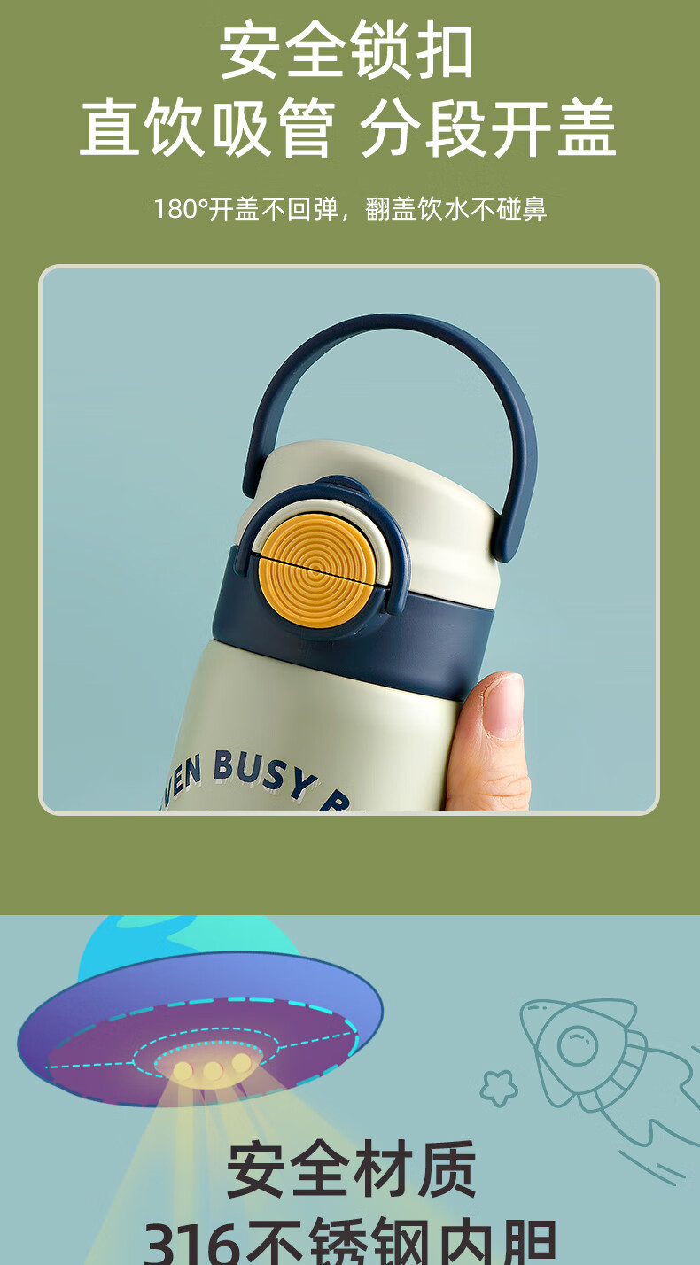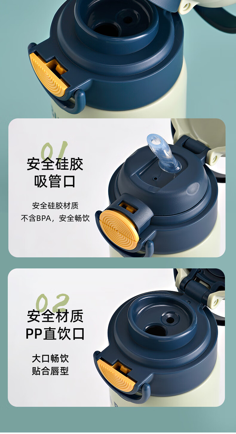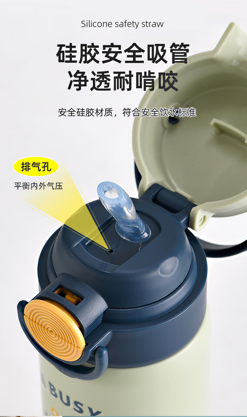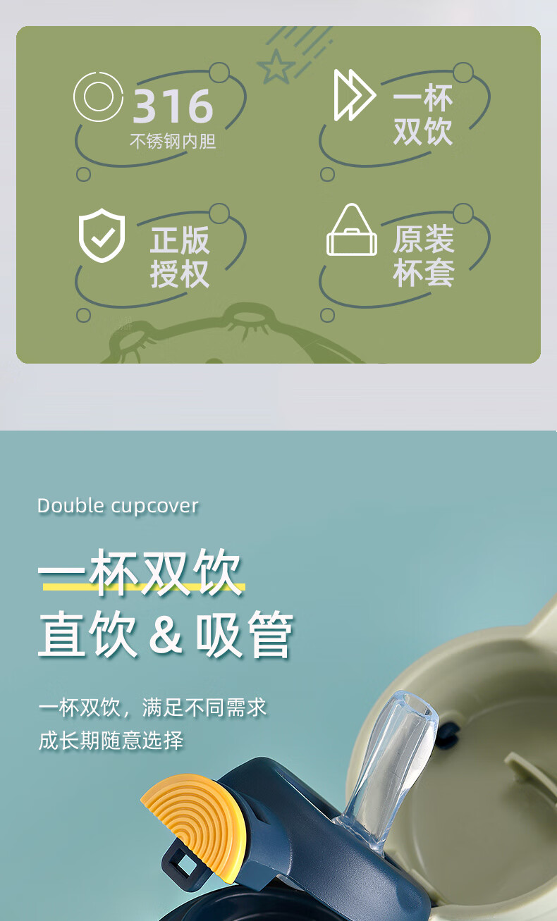 杯具熊(BEDDYBEAR)开口笑双饮儿童保温杯吸管水杯316钢大容量保温壶杯600ML气势亚刻