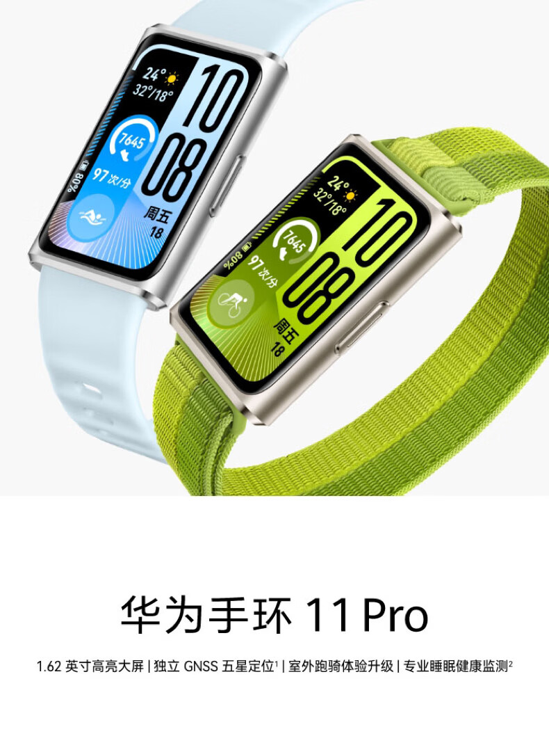 华为手环11ProNFC羽砂黑铝合金表壳1.62英寸高亮大屏刷新率达到60Hz独立GNSS定位精准室外跑骑体验升级