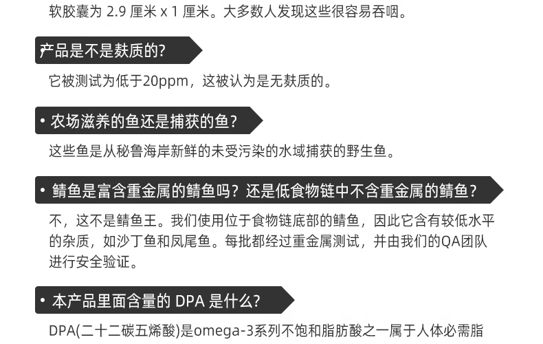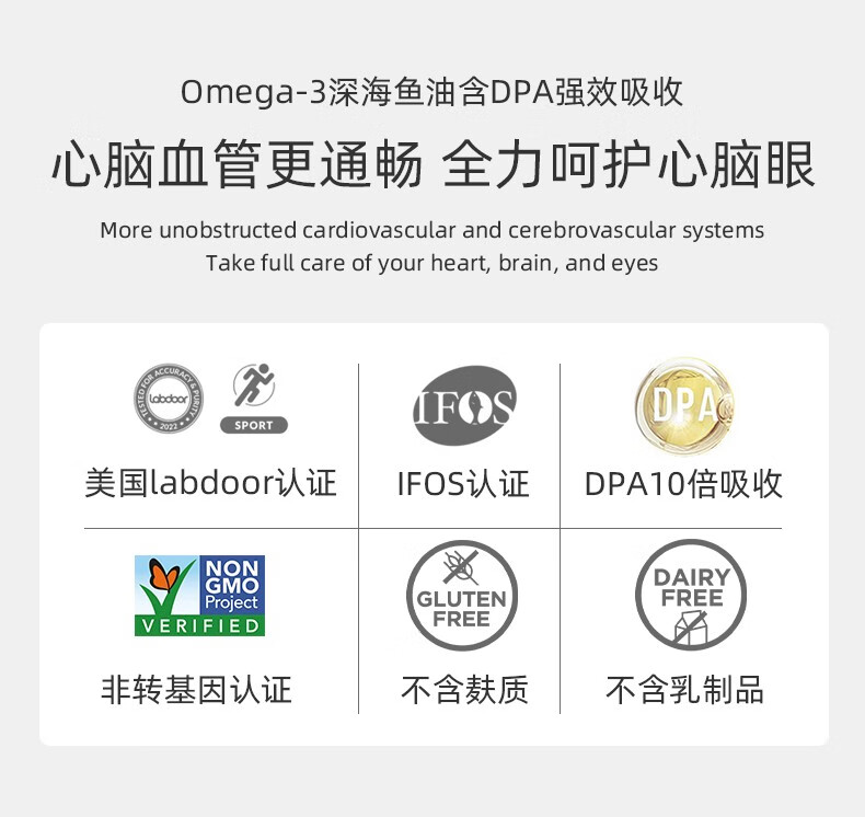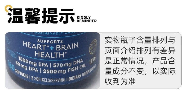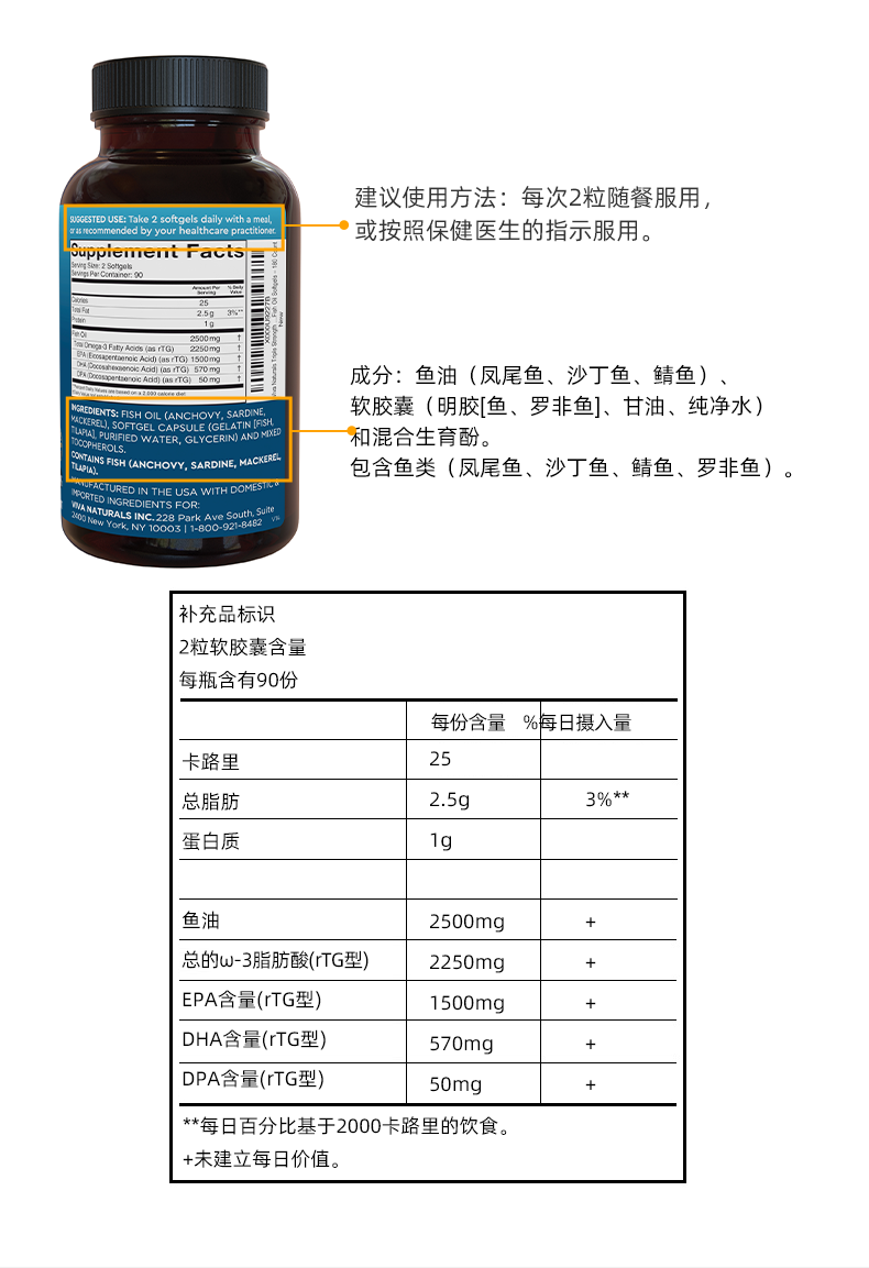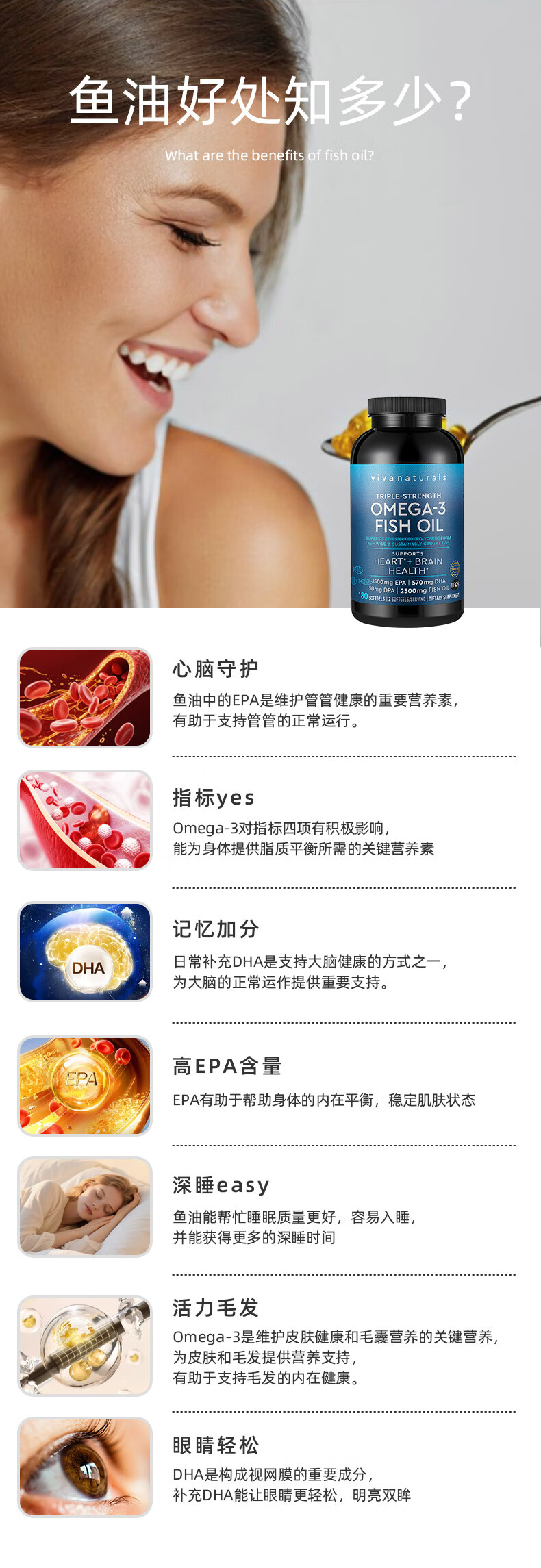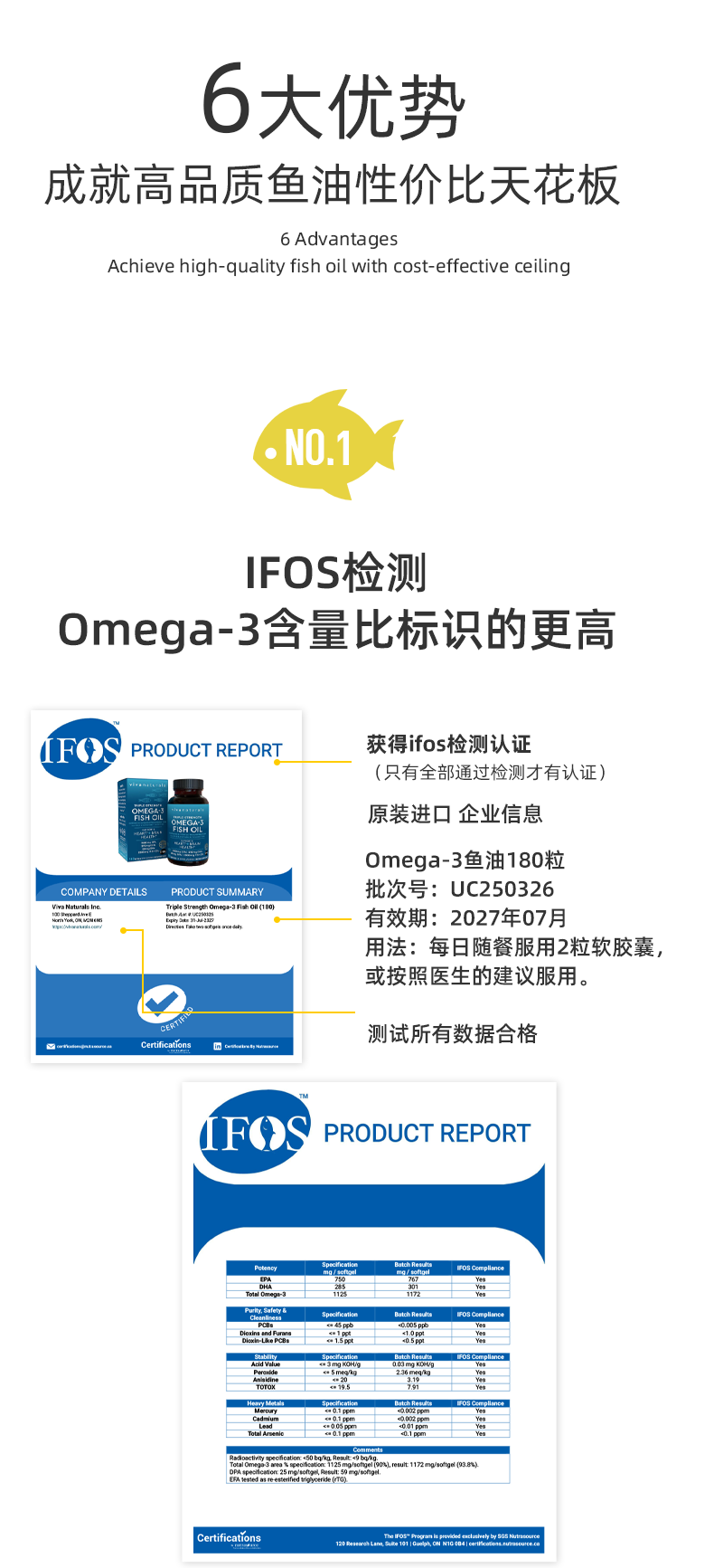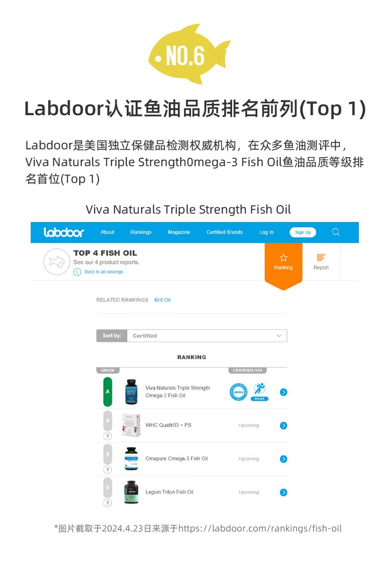 Viva Naturals美国进口高纯度rTG结构深海鱼油DPA天然omega3欧米伽3软胶囊180粒