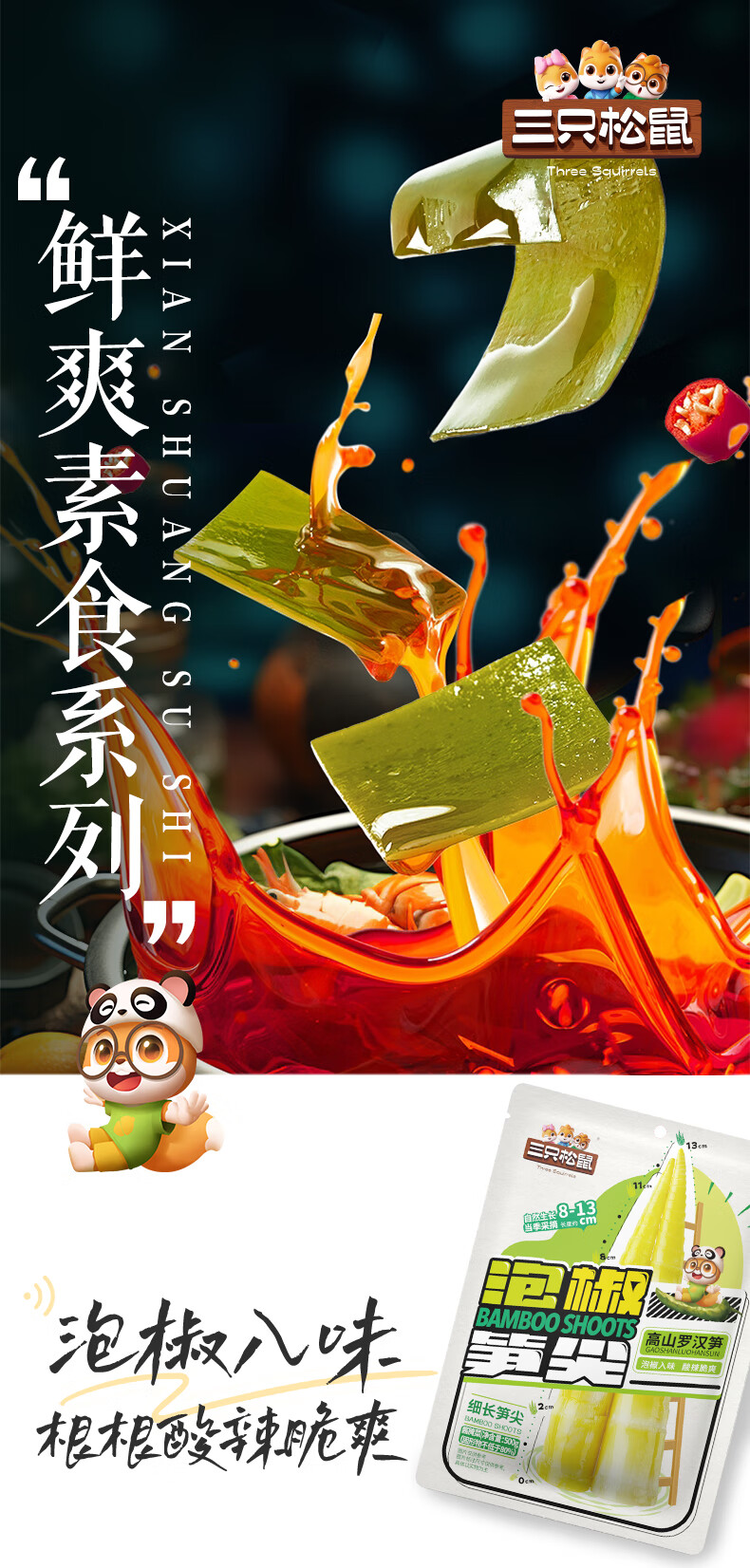 三只松鼠泡椒笋尖500g 即食鲜笋酸辣素食小吃食品休闲零食解馋卤味蔬菜