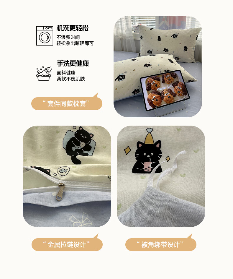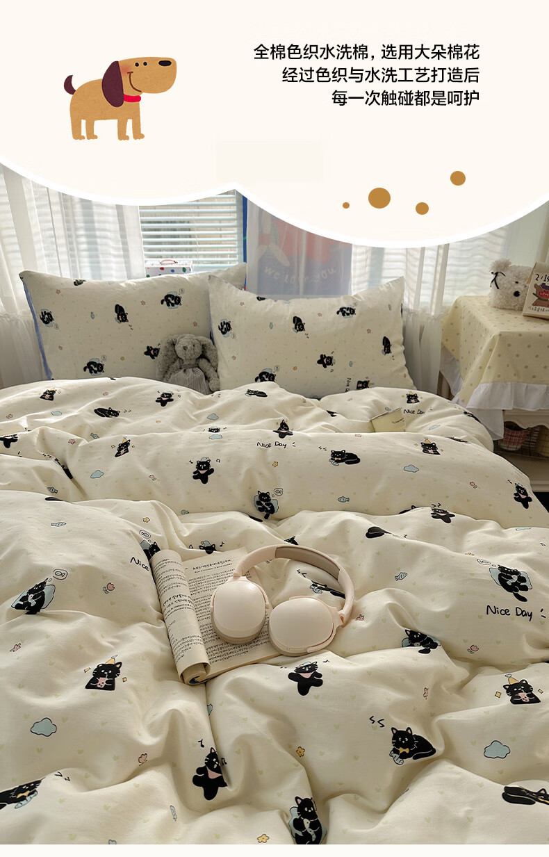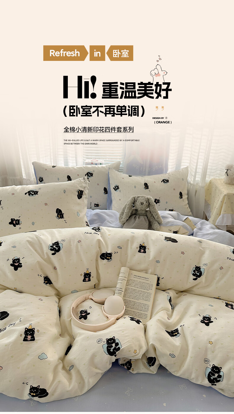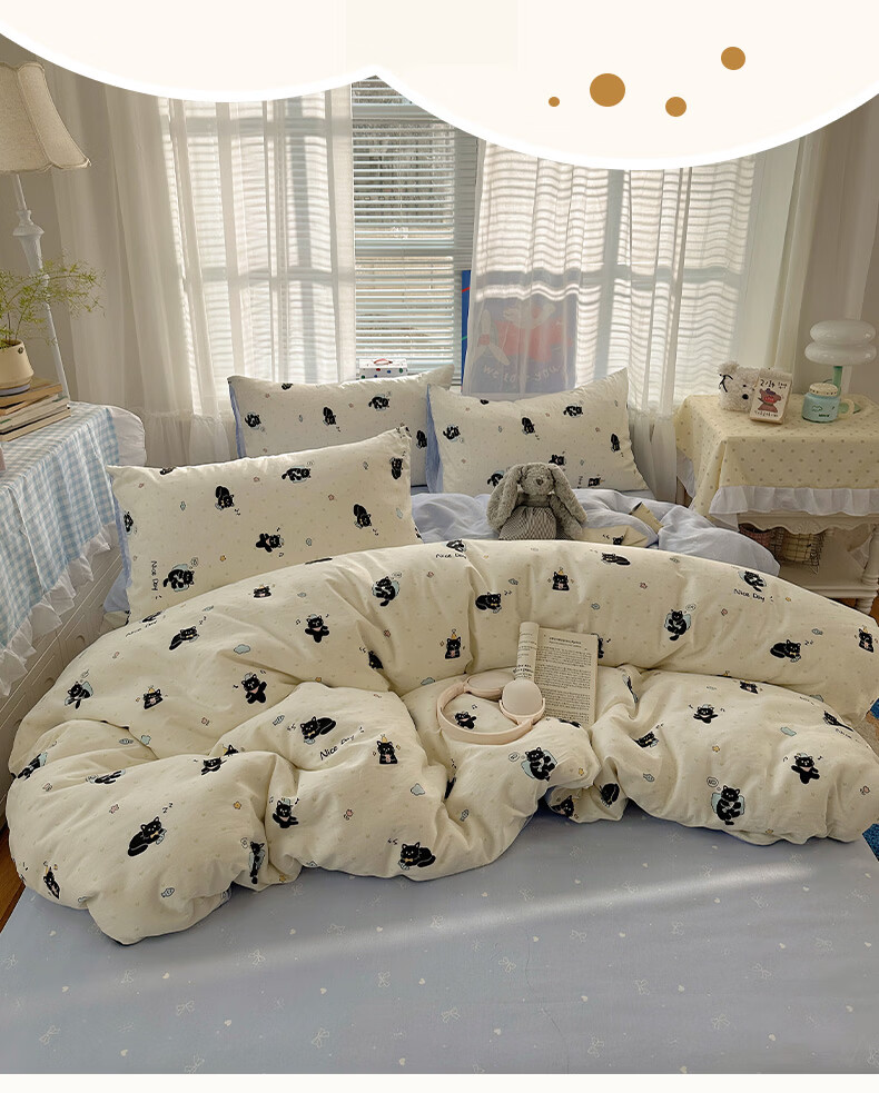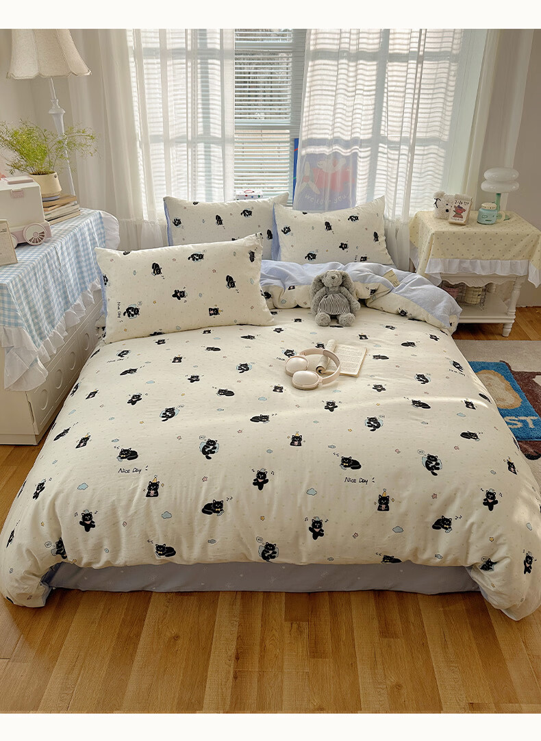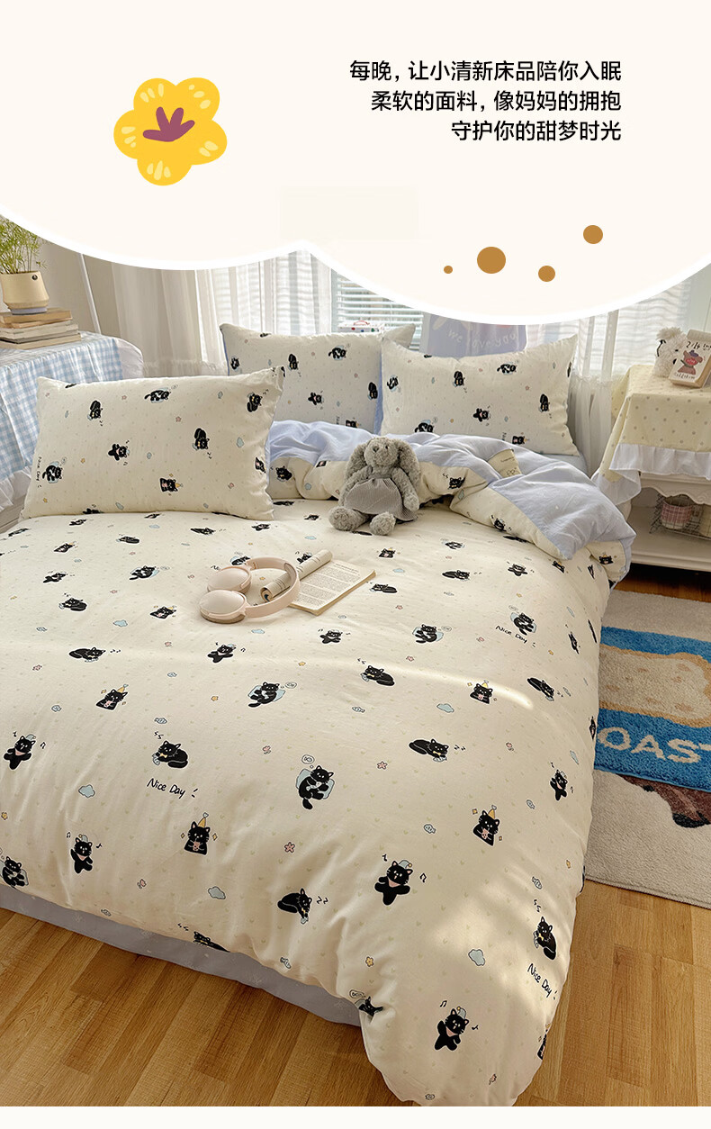 无印良品小清新床上用品四件套纯棉全棉被套亲肤裸睡宿舍三件套家用床笠款 小黑猫咪【100%全棉 亲肤舒适】 1.2 床单款 三件套-被套150*200cm