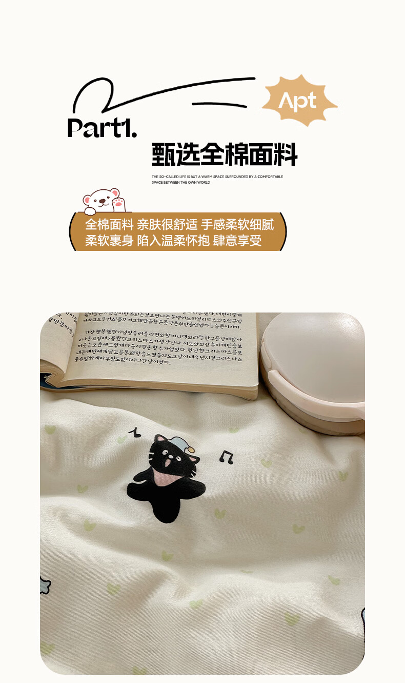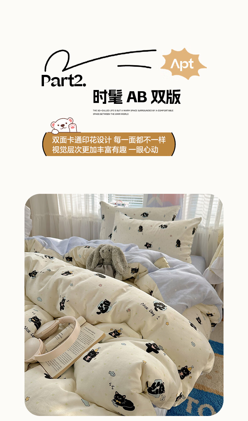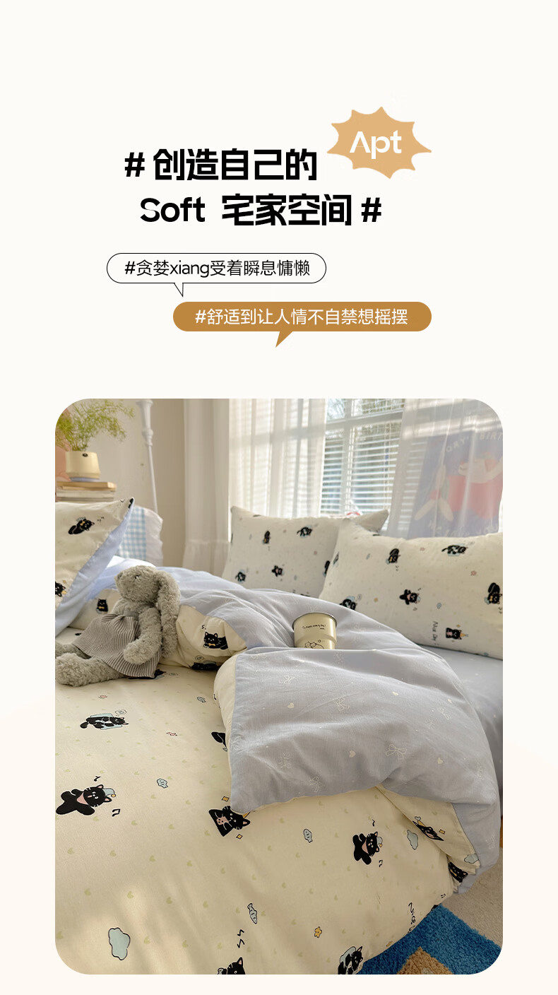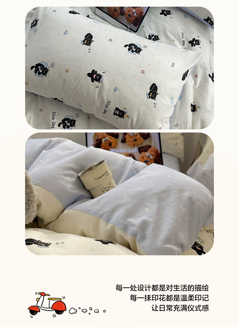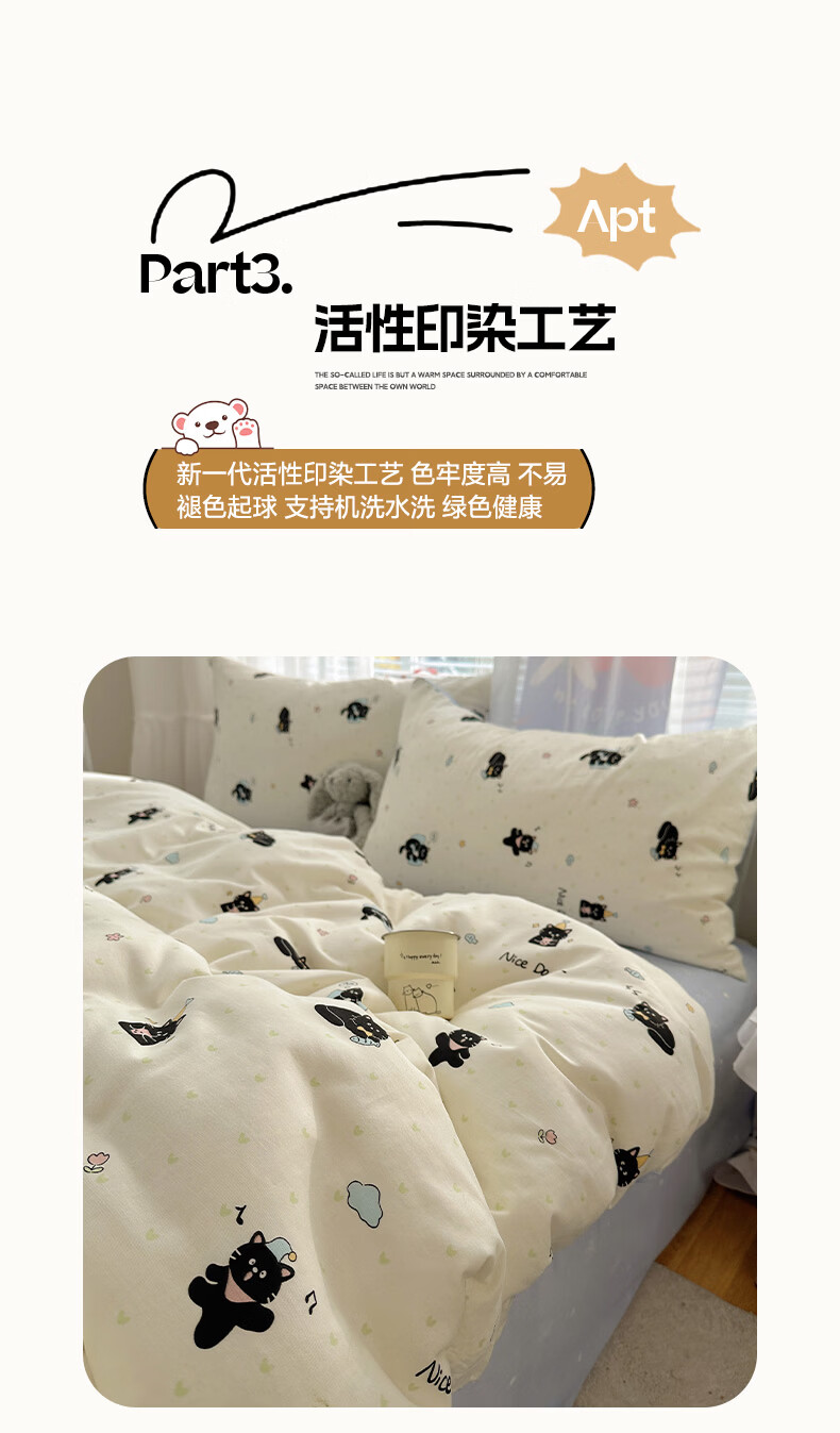 无印良品小清新床上用品四件套纯棉全棉被套亲肤裸睡宿舍三件套家用床笠款 小黑猫咪【100%全棉 亲肤舒适】 1.2 床单款 三件套-被套150*200cm
