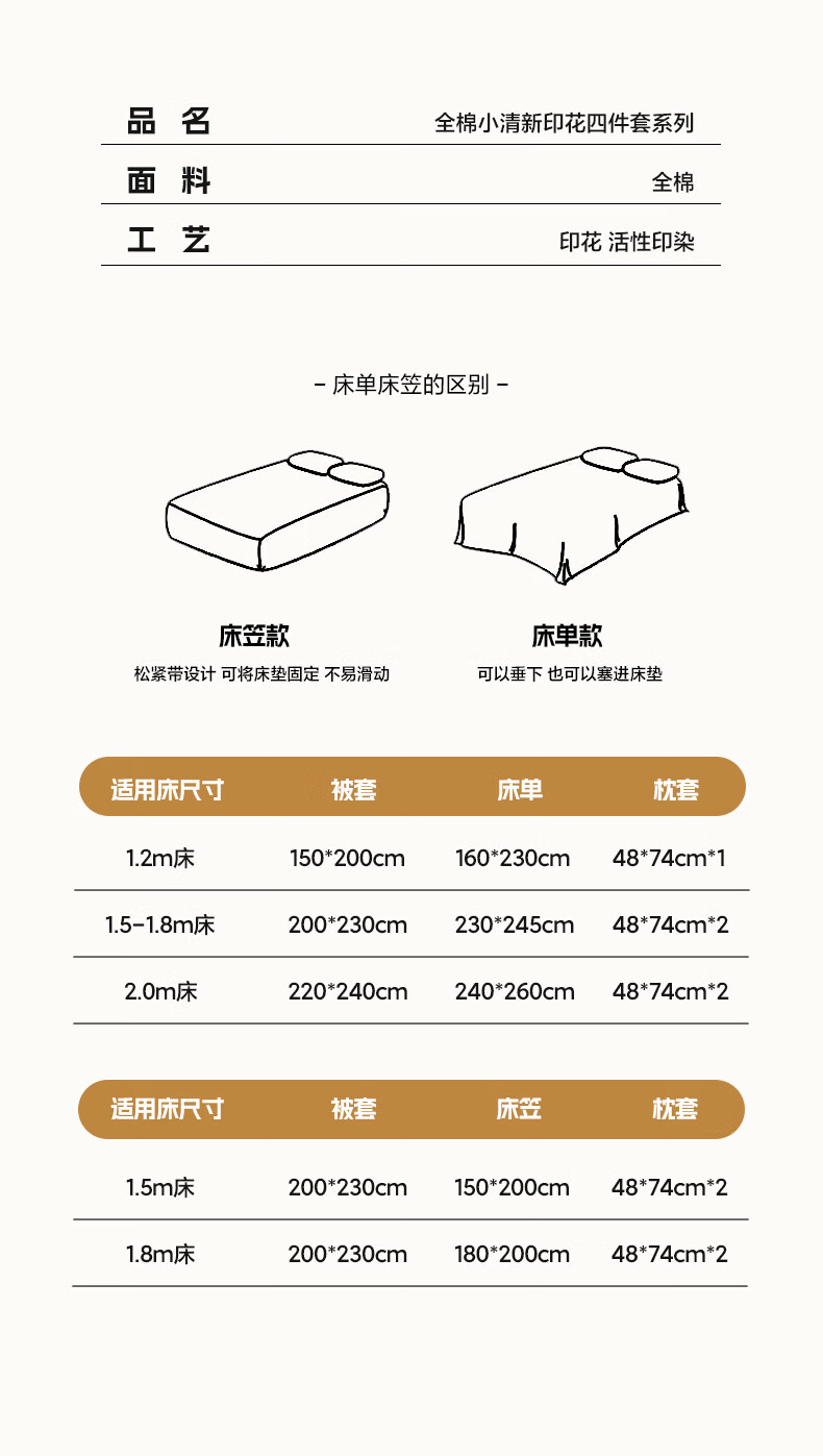 无印良品全棉床品四件套纯棉100%小清新花卉风单双人四季通用可裸睡三件套 苏屿【全棉面料 清新印花】 1.8m 床单款 被套200*230cm