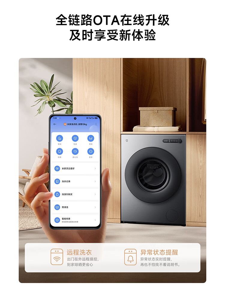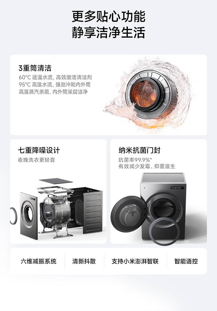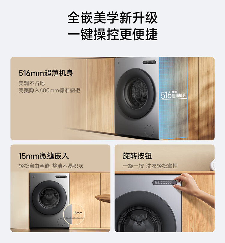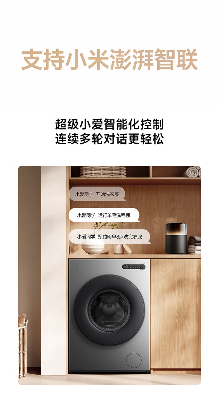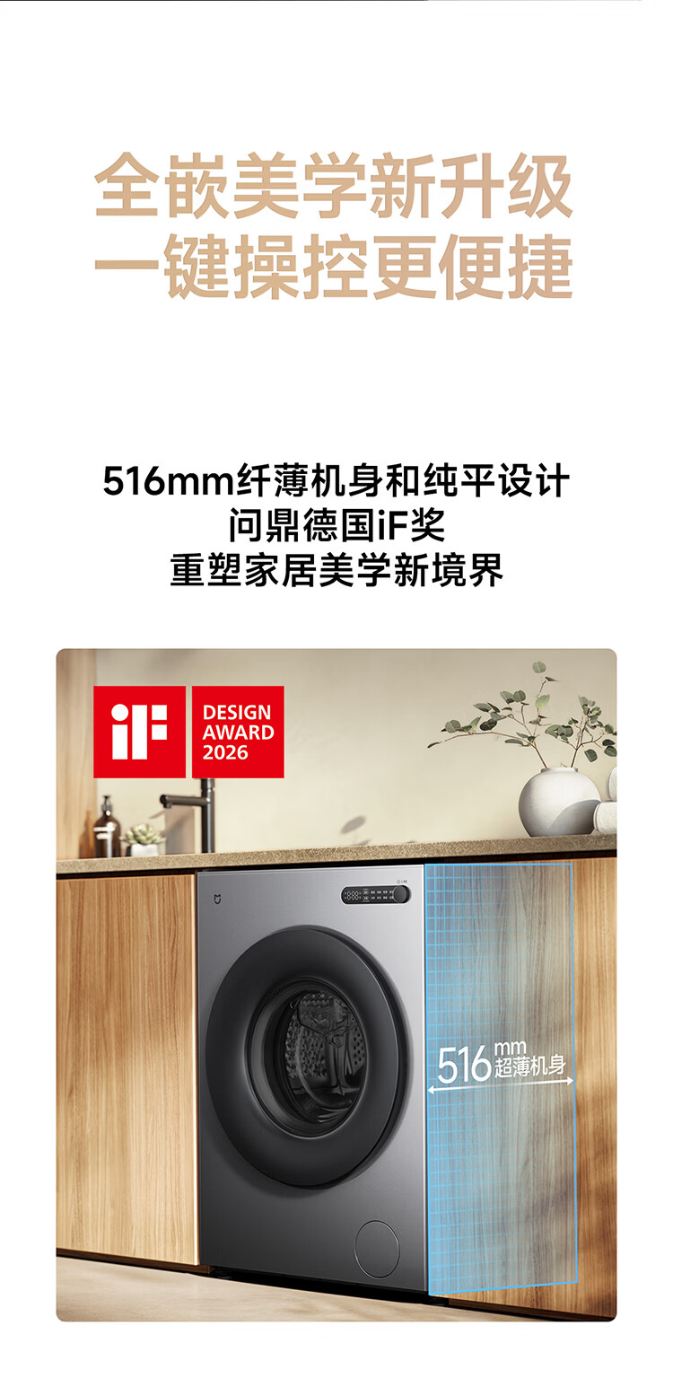 小米(MI)米家10公斤大容量滚筒洗衣机升级全自动 超薄全嵌 525mm大筒径 一级能效租房 强效去渍深层除菌螨 米家 滚筒单洗 10kg XQG100MJ205