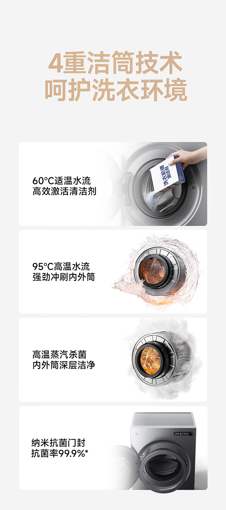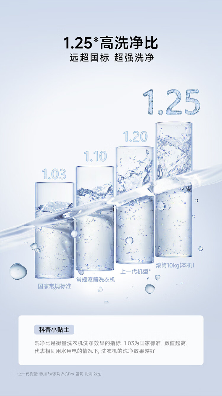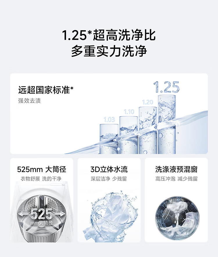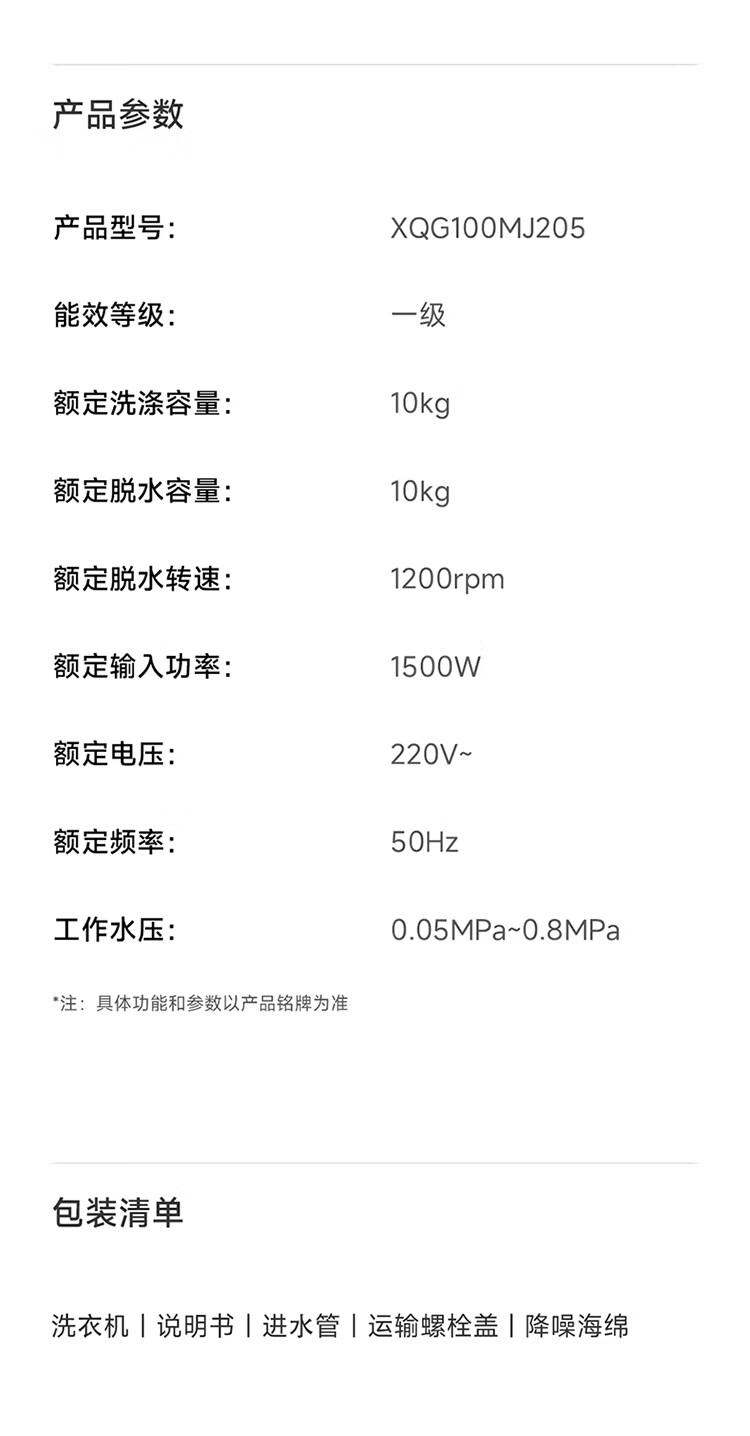 小米(MI)米家10公斤大容量滚筒洗衣机升级全自动 超薄全嵌 525mm大筒径 一级能效租房 强效去渍深层除菌螨 米家 滚筒单洗 10kg XQG100MJ205