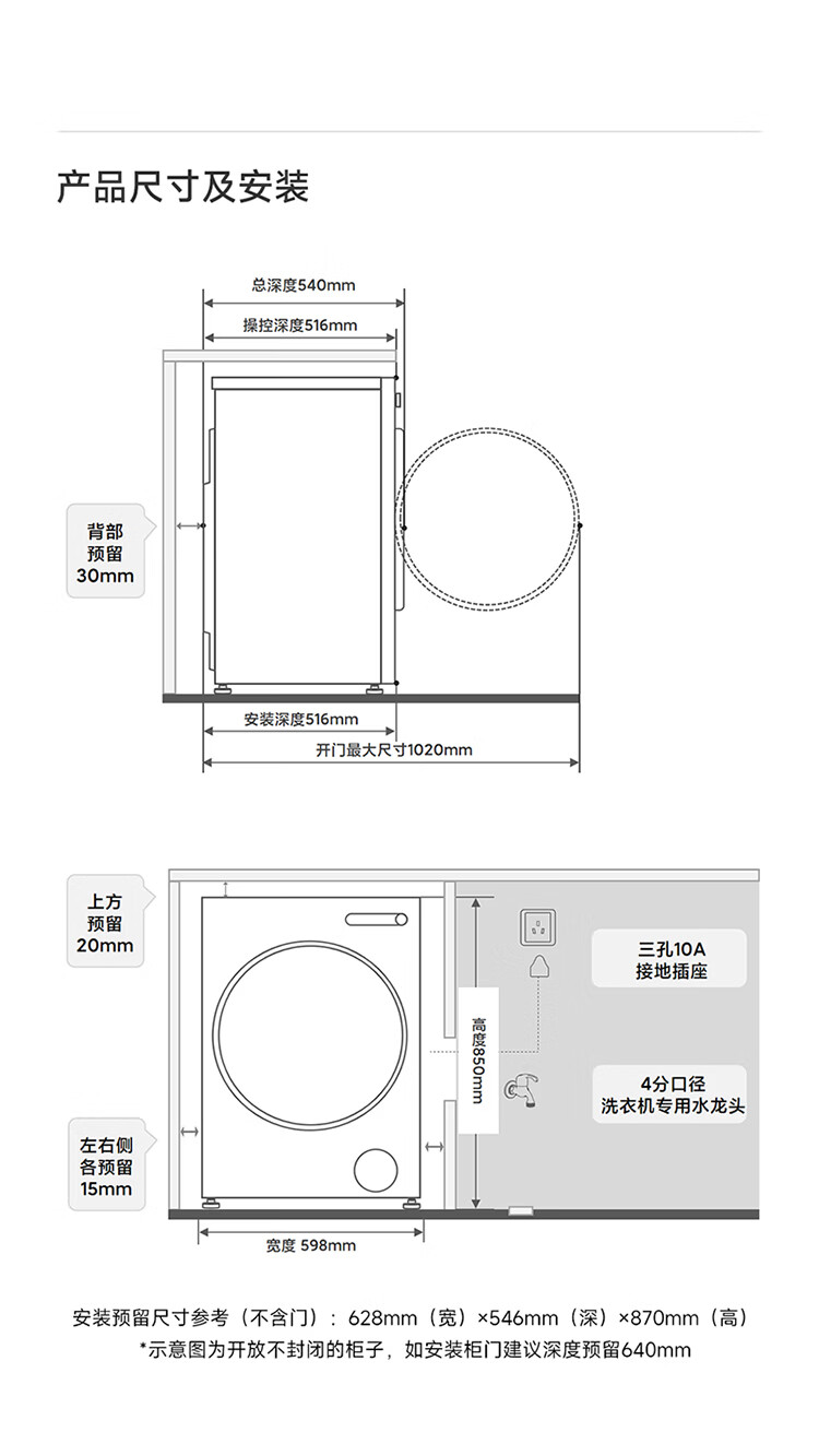 美的滚筒洗衣机全自动10KG家用大容量 纯平自由嵌 快净2.0 变频1.21高洗净比 一级能效 MG10V56T