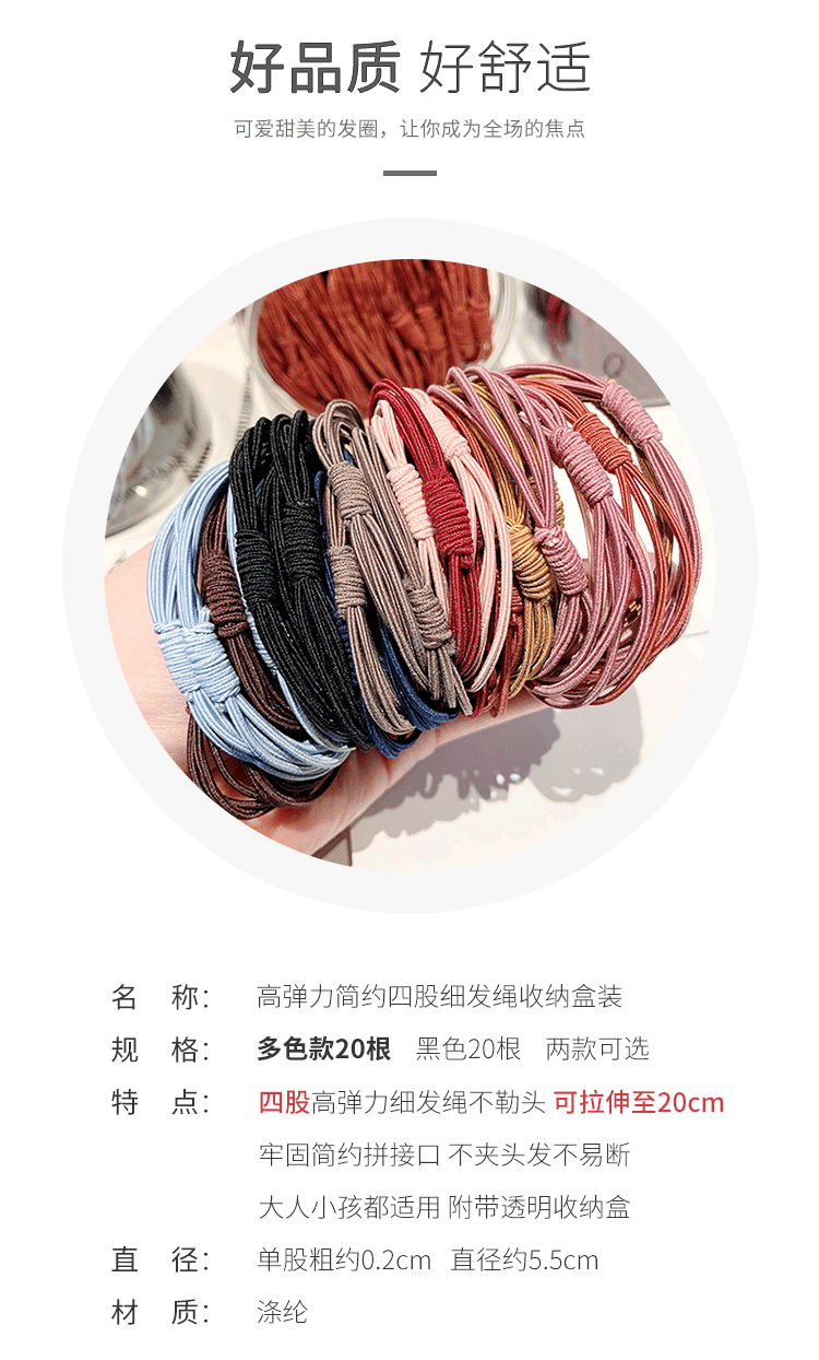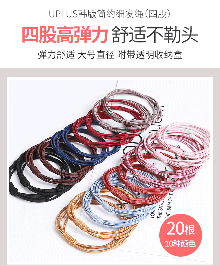 优家(UPLUS)高弹力发绳头绳【四股】发圈皮筋扎头发橡皮筋皮套发饰多色20根