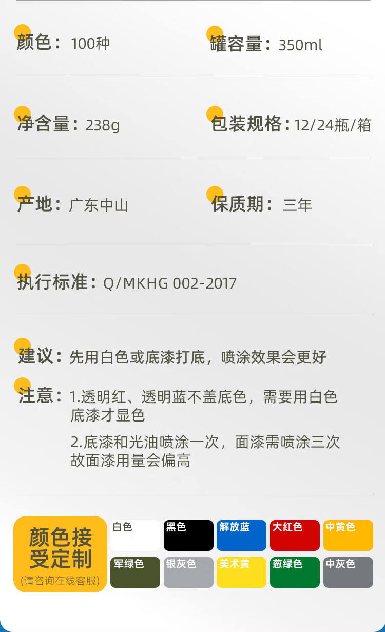 三和 普通自喷漆手喷漆变色龙 工业防腐漆 金属防锈漆 汽车轮毂改色划痕修复自动喷漆 350ml NO.25中黄色