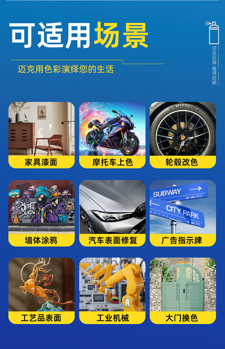 迈克 自喷漆金属防锈漆划痕修补漆汽车轮毂家具改色工业防腐手喷漆 350ML 39黑色