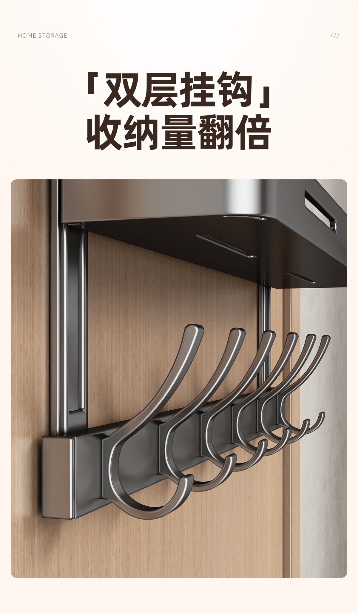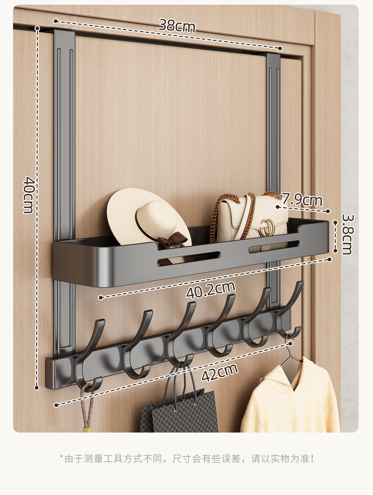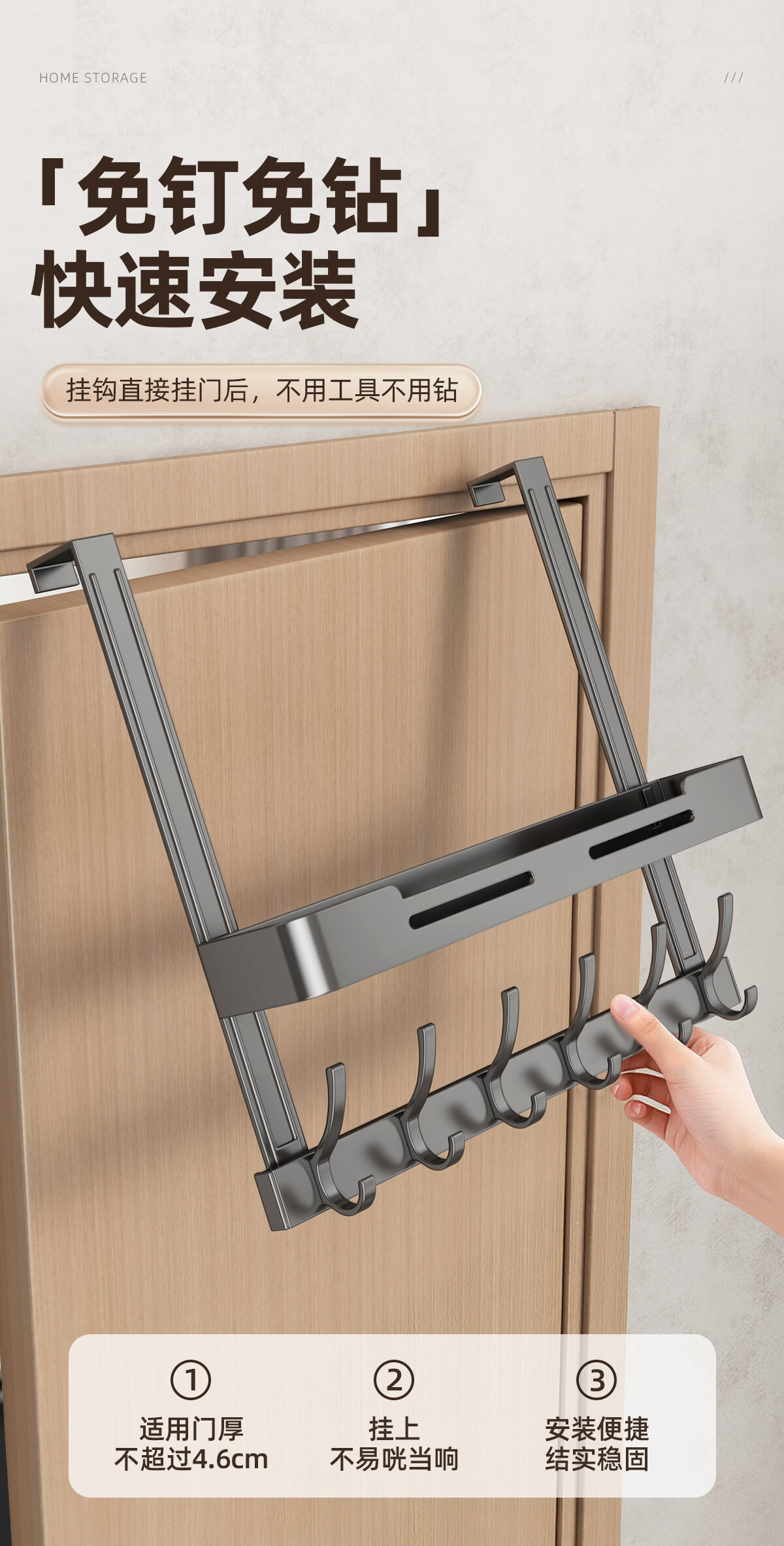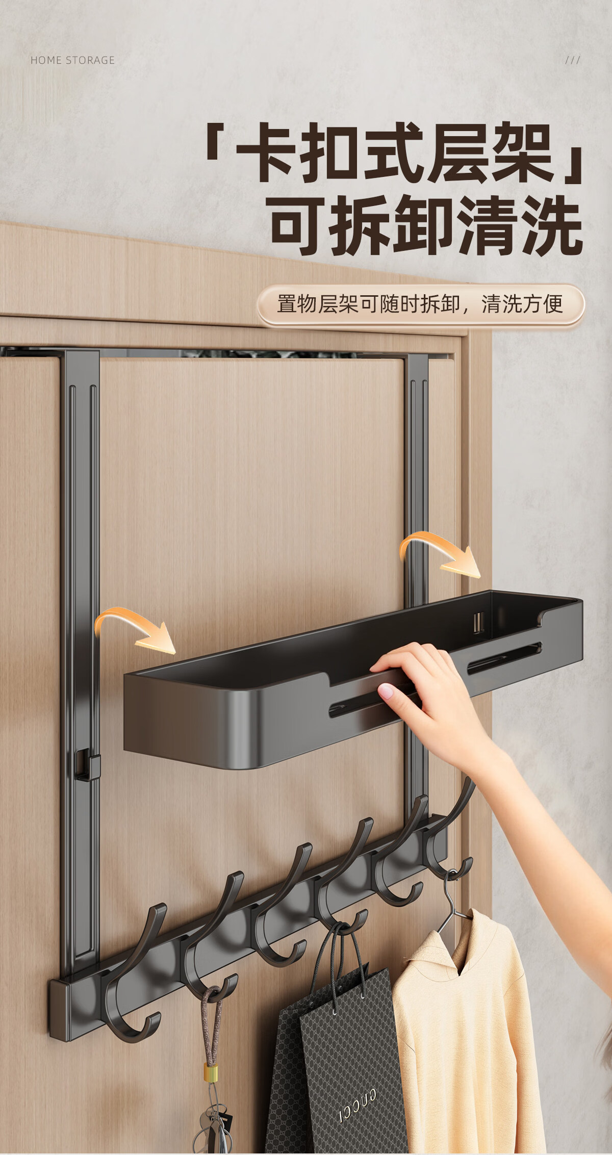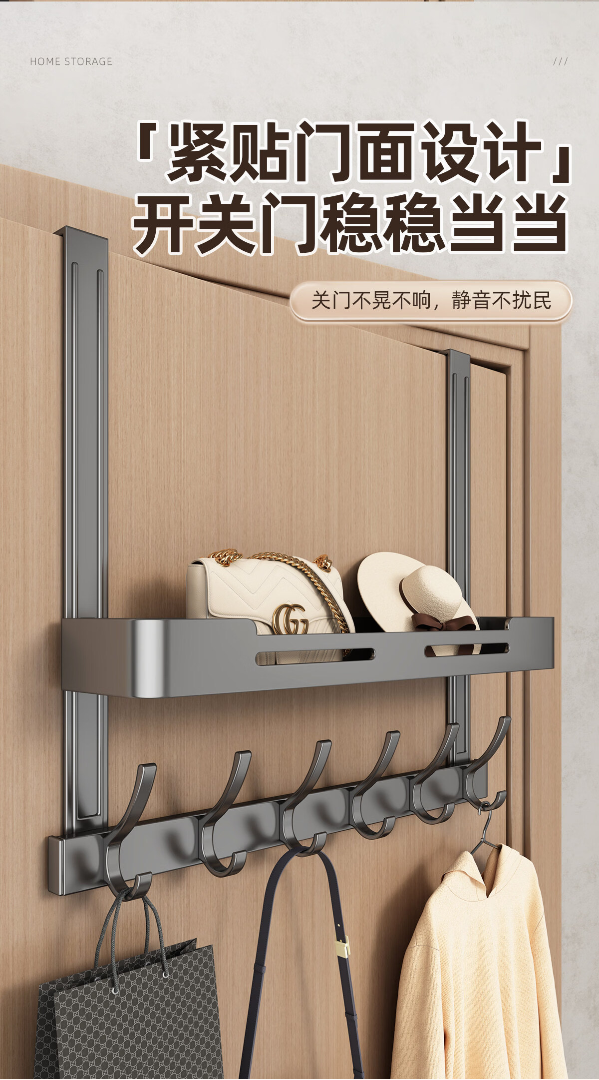 加度 门后挂钩挂衣架卧室门上免打孔无痕门背式收纳置物衣服帽挂架 枪灰·双层置物·5钩【不伤门板·开关无声】标准门
