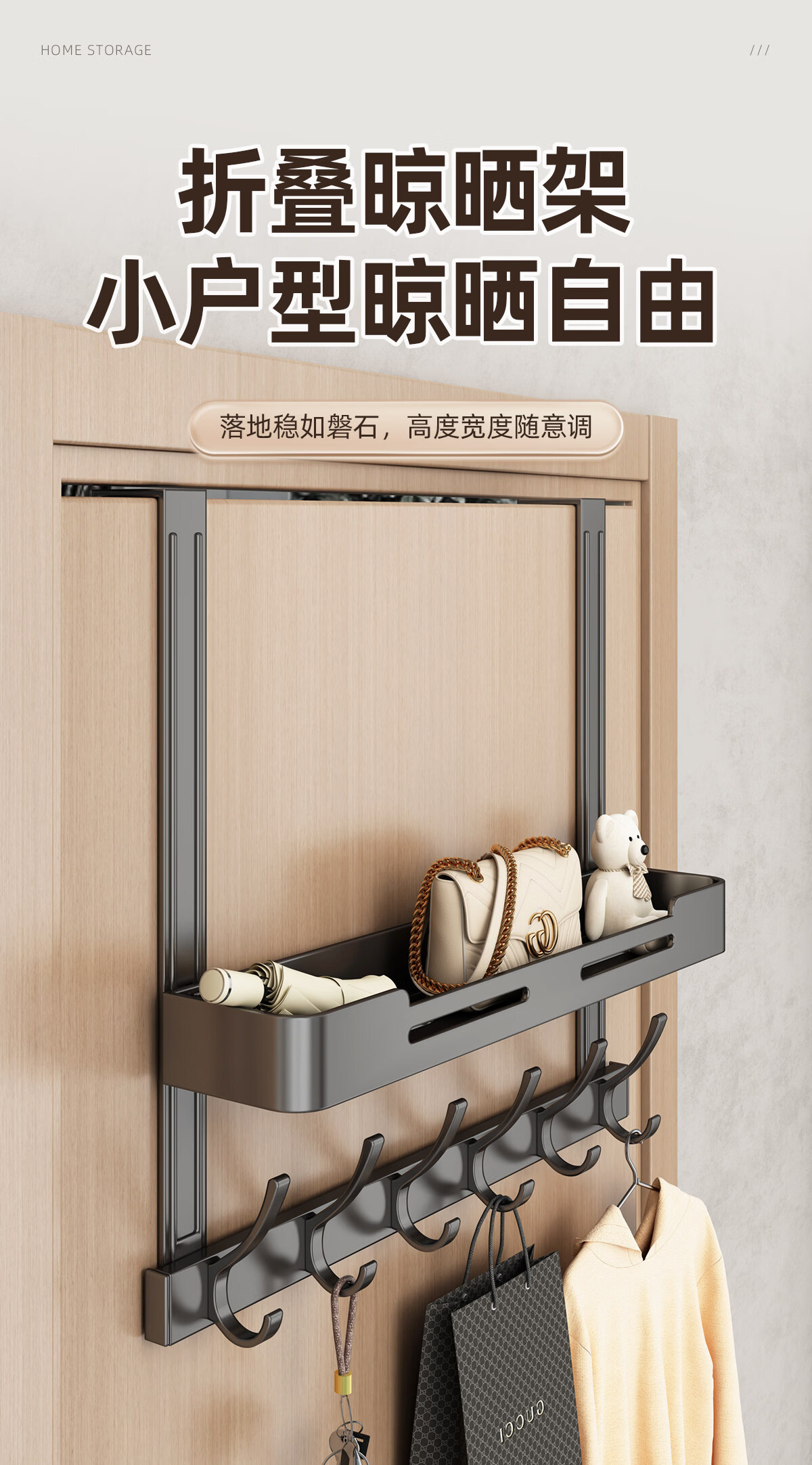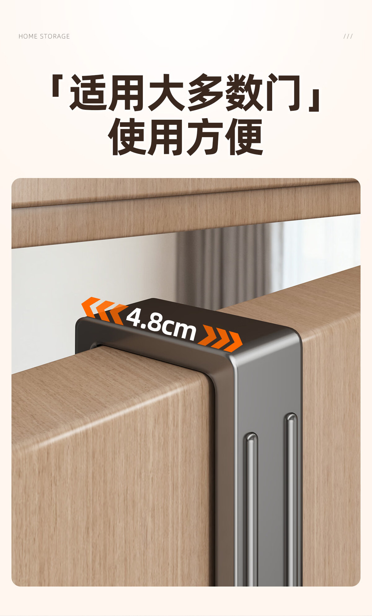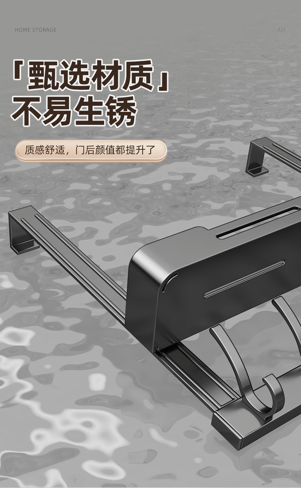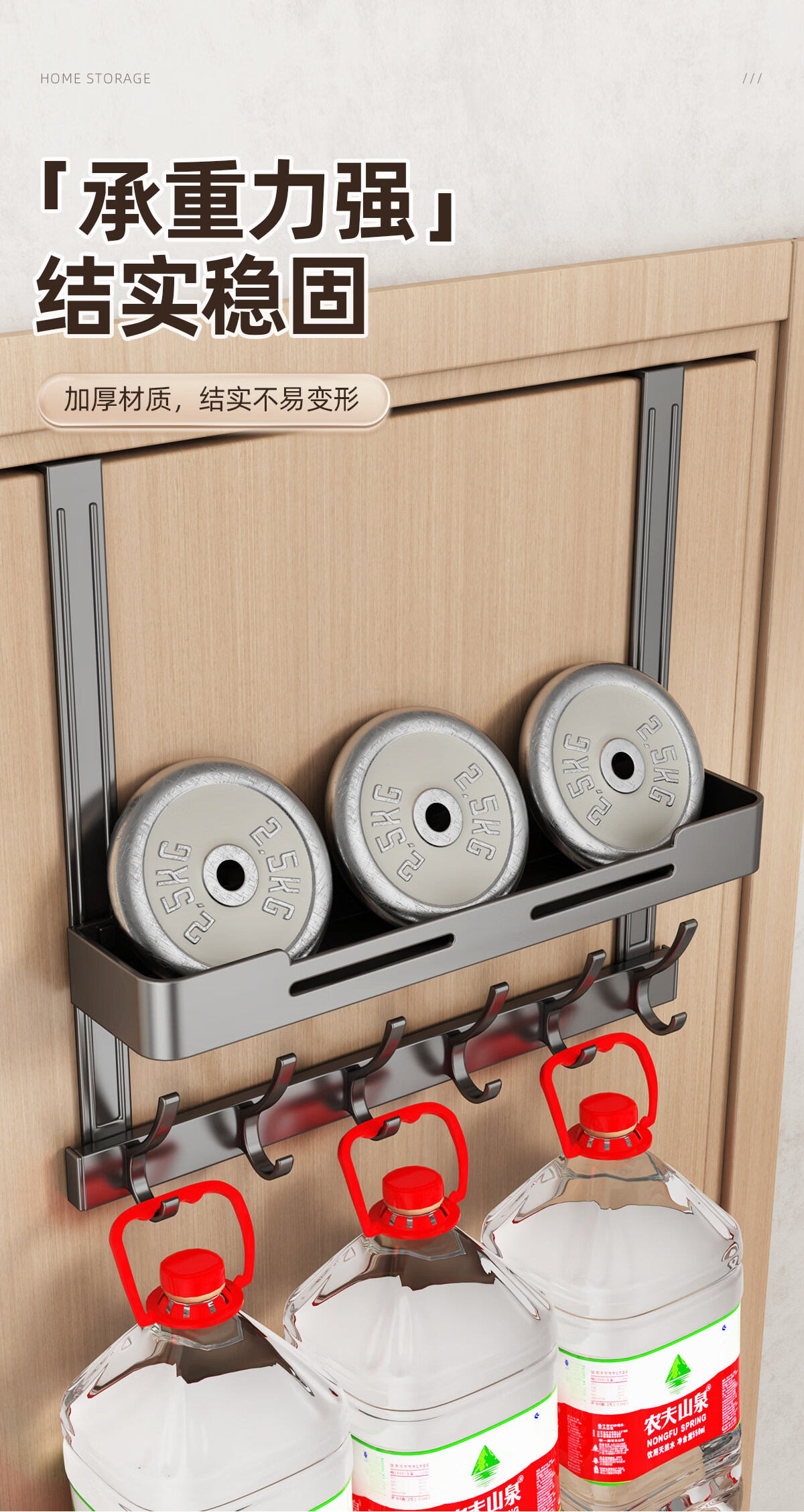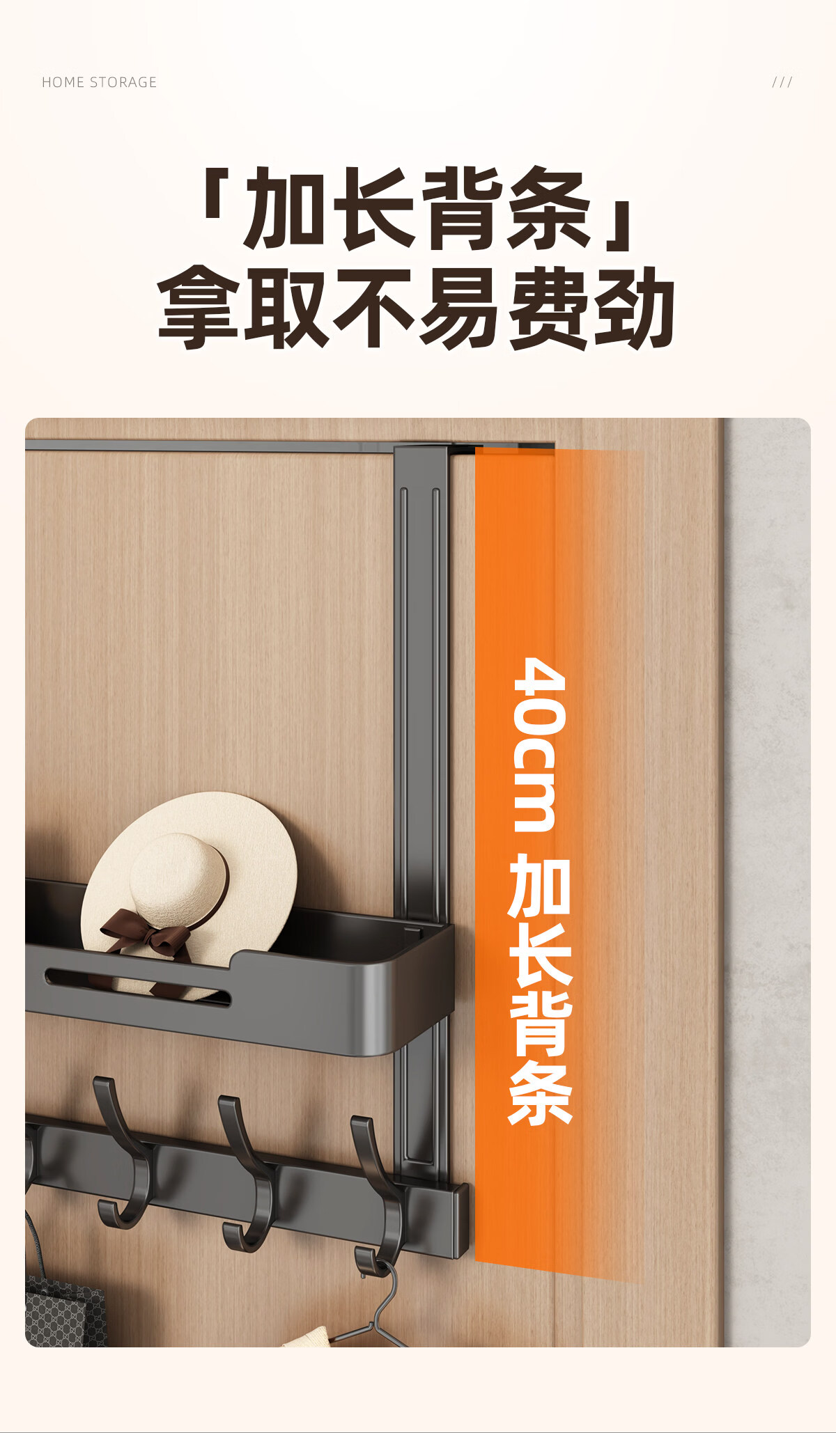 加度 门后挂钩挂衣架卧室门上免打孔无痕门背式收纳置物衣服帽挂架 枪灰·双层置物·5钩【不伤门板·开关无声】标准门