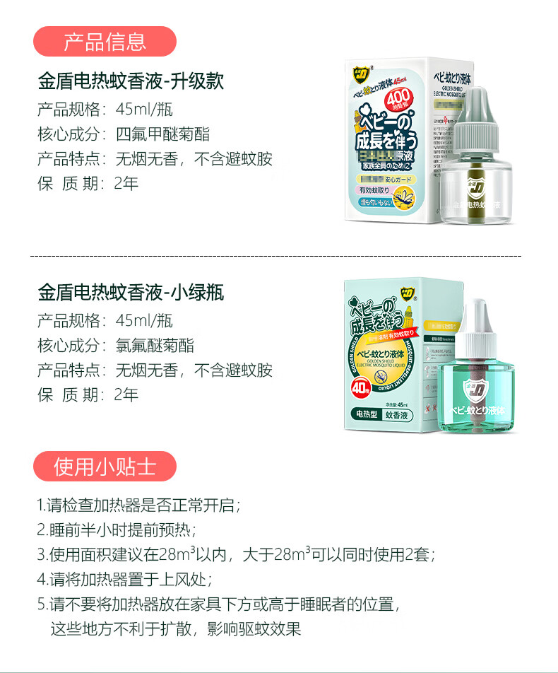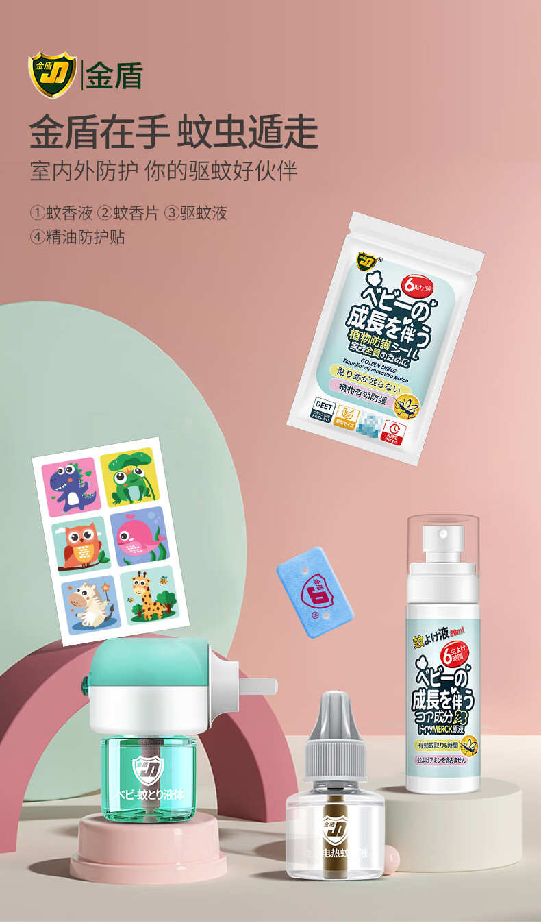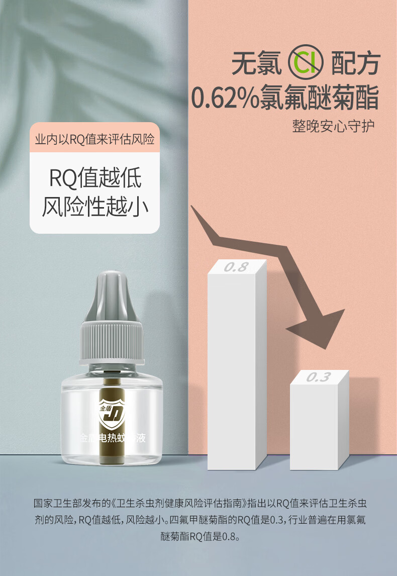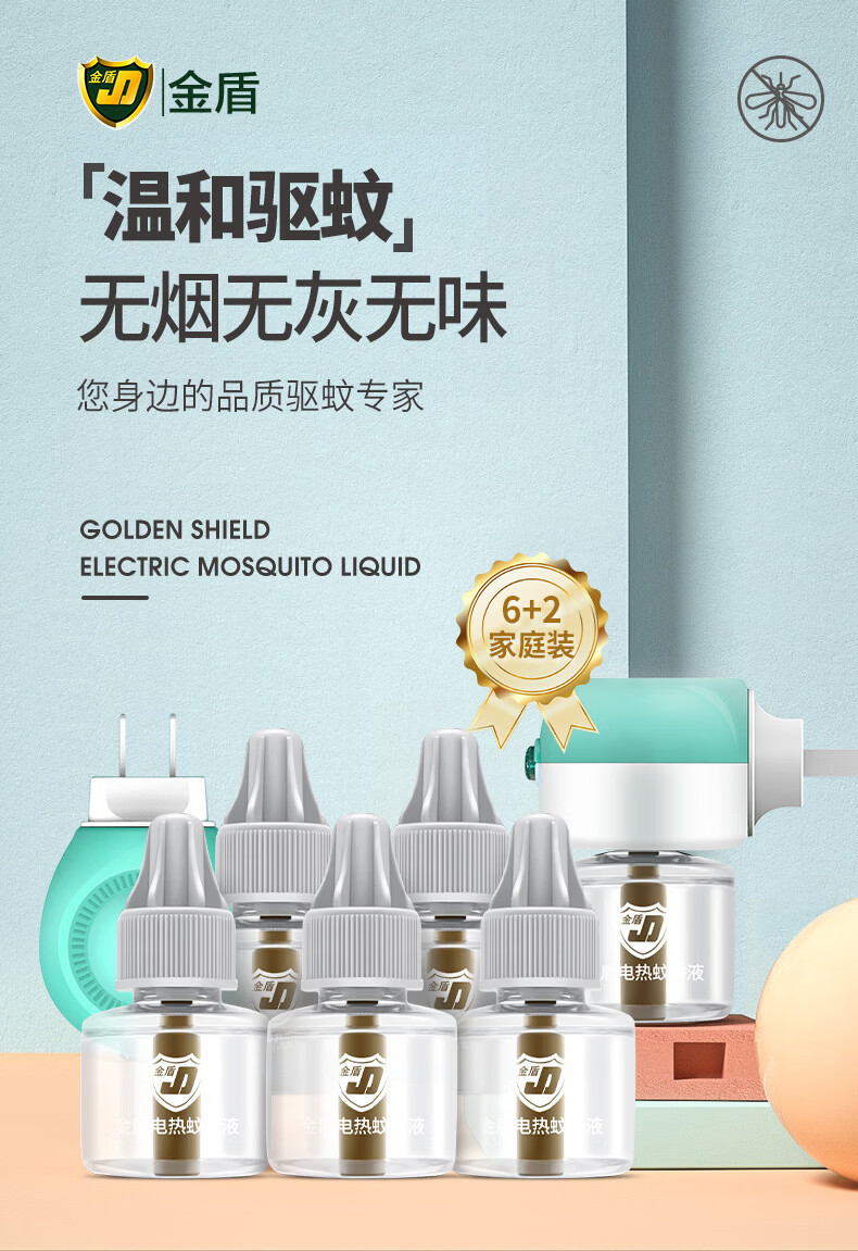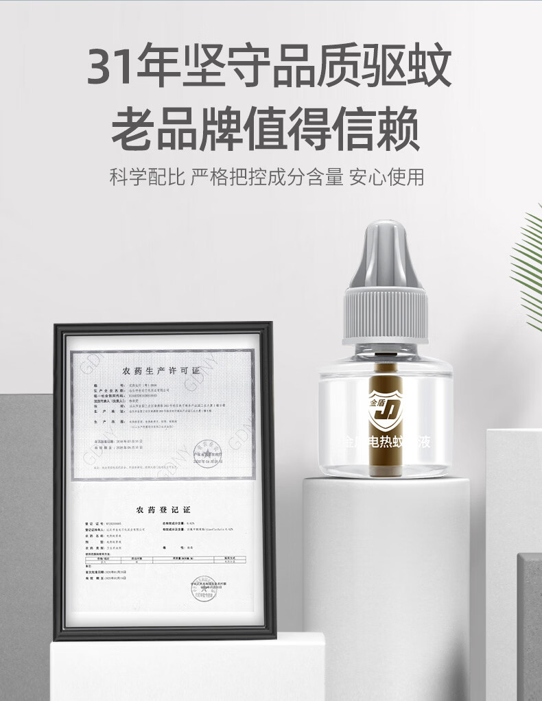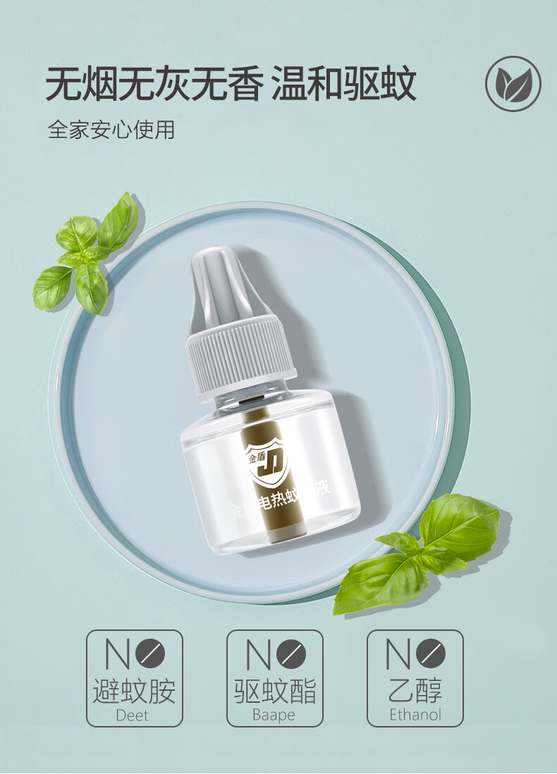 金盾(JD)蚊香液电蚊香灭蚊驱蚊液电热蚊香液无烟型 小绿瓶4瓶液+1器