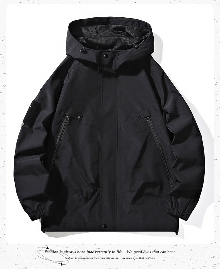 绿蜜蜂冲锋衣情侣外套春季新款防风保暖登山服夹克 黑色 【男女同款】 L