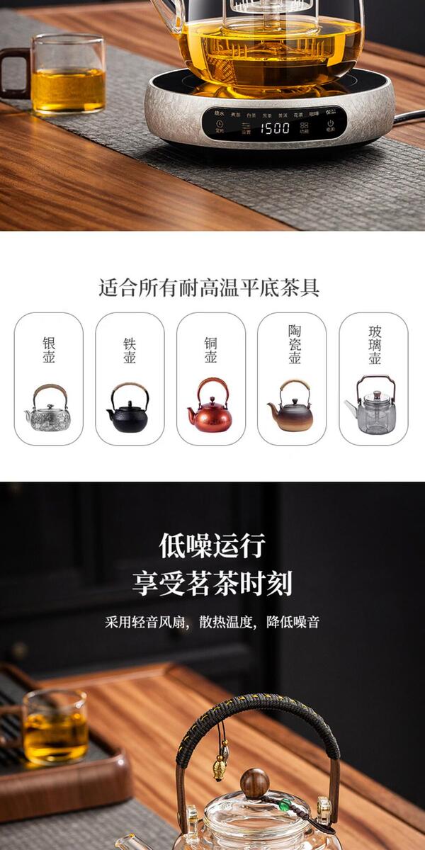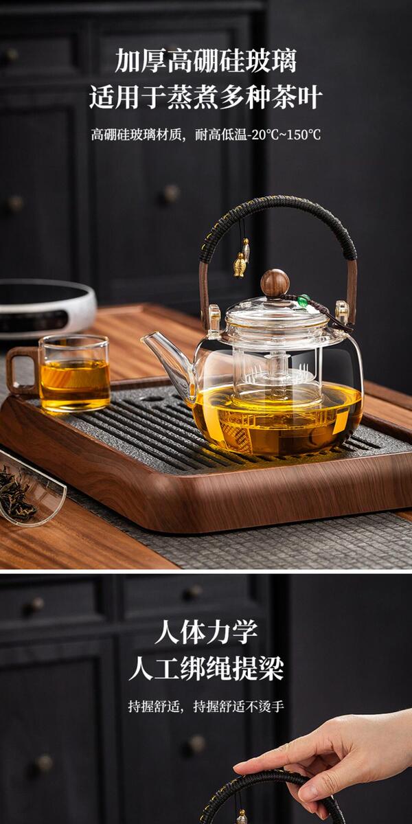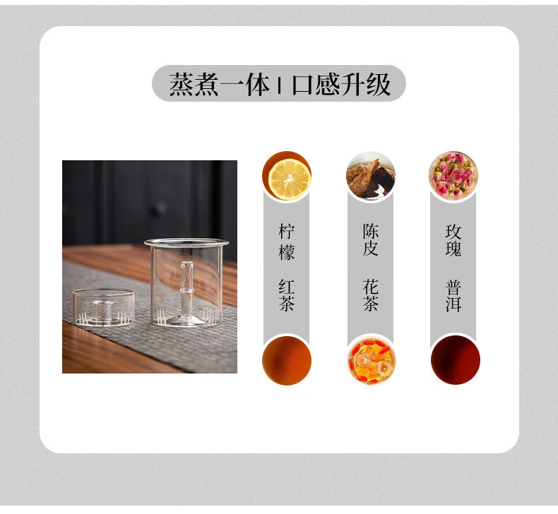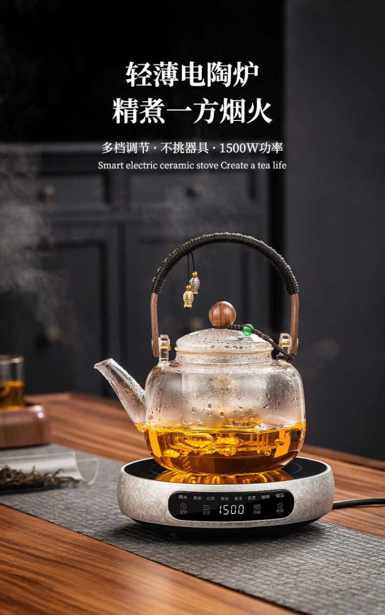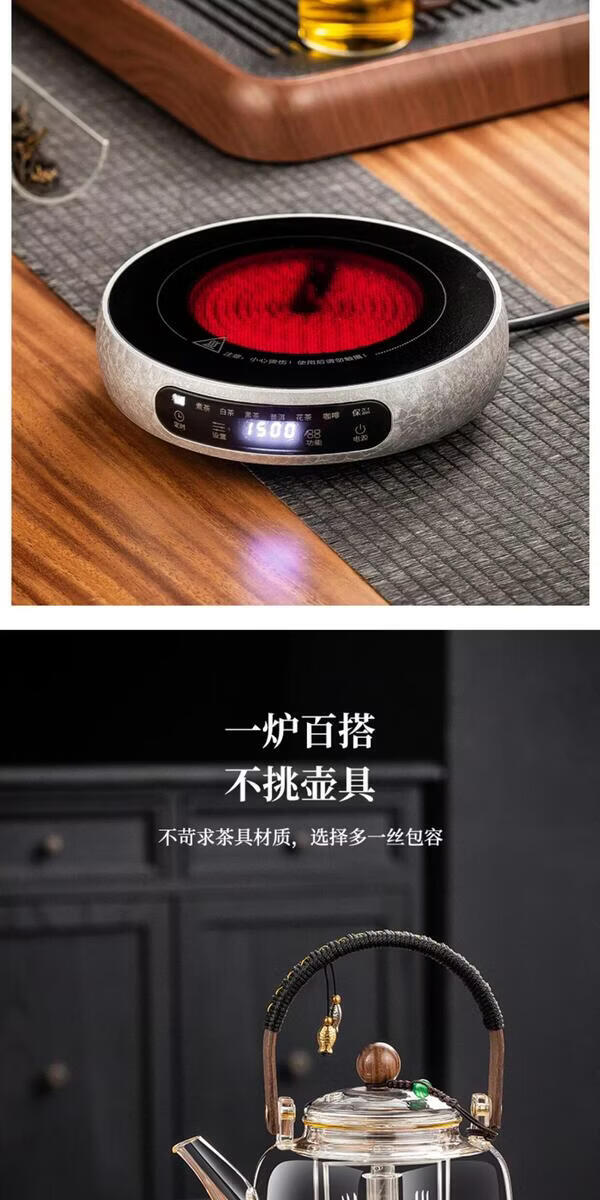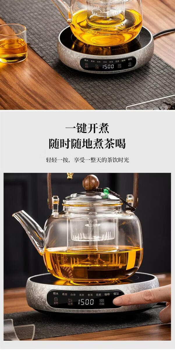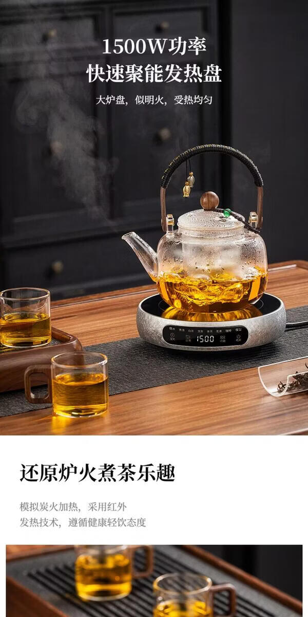 溥畔电陶炉煮茶小型煮茶器煮茶炉2026新款烧水泡茶电磁炉养生茶壶 木纹色电陶炉+禅道壶(蒸煮双胆)1000ML