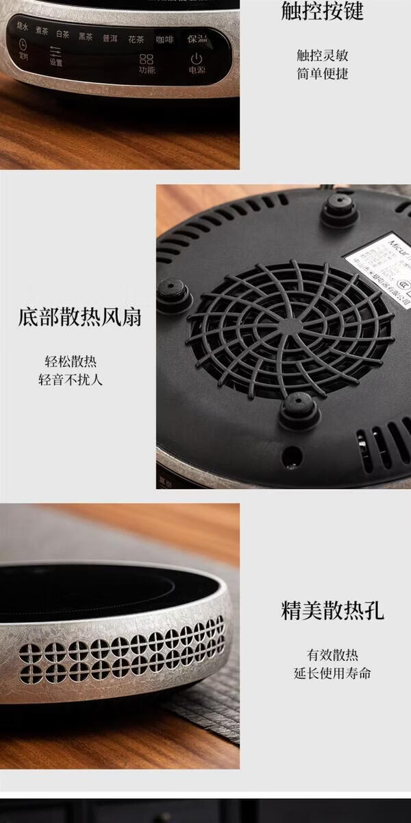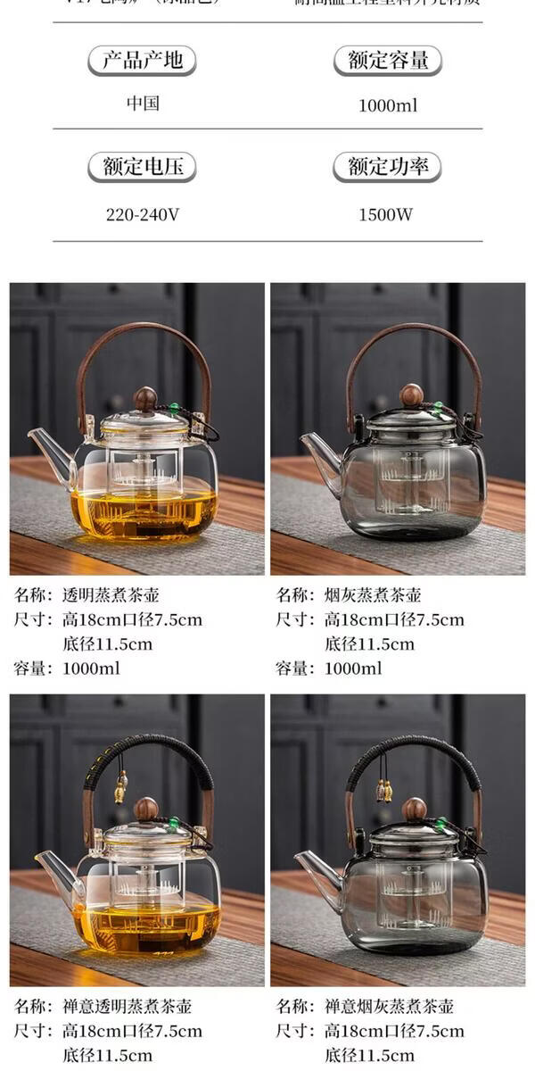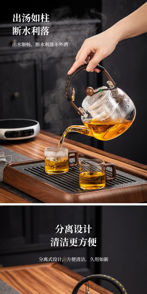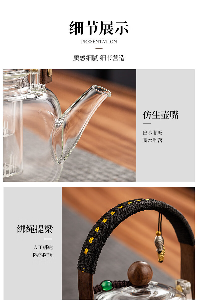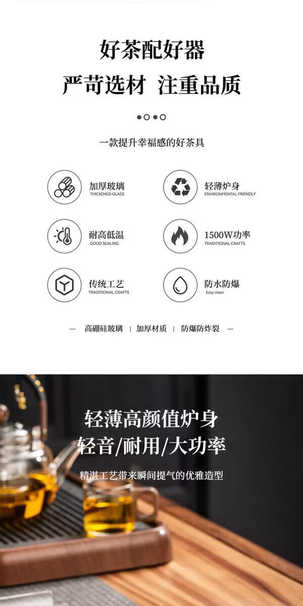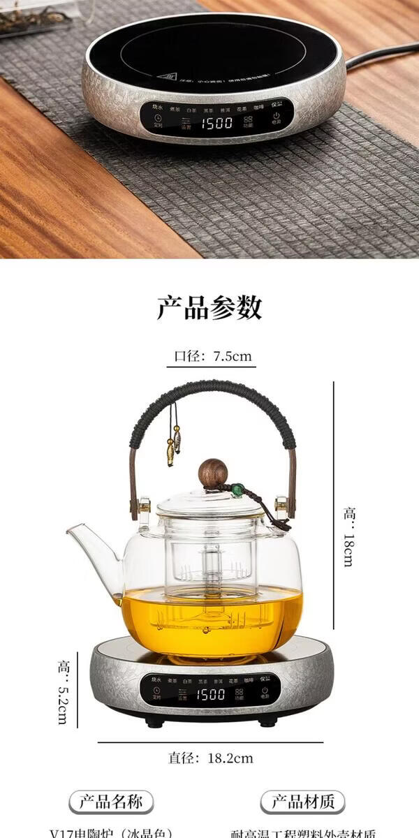 溥畔电陶炉煮茶小型煮茶器煮茶炉2026新款烧水泡茶电磁炉养生茶壶 木纹色电陶炉+禅道壶(蒸煮双胆)1000ML